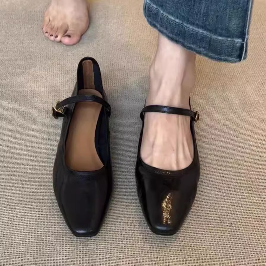 워시 카우 히데 ~ 슈퍼 소프트 가죽 수제 신발 플랫 싱글 신발 여성 레트로 스타일 로우 힐 신발 메리 제인 신발