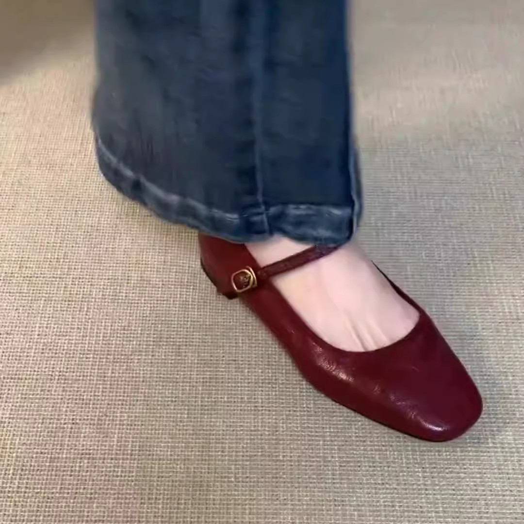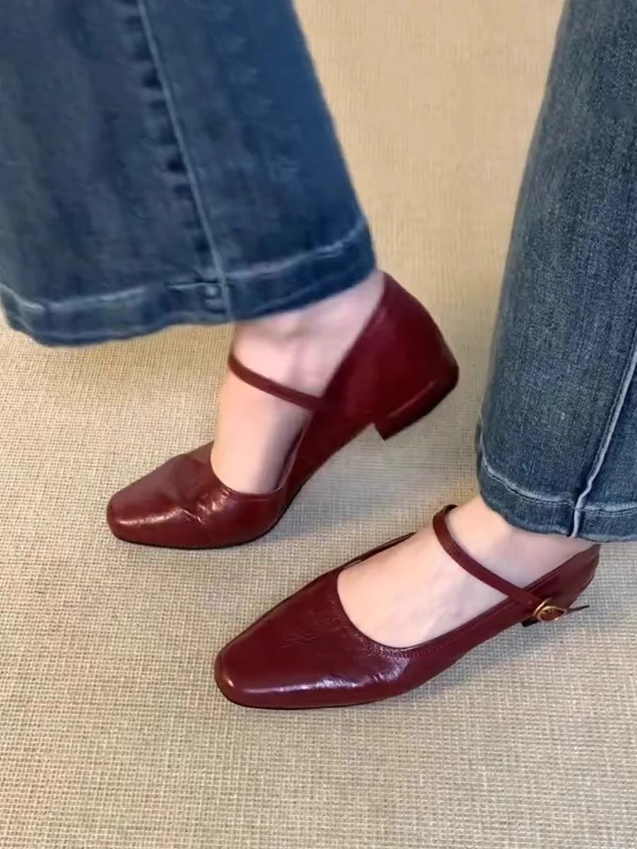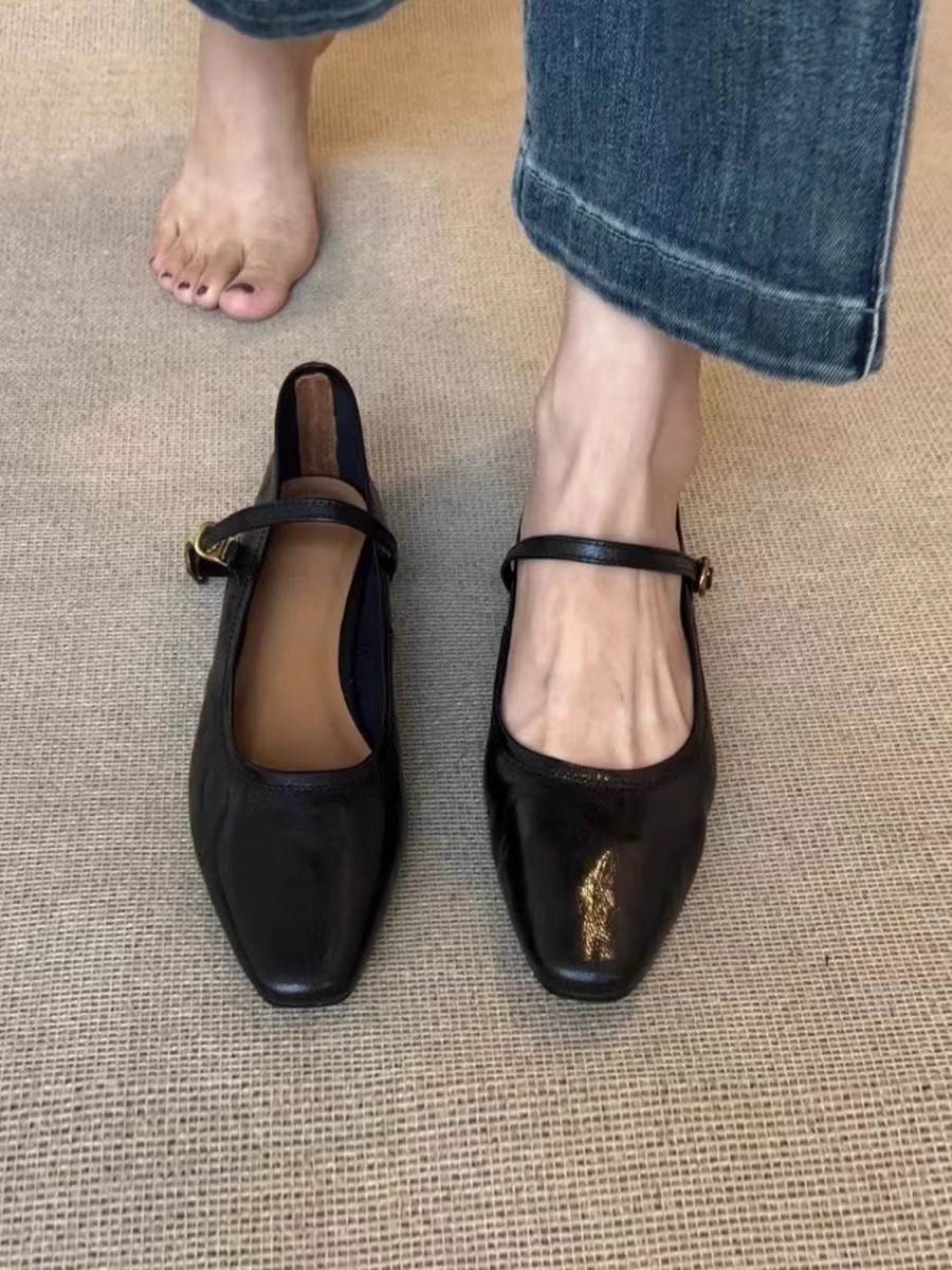 워시 카우 히데 ~ 슈퍼 소프트 가죽 수제 신발 플랫 싱글 신발 여성 레트로 스타일 로우 힐 신발 메리 제인 신발스토어 가기