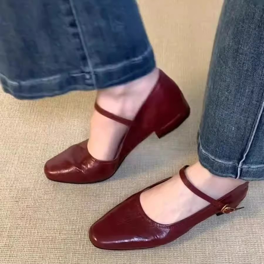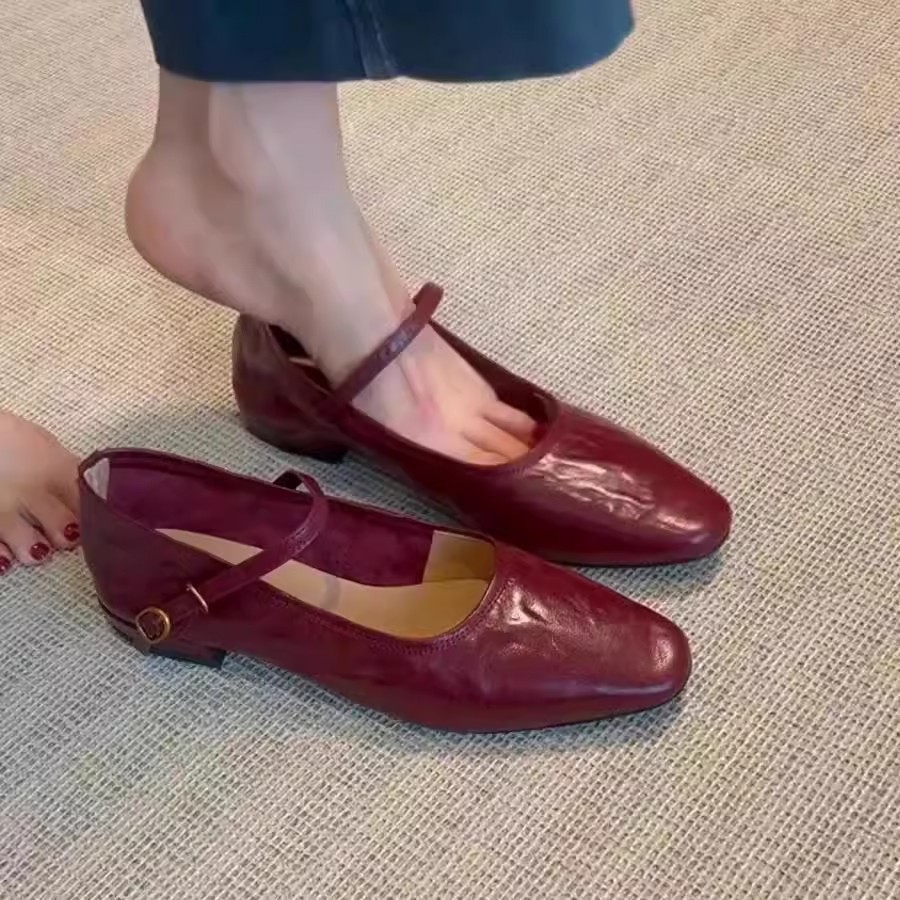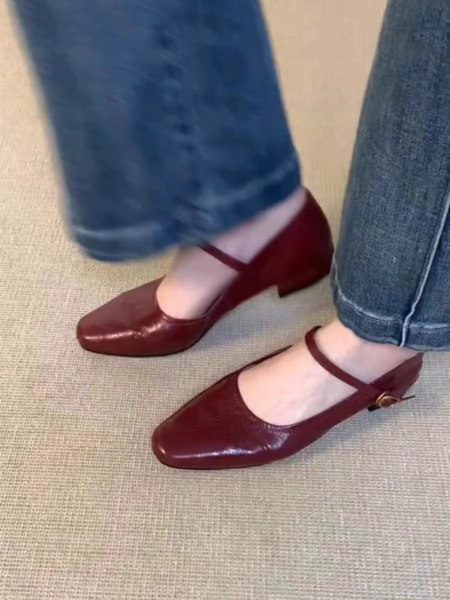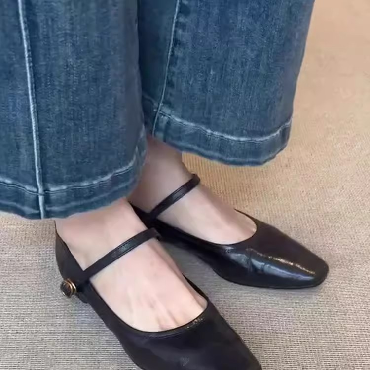 워시 카우 히데 ~ 슈퍼 소프트 가죽 수제 신발 플랫 싱글 신발 여성 레트로 스타일 로우 힐 신발 메리 제인 신발스토어 가기