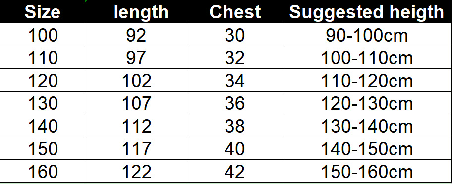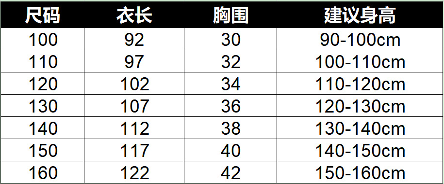 7个码:100 110 120 130 140 150 160