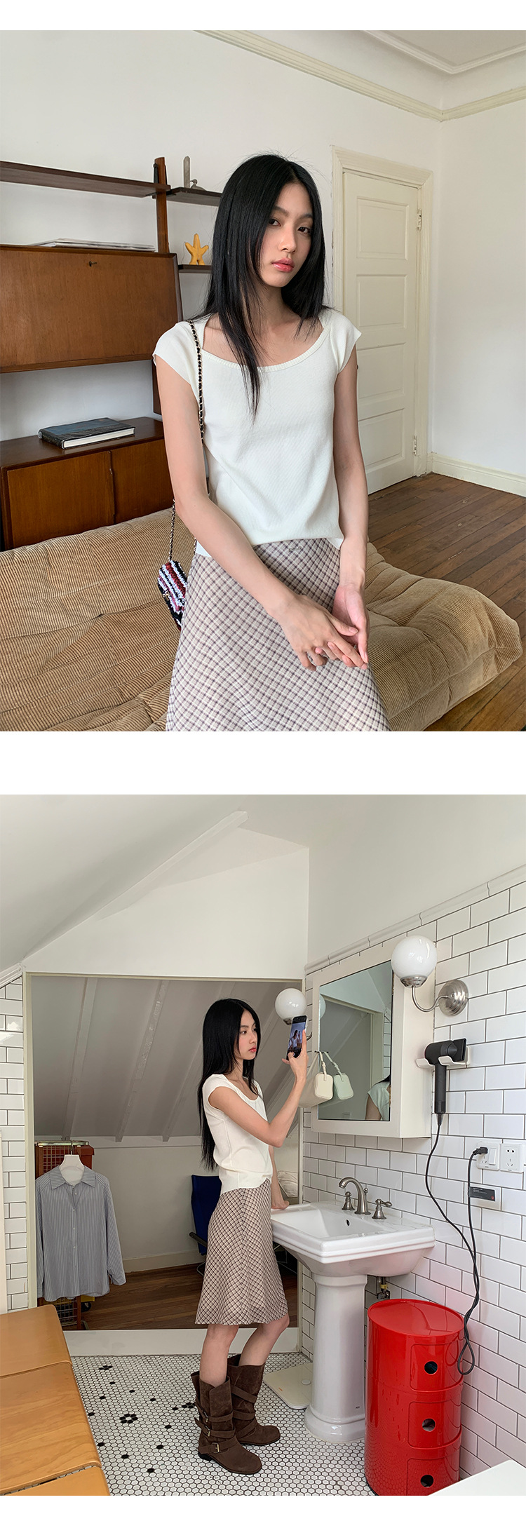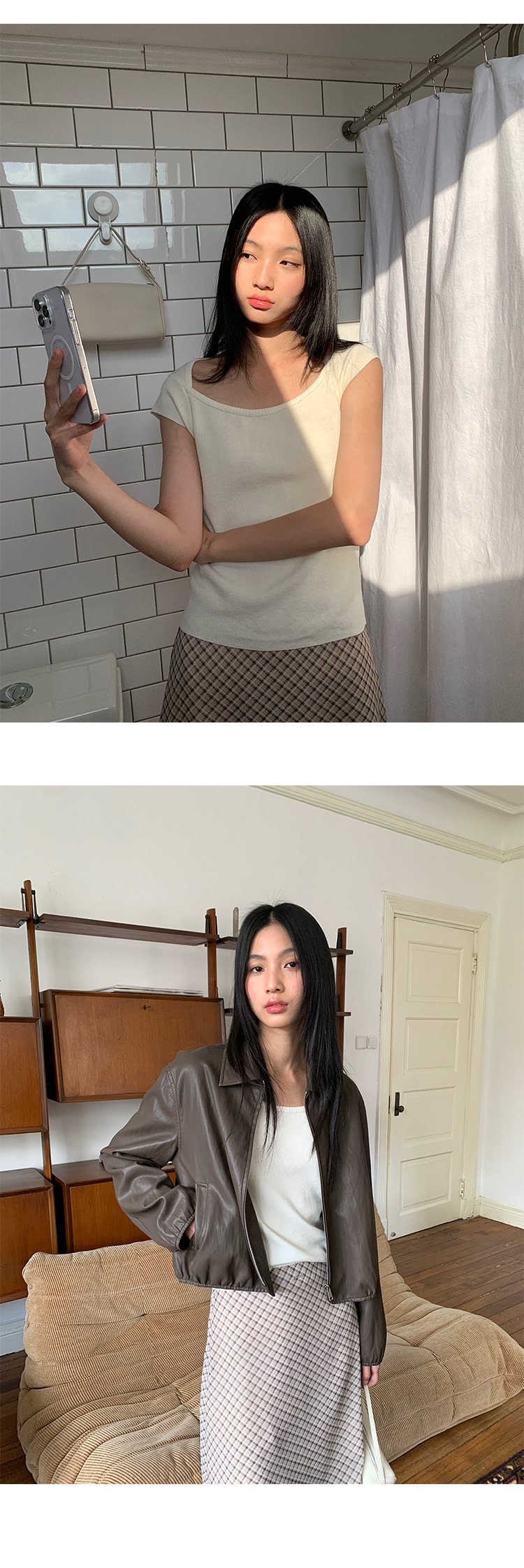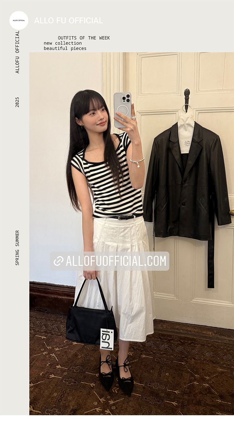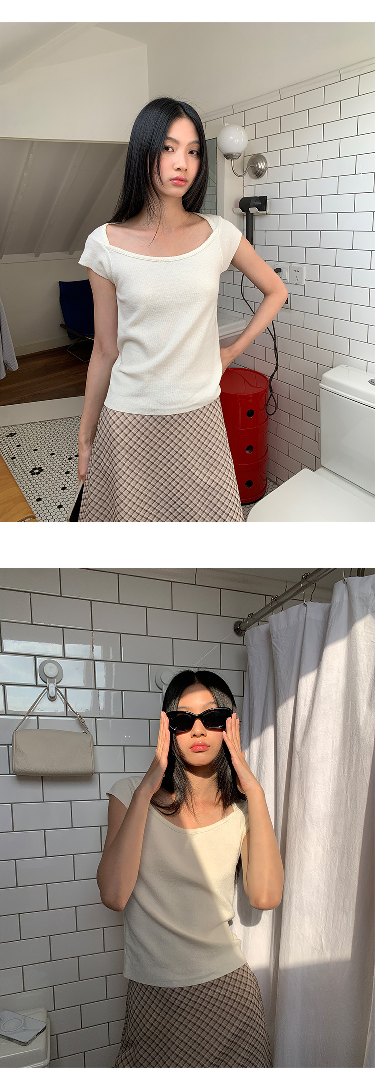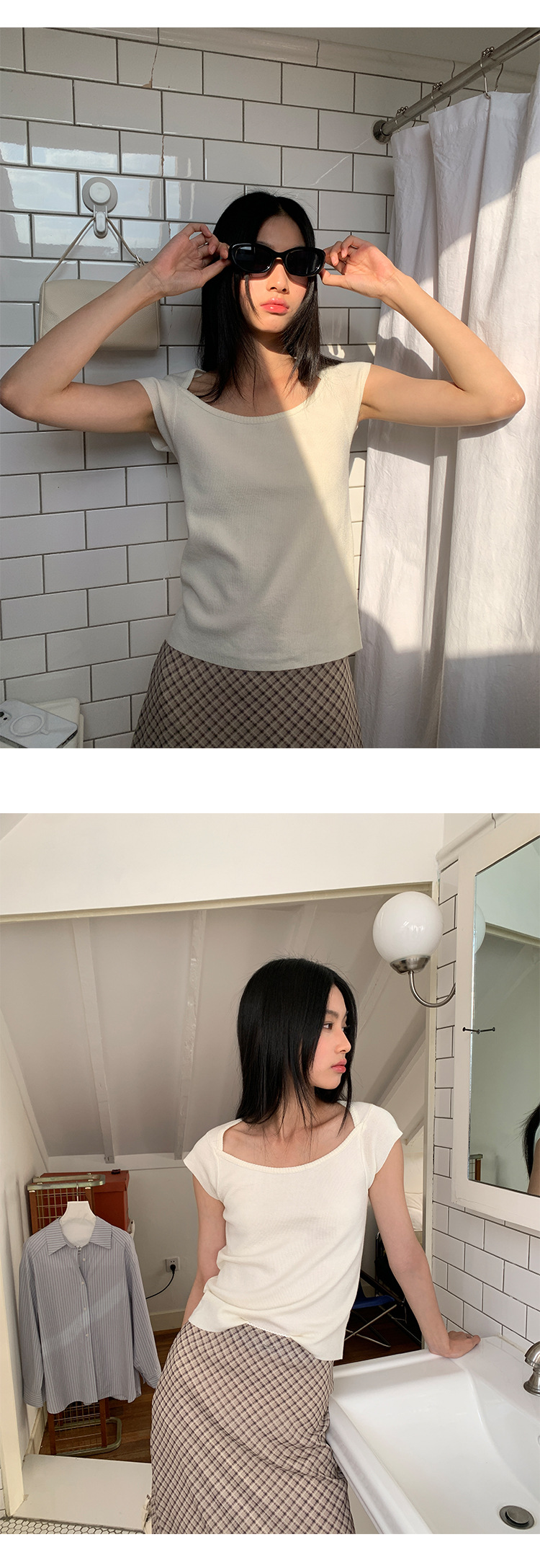 [클리어아웃 및 환불 불가] 심플하고 활용도가 높은 스퀘어 라운드넥 여성용 반팔 스웨터 봄 스트라이프 숏탑 19127스토어 가기