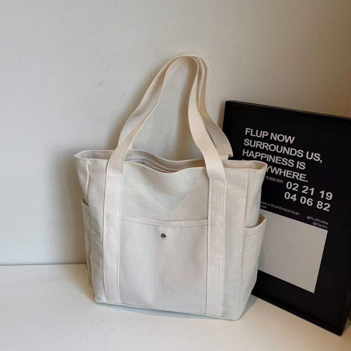 작업 및 외출 용 대용량 토트 캔버스 가방 고 가치 통근 올 매치 아트 학생 도서 원 숄더 천 가방스토어 가기