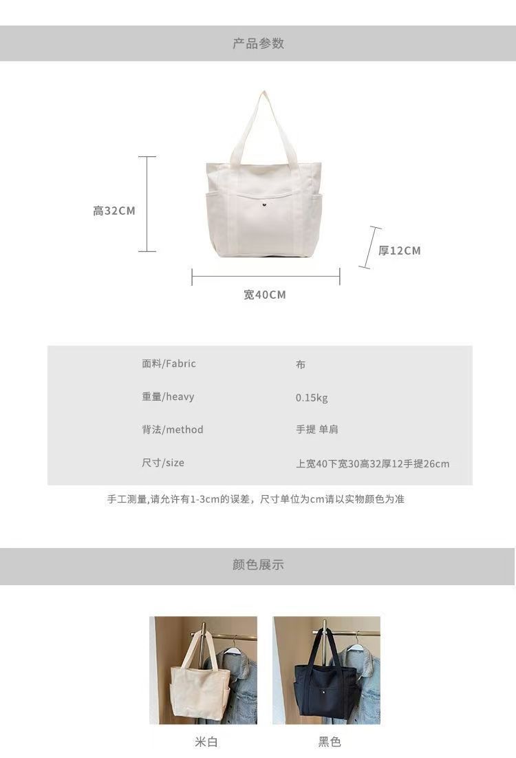작업 및 외출 용 대용량 토트 캔버스 가방 고 가치 통근 올 매치 아트 학생 도서 원 숄더 천 가방