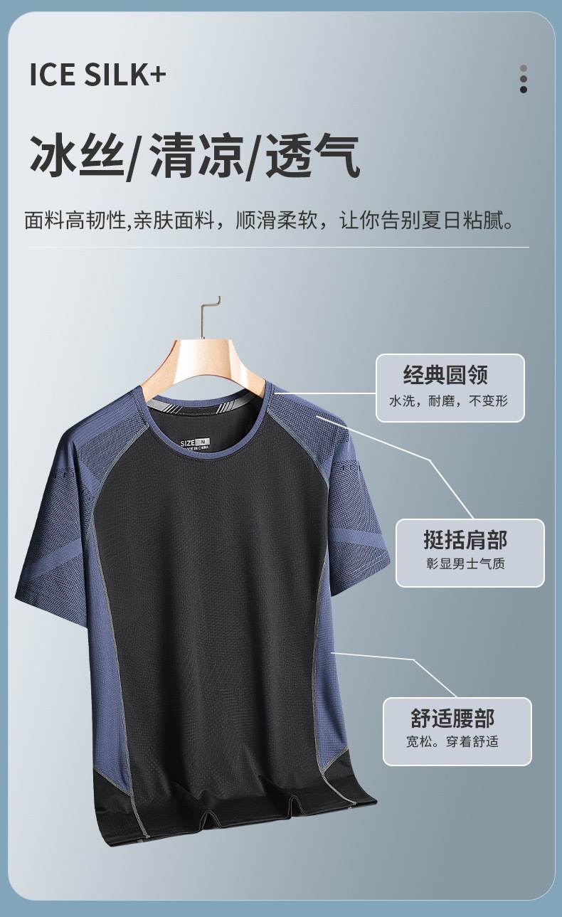 여름 빠른 건조 반팔 남성 티셔츠 아이스 실크 크루 넥 야외 스포츠 레저 반팔 얇은 편안한 통기성 티셔츠스토어 가기