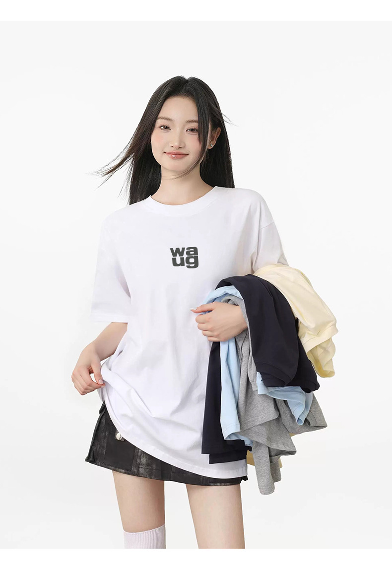 여름 여성 230g 코튼 반팔 티셔츠 여성 왕 심플 스타일 조커 기본 캐주얼 의류 탑 여성