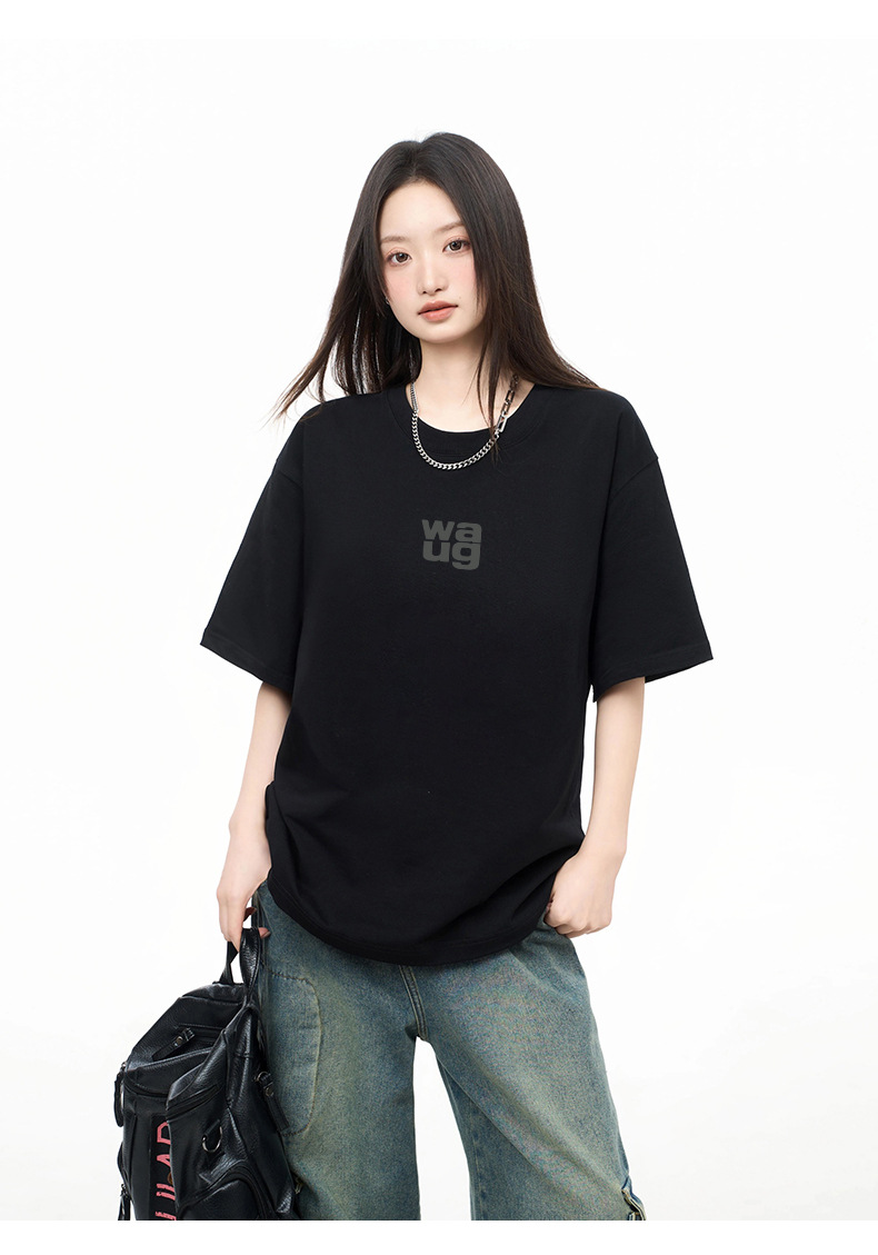 여름 여성 230g 코튼 반팔 티셔츠 여성 왕 심플 스타일 조커 기본 캐주얼 의류 탑 여성스토어 가기