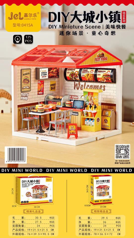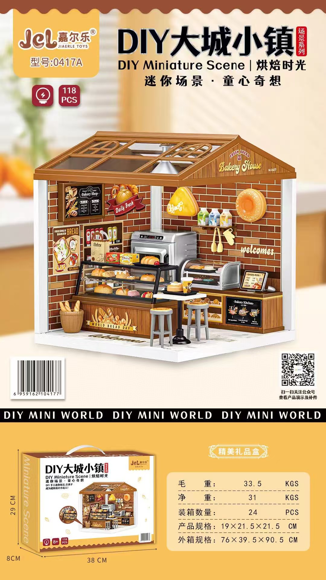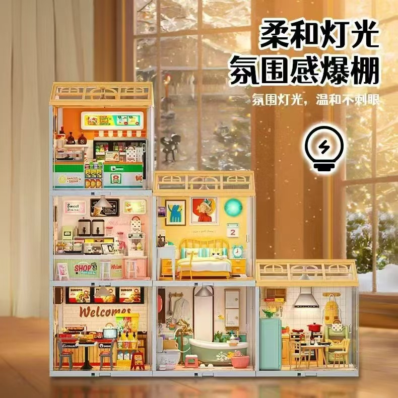여자 장난감 따뜻한 침실 미니 주방 우유 차 가게 장면 오두막 DIY 조립 모델 장난감 도매