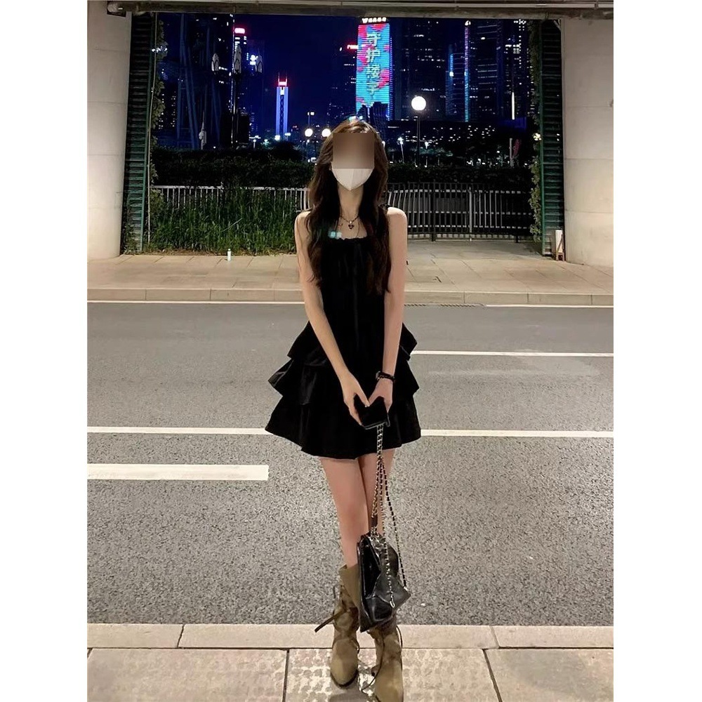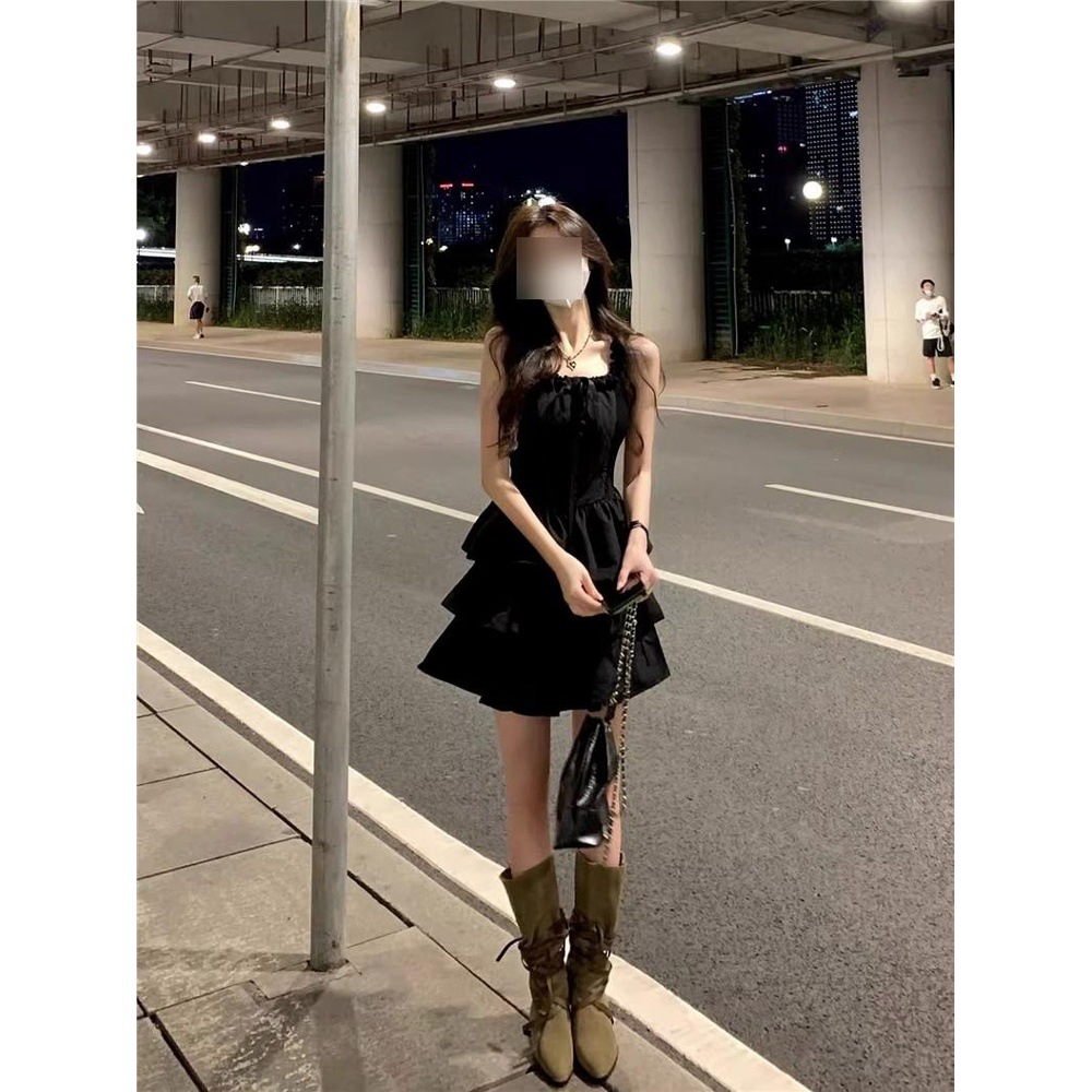 새로운 봄 프랑스 스타일 블랙 슬링 원피스 어린이 여름 허리 우아한 프랑스 스타일 슬리밍 우아한 프린세스 폰툰 원피스스토어 가기