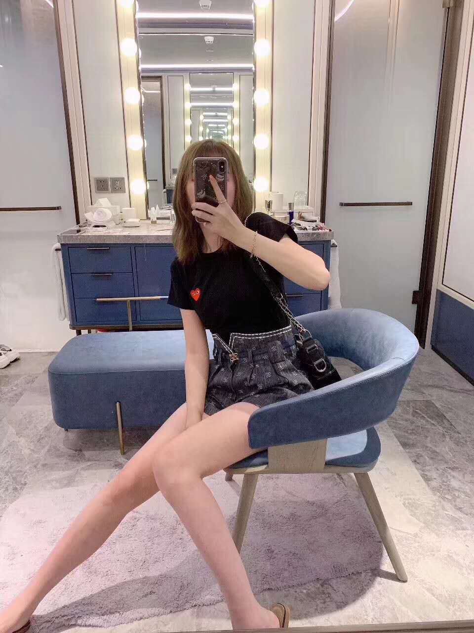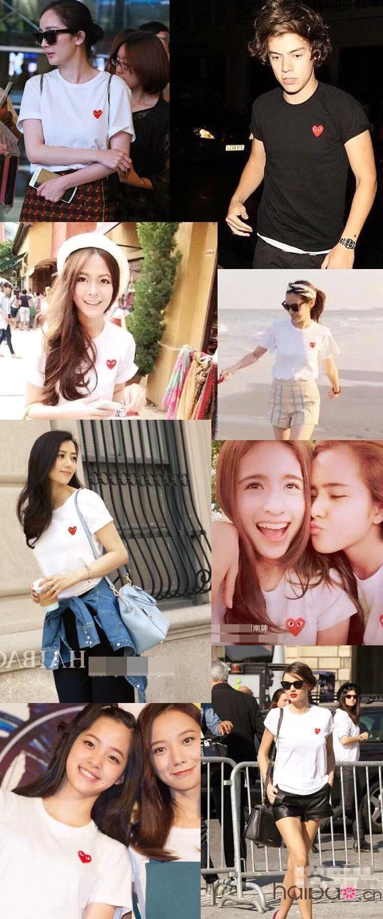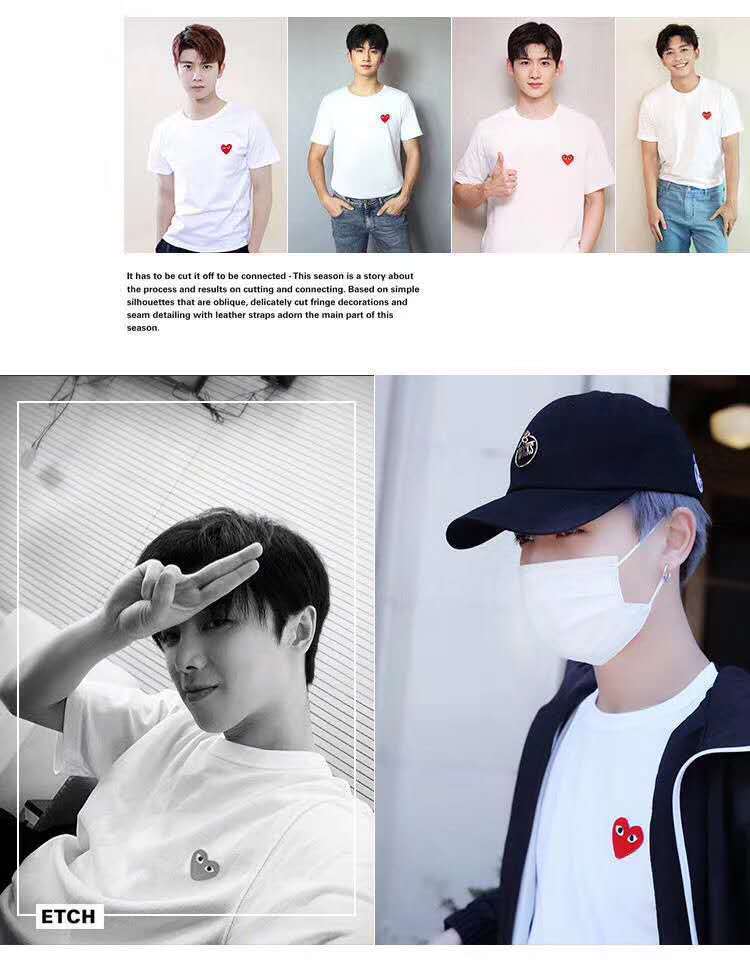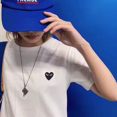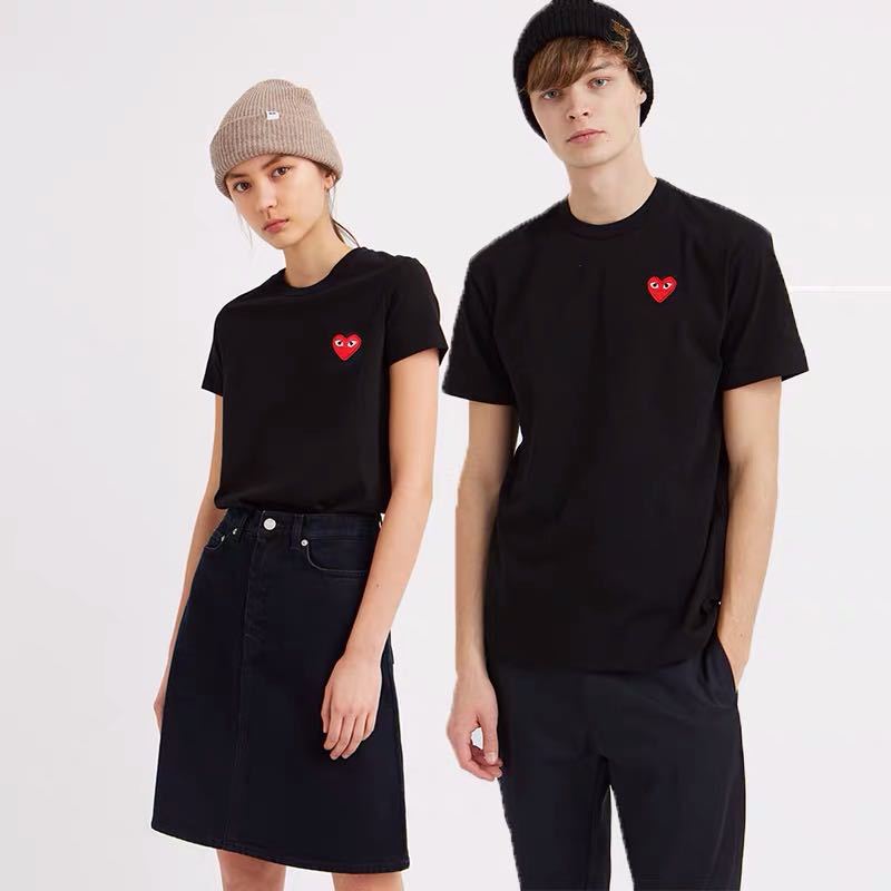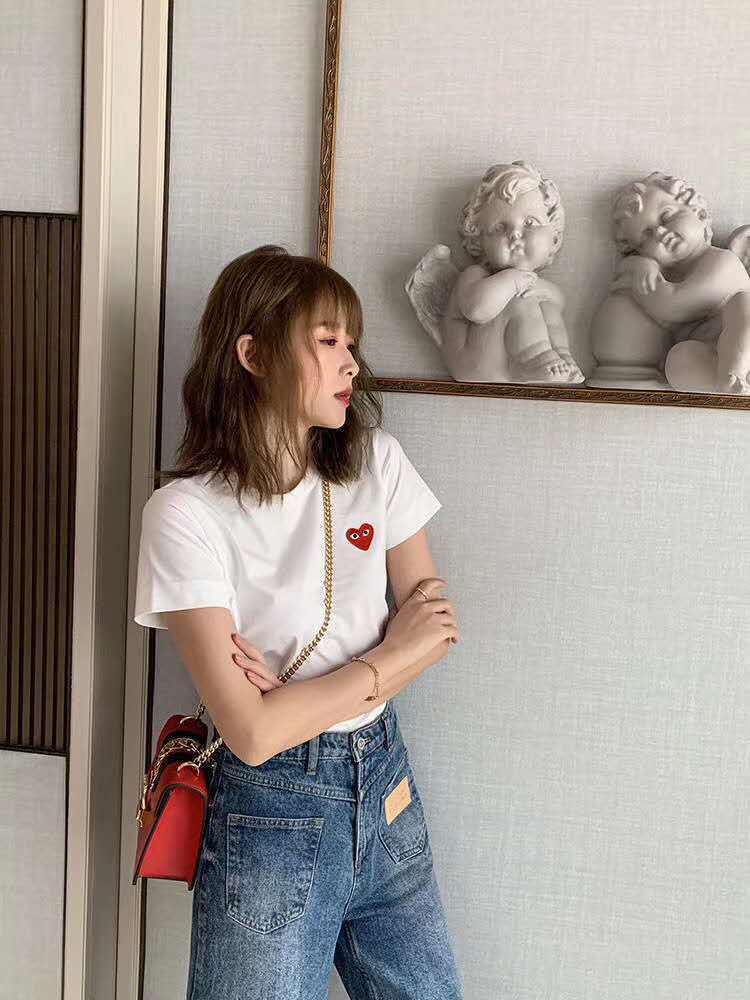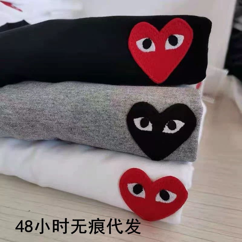 일본 유행 브랜드 자수 Chuanxiaohongxinjiu 사랑 반팔 티셔츠 Baonen Ling 여성 커플 같은 스타일 부모-자식스토어 가기