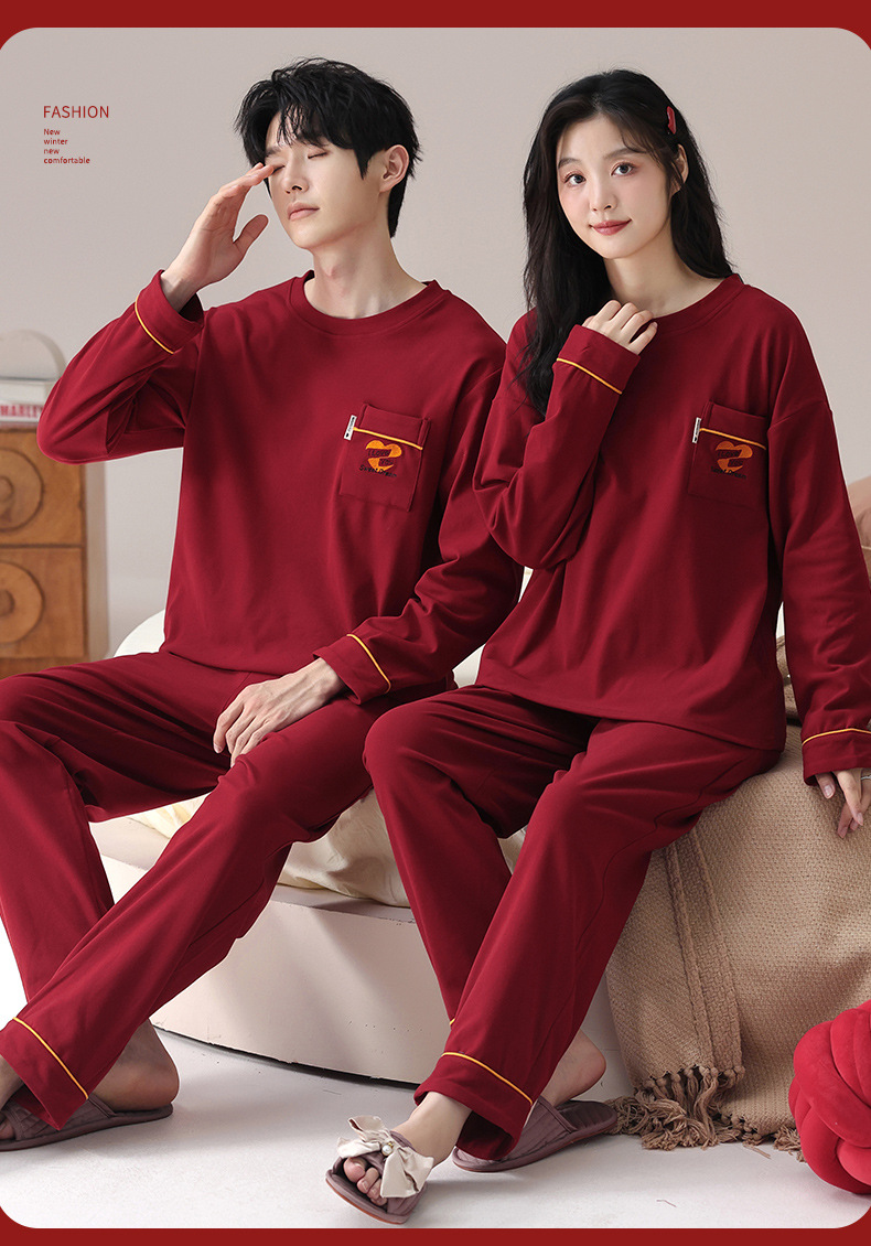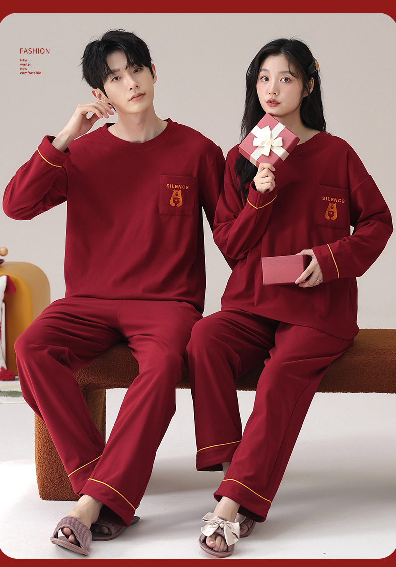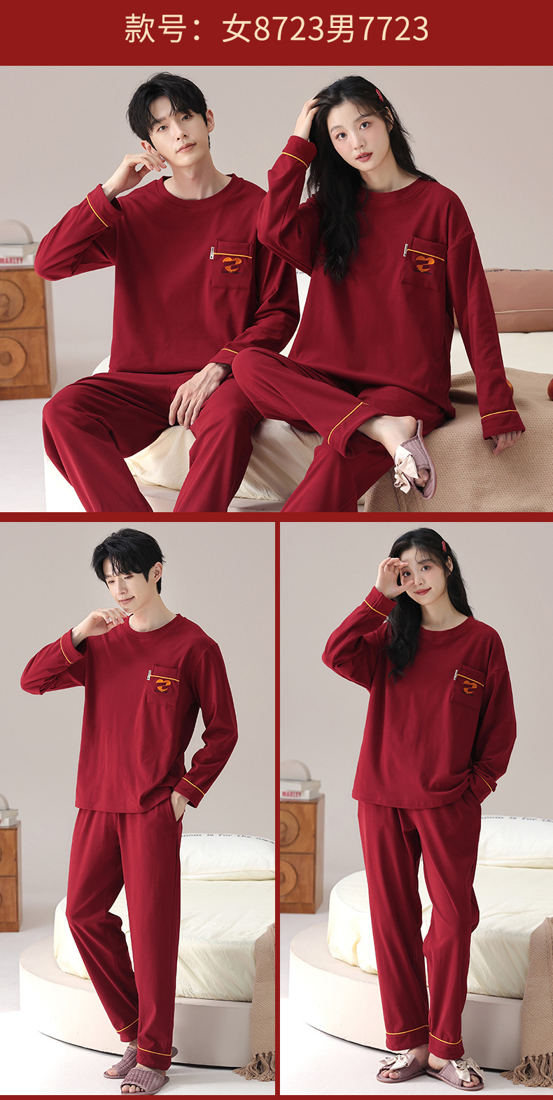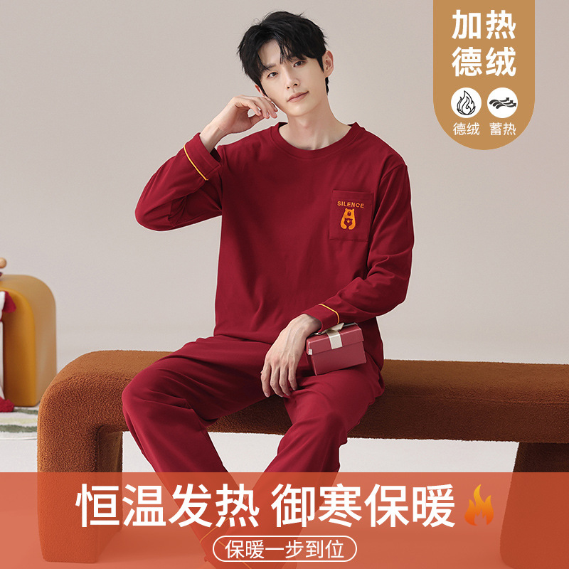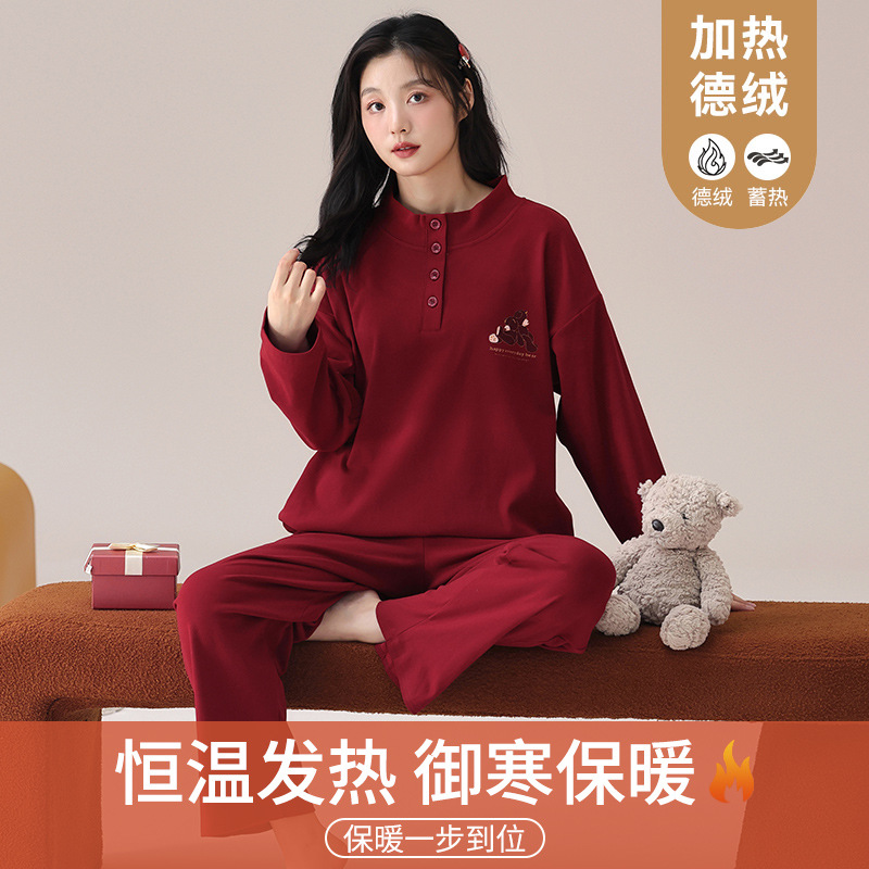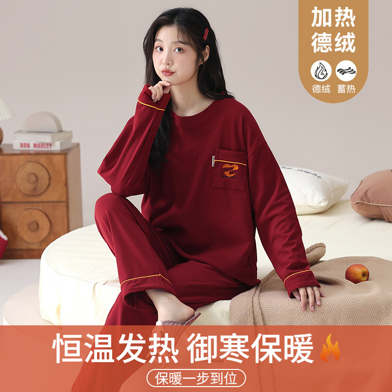 가을과 겨울 붉은 새 긴 소매 벨벳 커플 파자마 신혼 축제 홈 옷 남자와 여자는 올해의 세트 플러스 사이즈스토어 가기