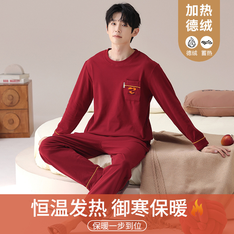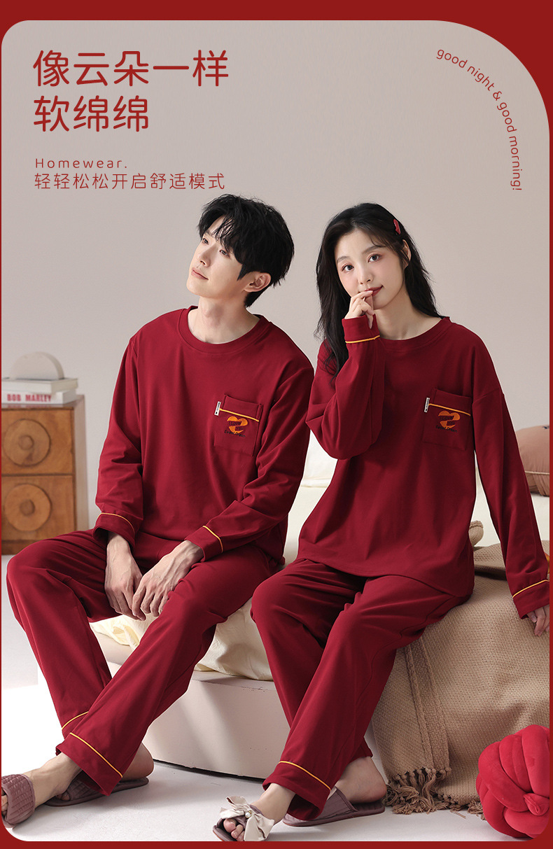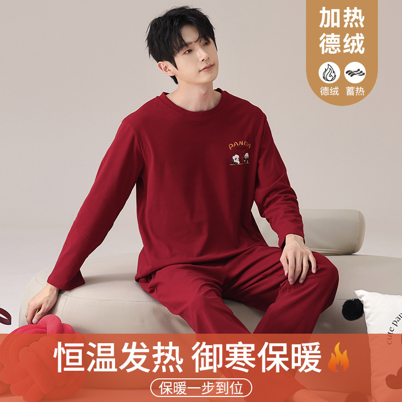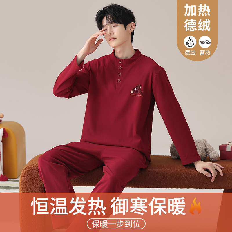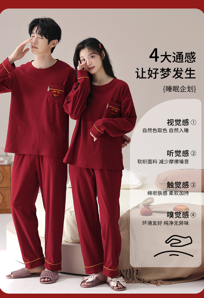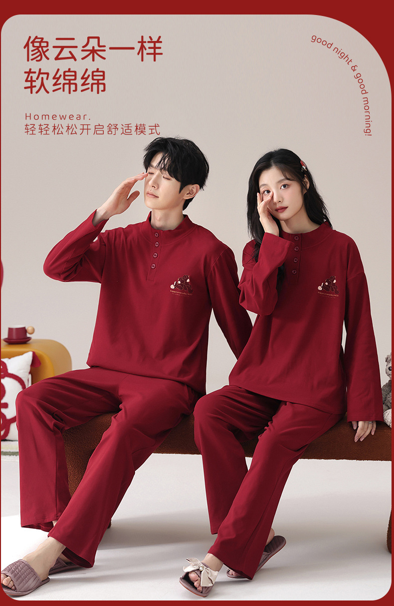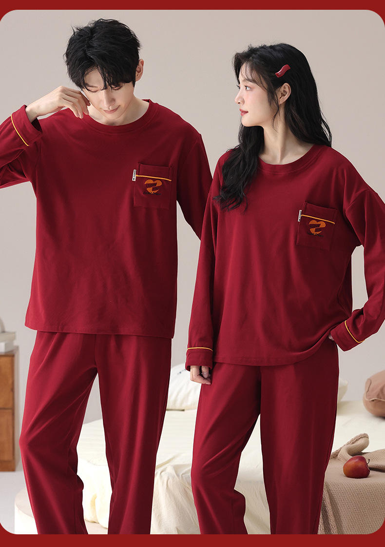 가을과 겨울 붉은 새 긴 소매 벨벳 커플 파자마 신혼 축제 홈 옷 남자와 여자는 올해의 세트 플러스 사이즈스토어 가기