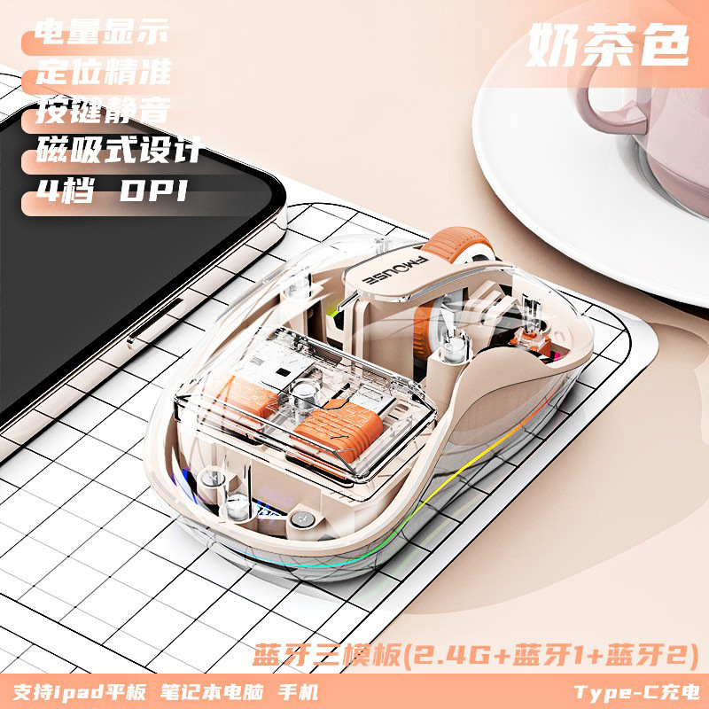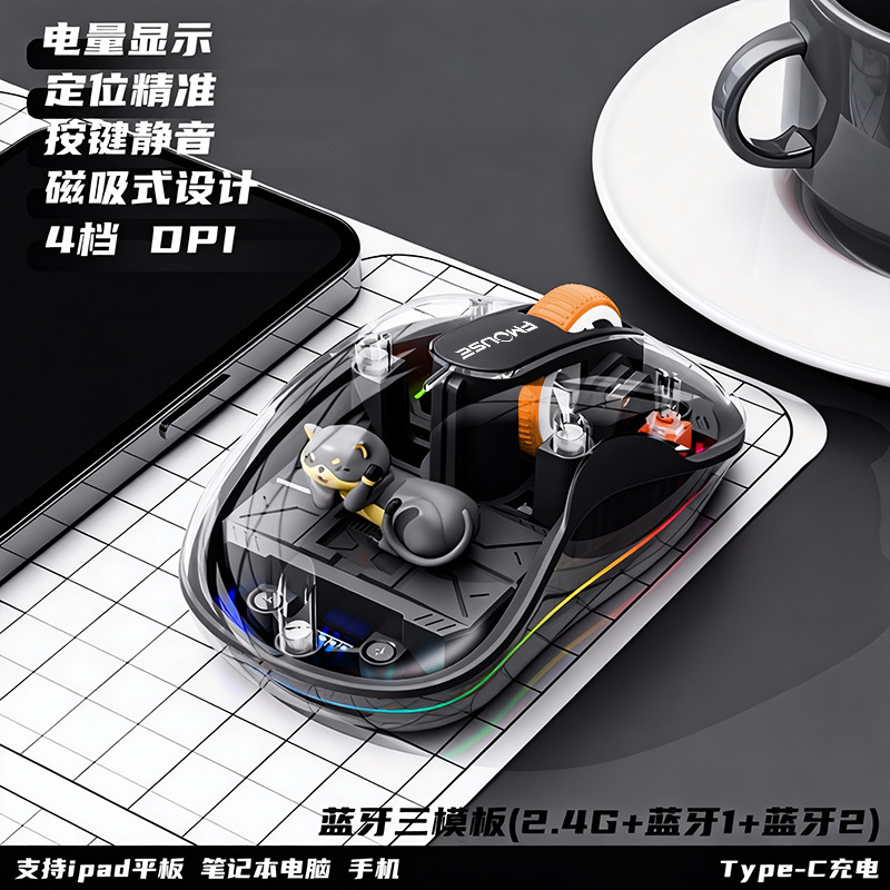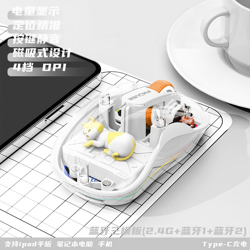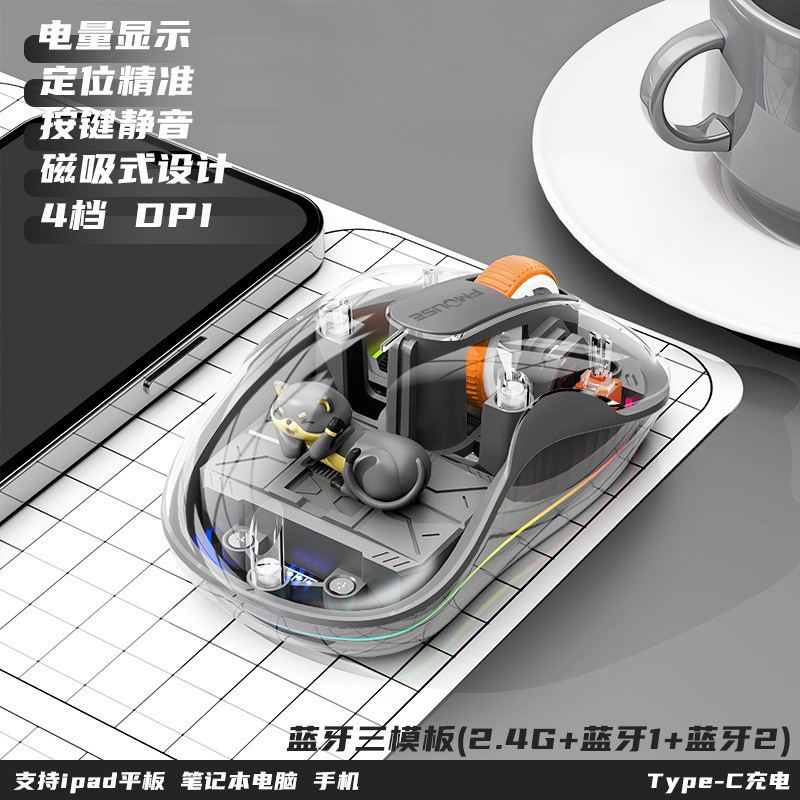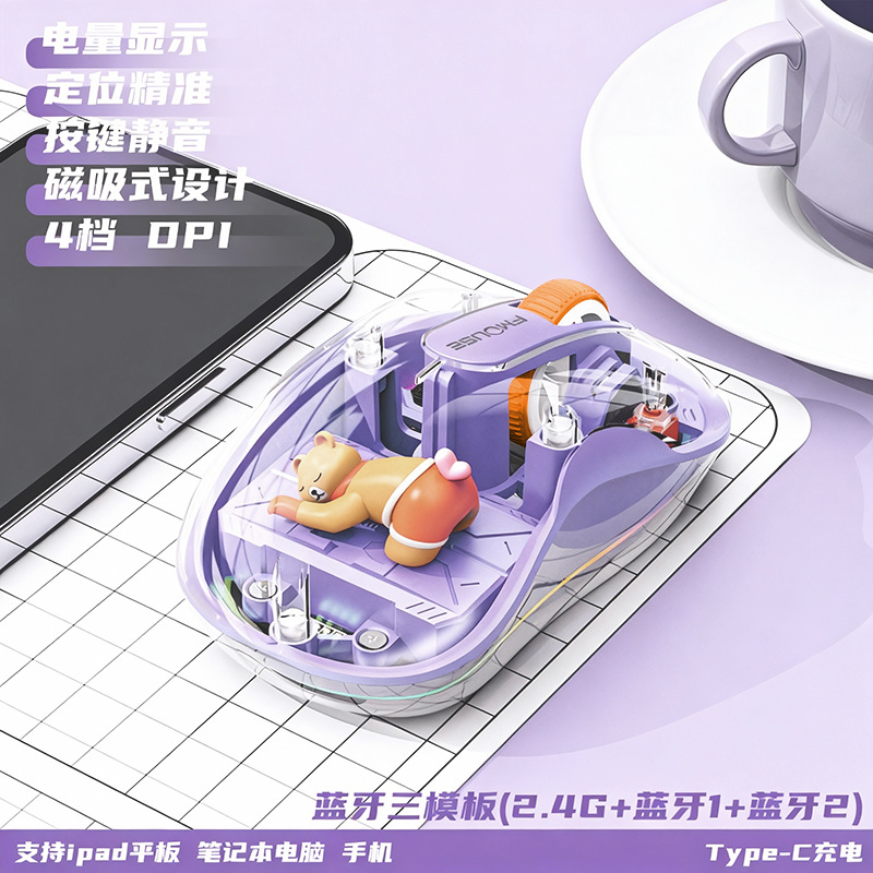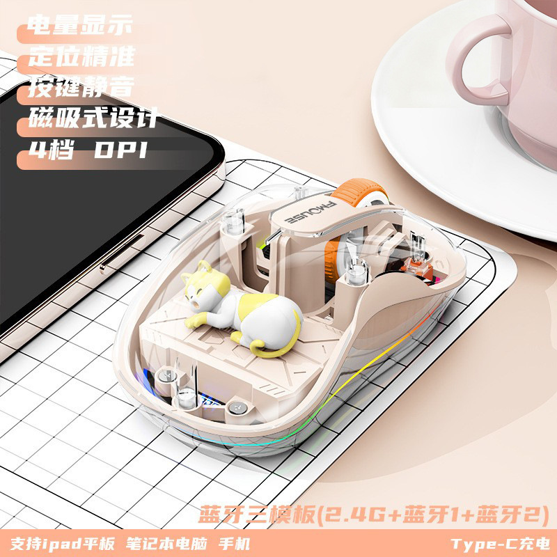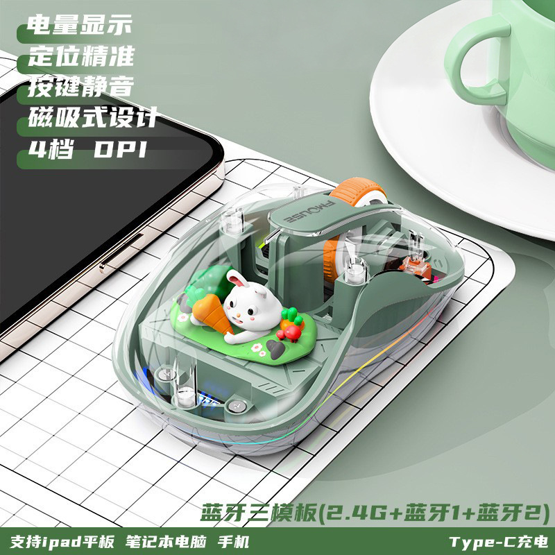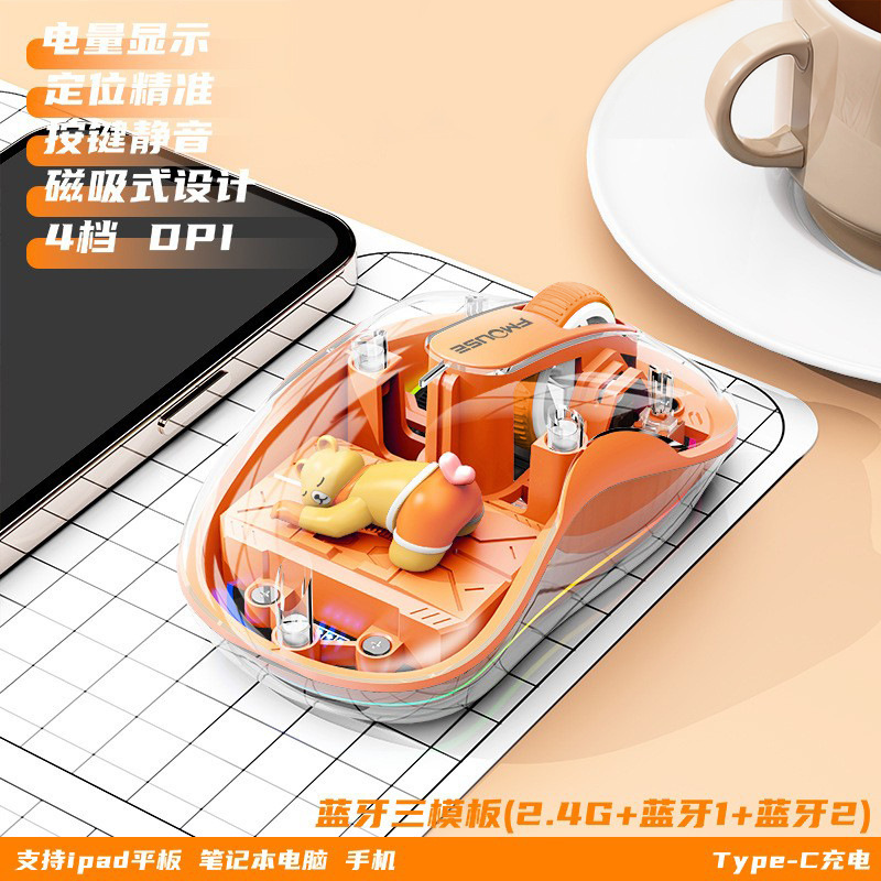 인형 마우스 노트북 투명 발광 3모드 무선 블루투스 마우스 인체공학적 자석 충전식스토어 가기