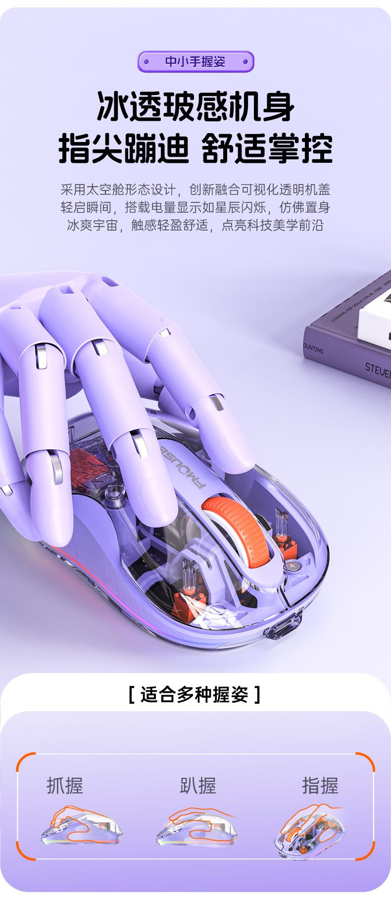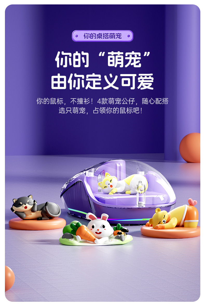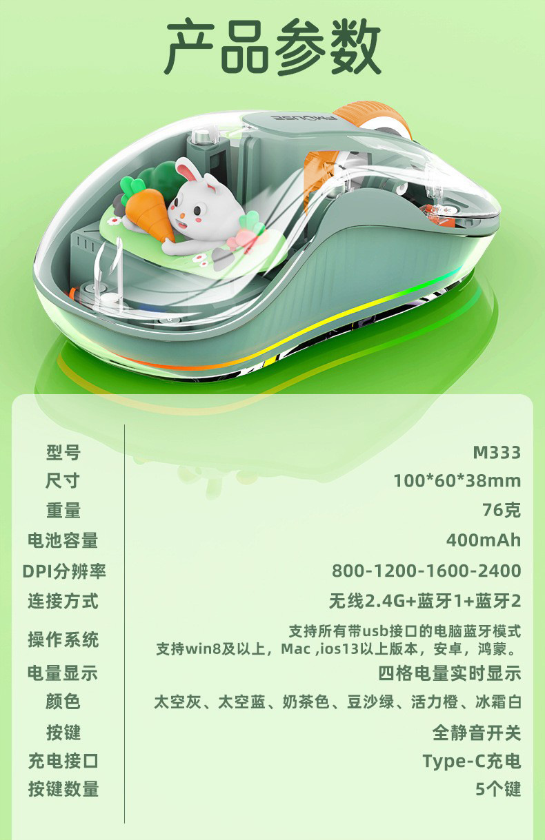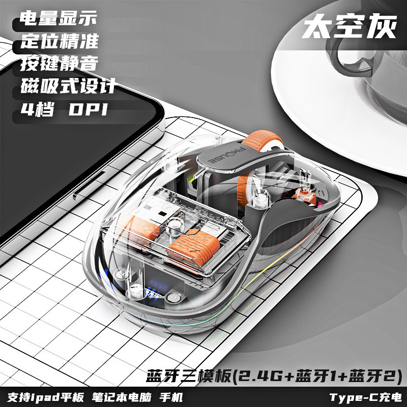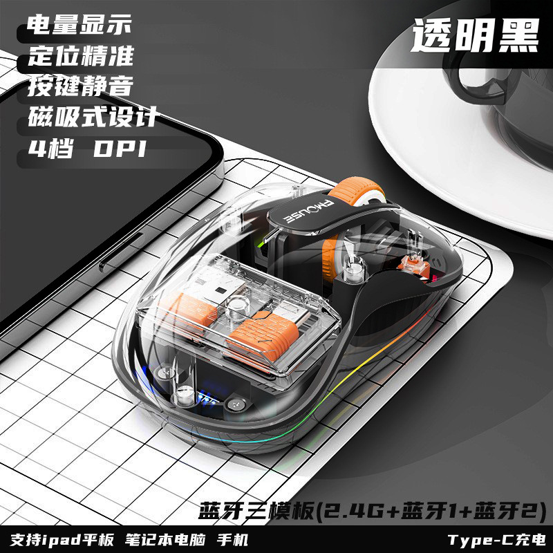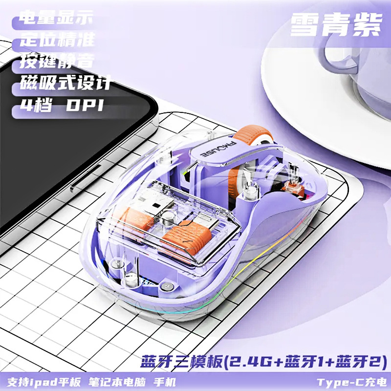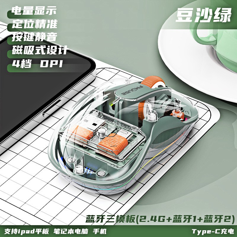 인형 마우스 노트북 투명 발광 3모드 무선 블루투스 마우스 인체공학적 자석 충전식스토어 가기
