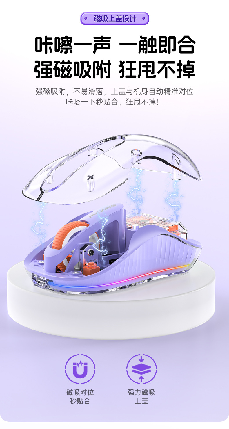 인형 마우스 노트북 투명 발광 3모드 무선 블루투스 마우스 인체공학적 자석 충전식