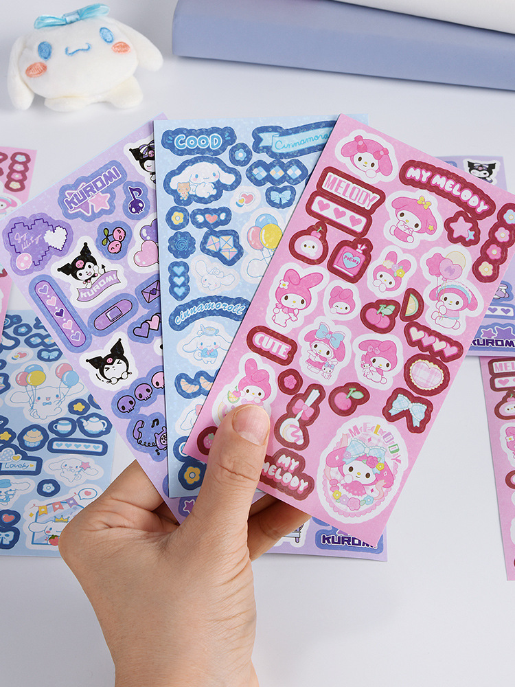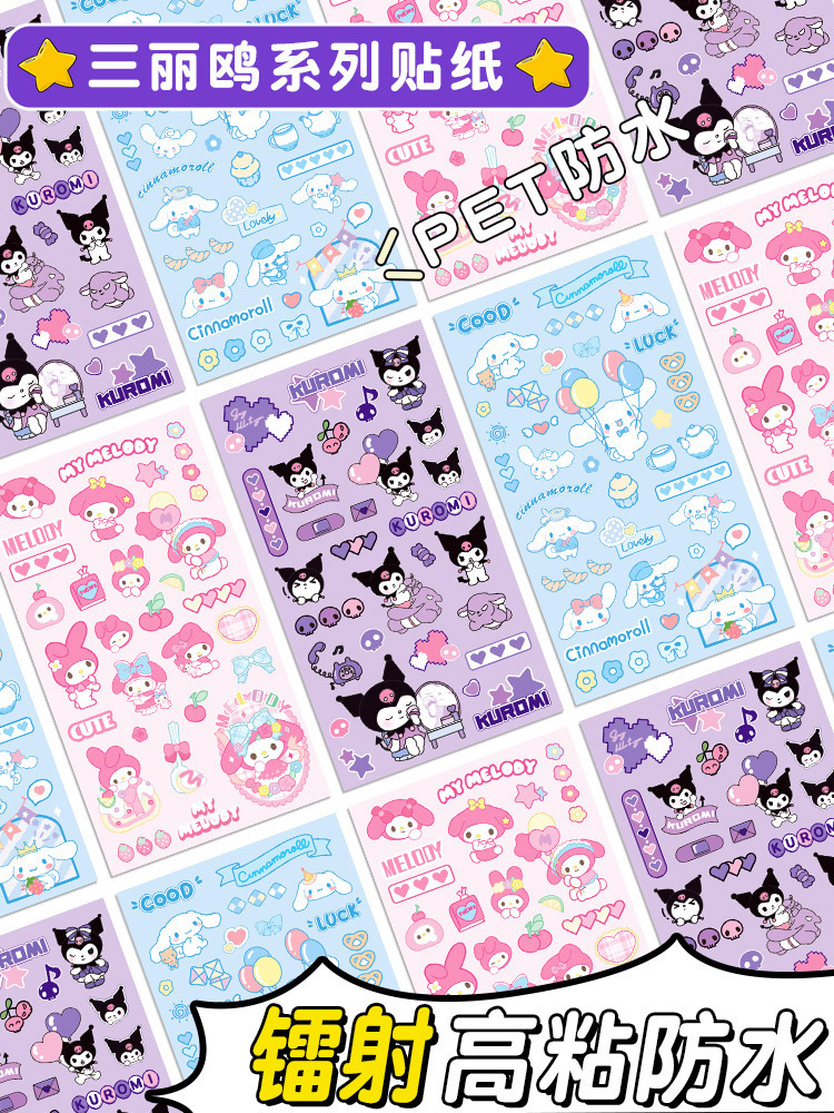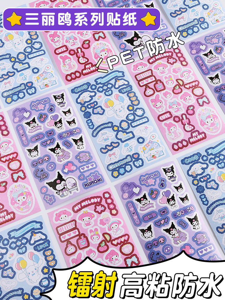 쿠로미 귀여운 네일 스티커 어린이 레이저 방수 핸드북 소재 초등학생을위한 고가치 크리 에이 티브 DIY 스티커스토어 가기