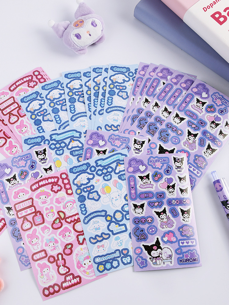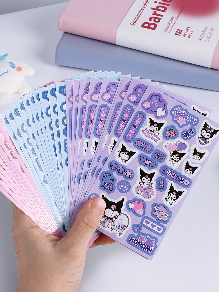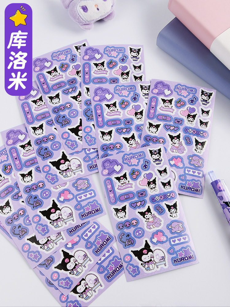 쿠로미 귀여운 네일 스티커 어린이 레이저 방수 핸드북 소재 초등학생을위한 고가치 크리 에이 티브 DIY 스티커