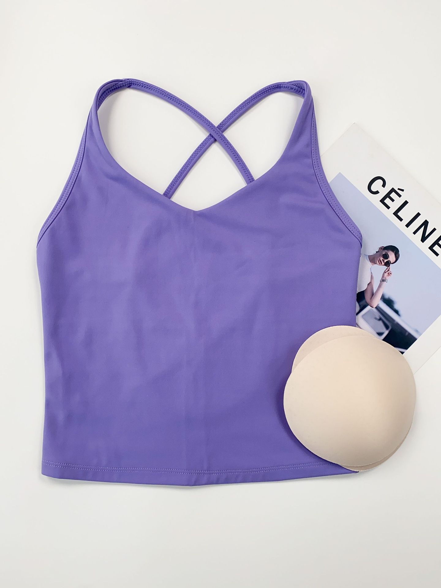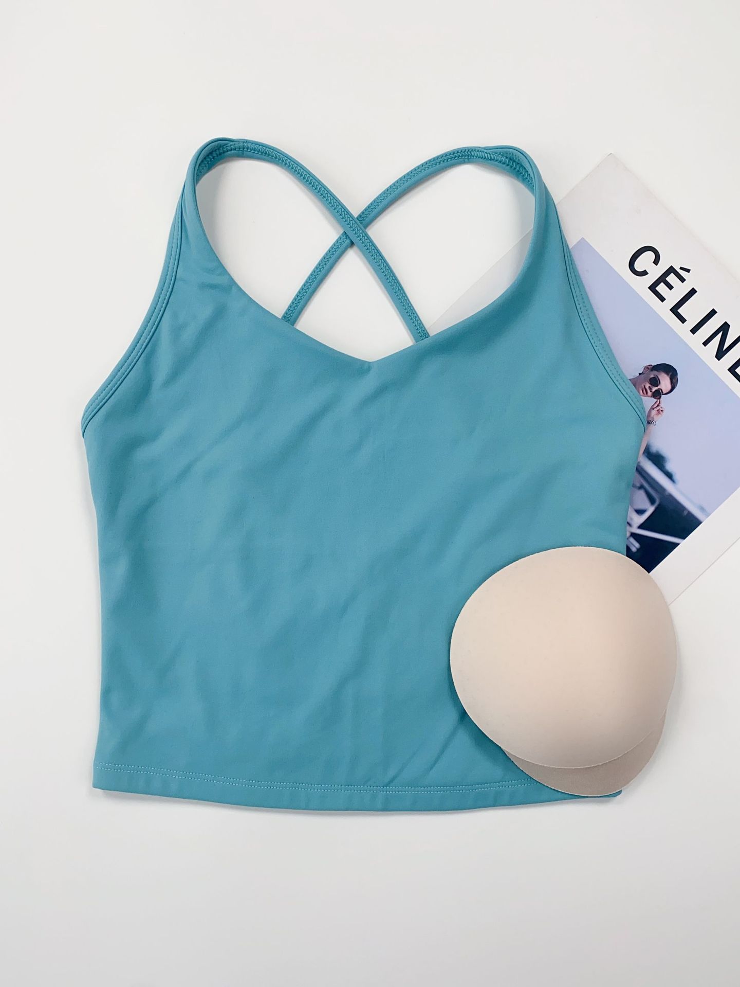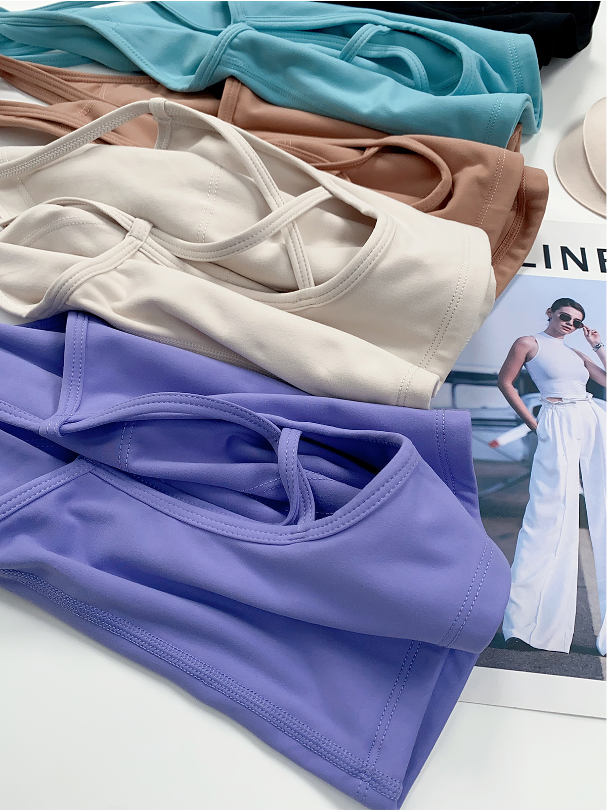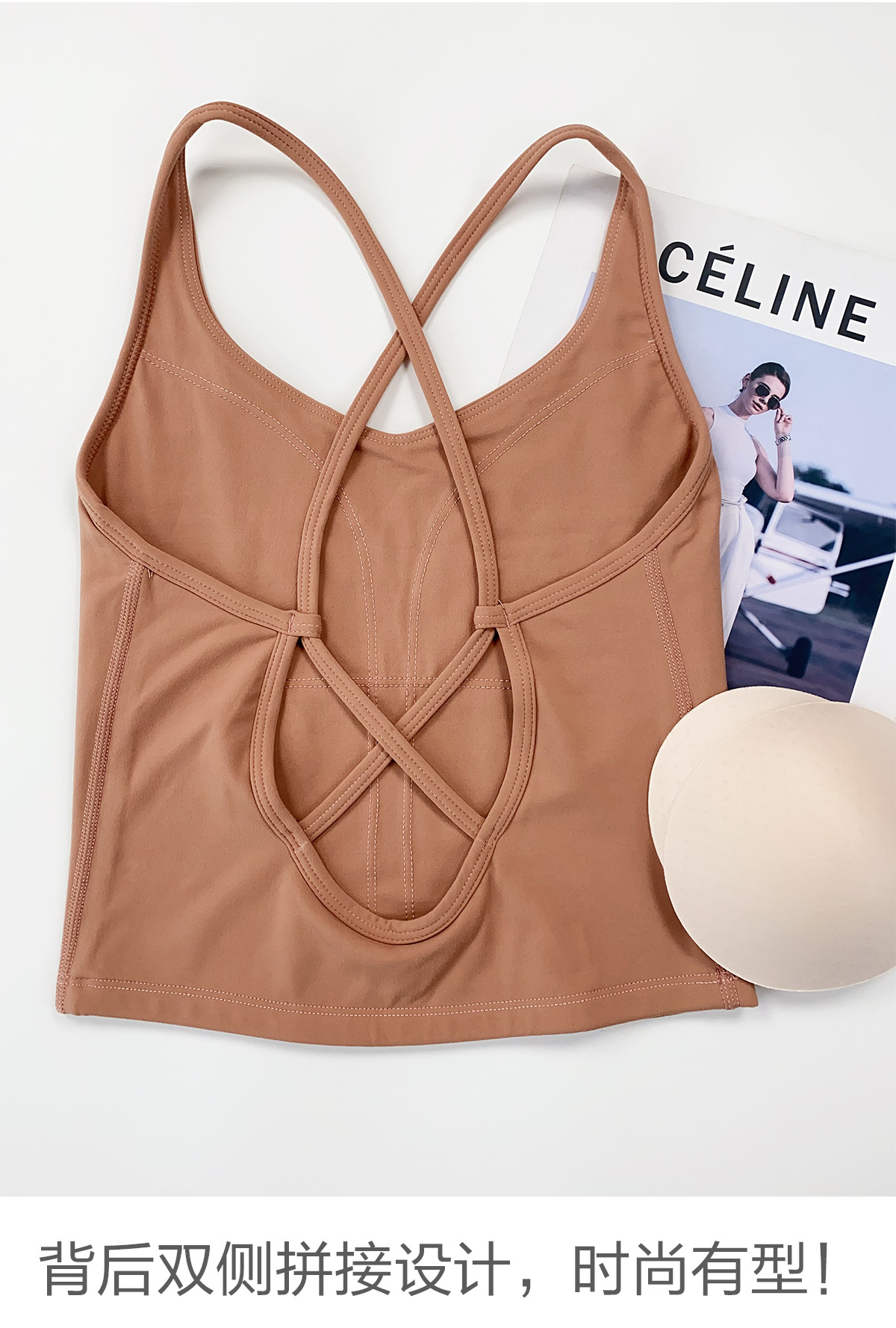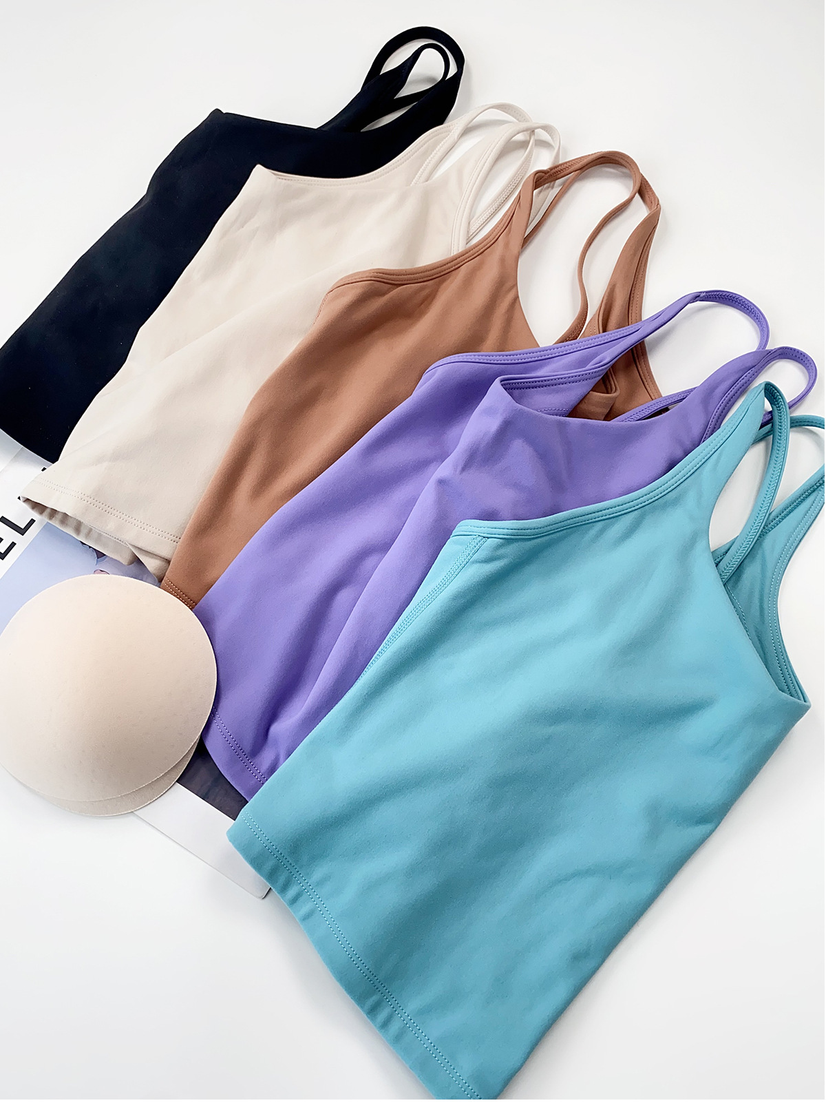 2025년 요가 조끼 여성용 얇은 어깨끈 가슴 패드가 있는 스포츠 브라 외출용 러닝 피트니스 브라 통기성 및 빠른 건조스토어 가기