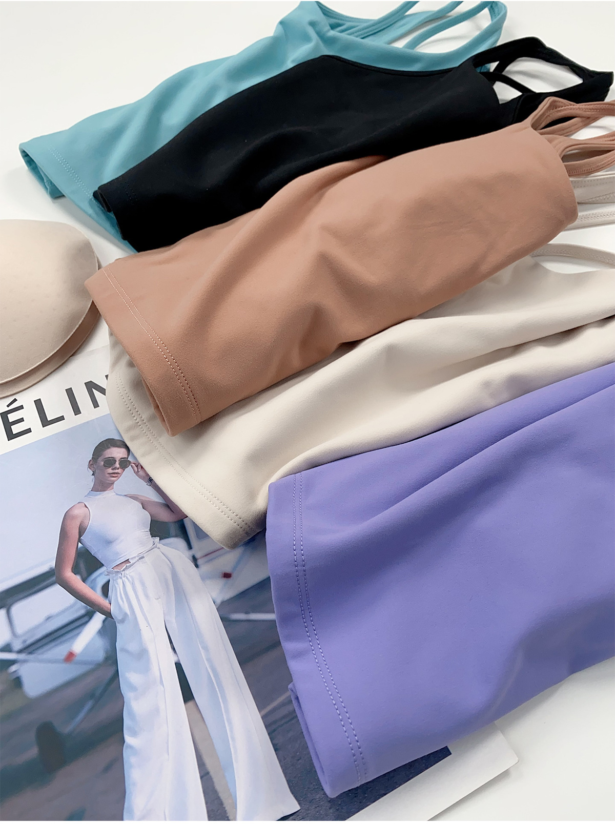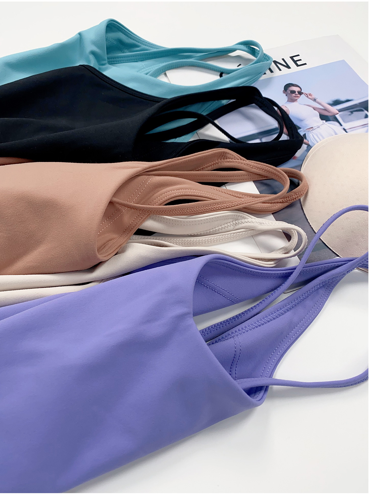 2025년 요가 조끼 여성용 얇은 어깨끈 가슴 패드가 있는 스포츠 브라 외출용 러닝 피트니스 브라 통기성 및 빠른 건조
