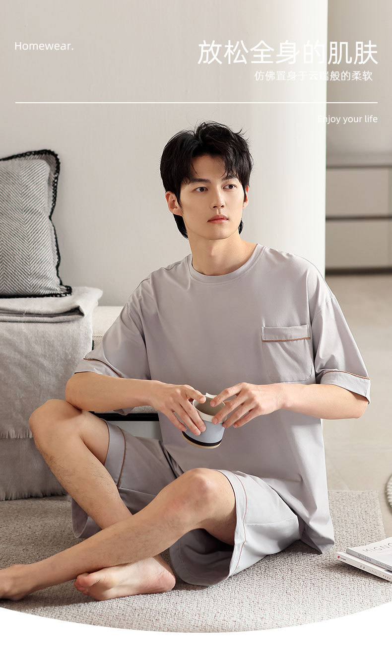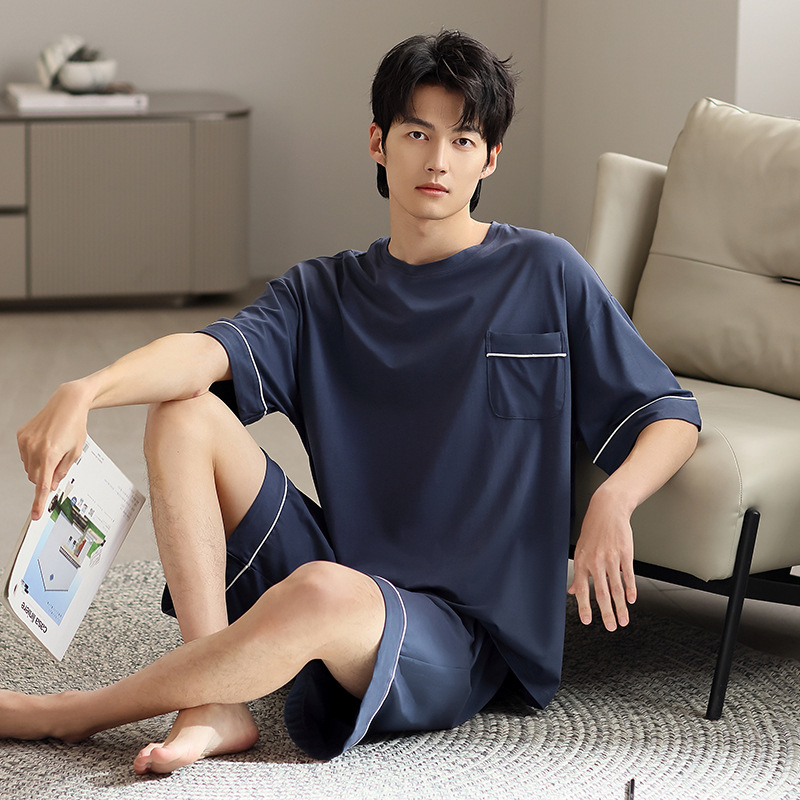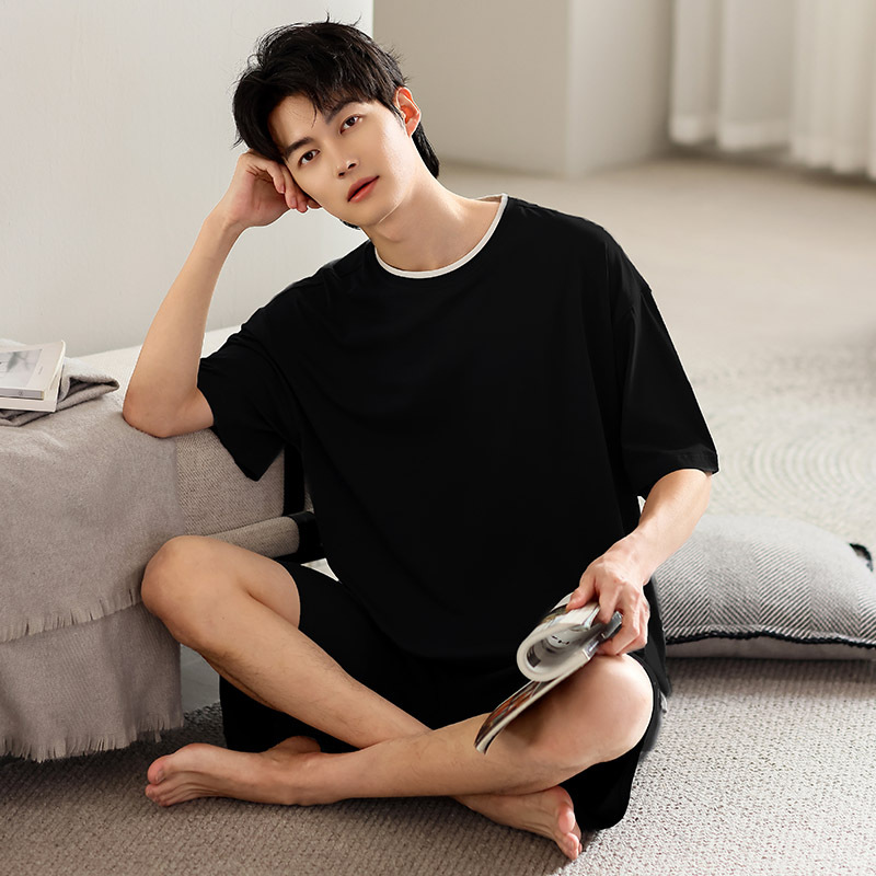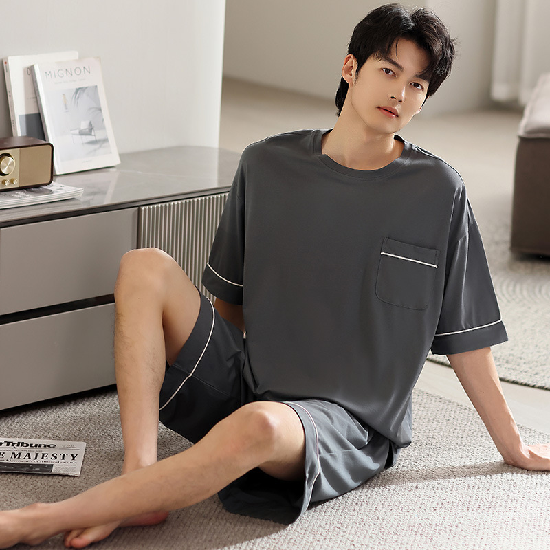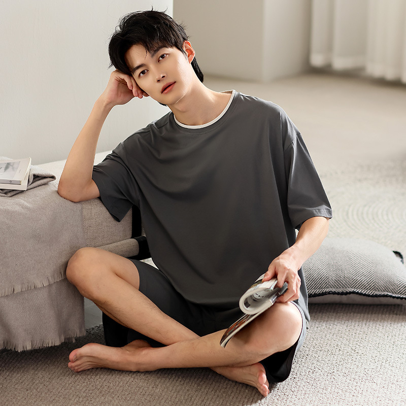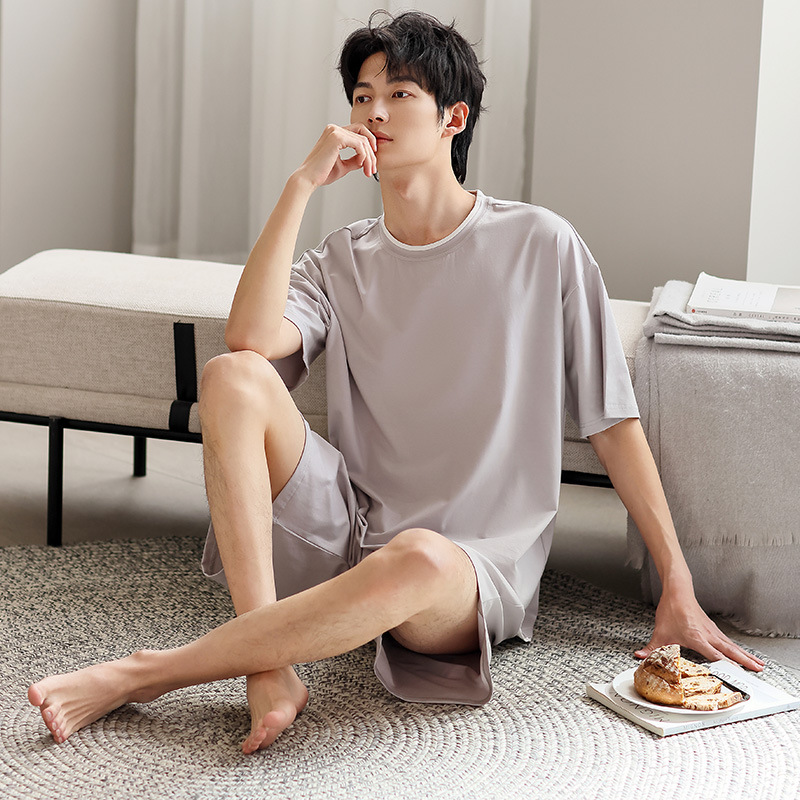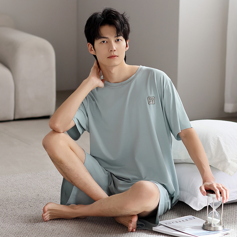 남자 잠옷 모달 여름 얇은 반팔 쿨 플러스 사이즈 홈 캐주얼 간단한 느슨한 홈 의류 세트