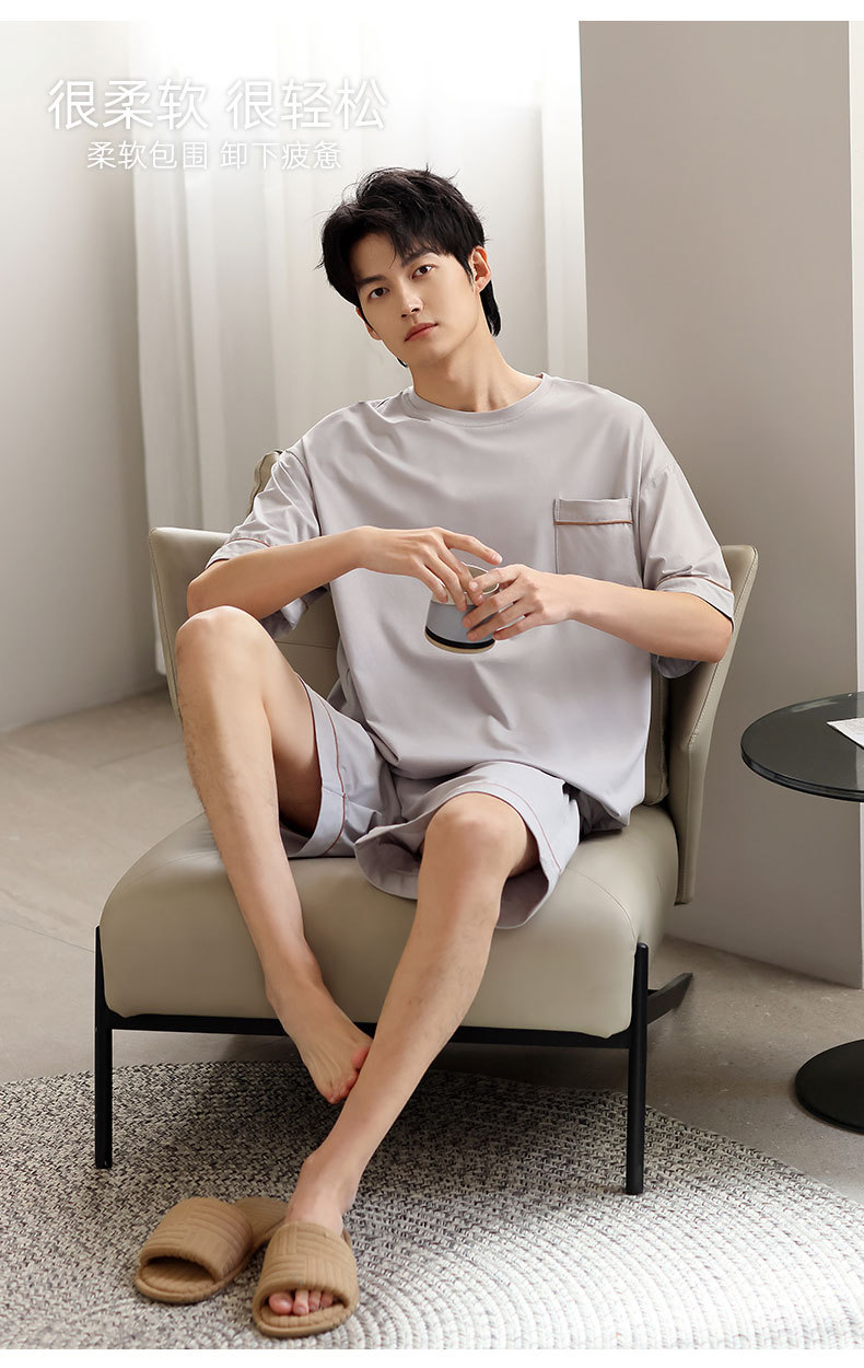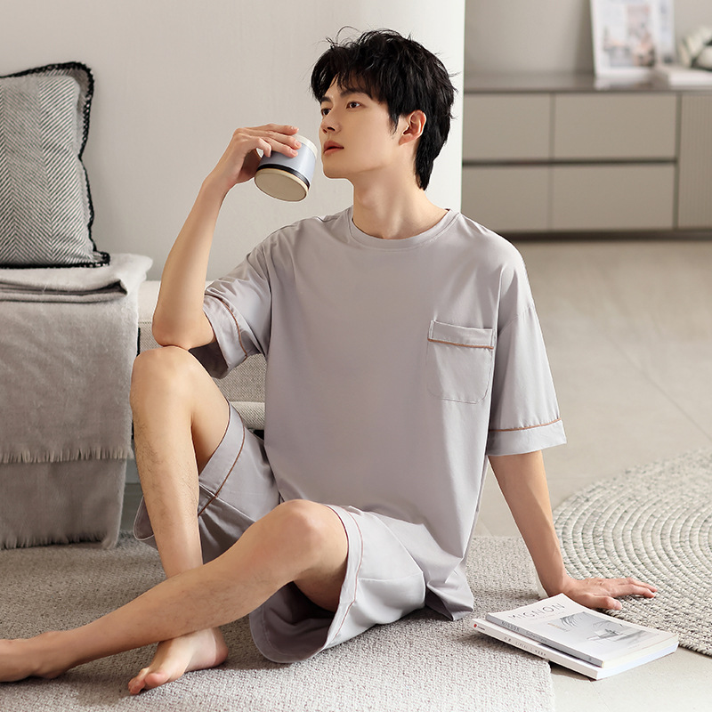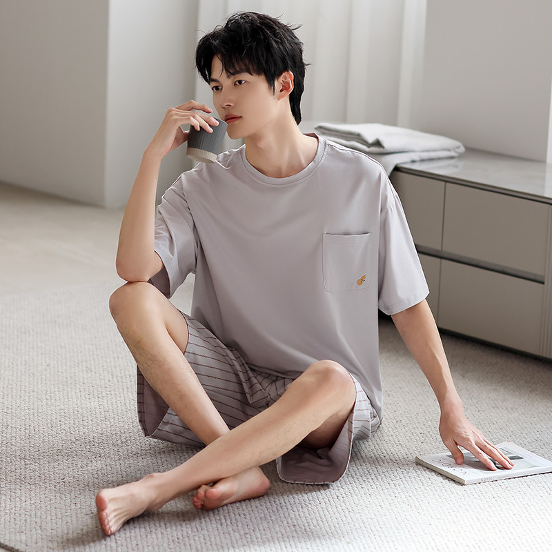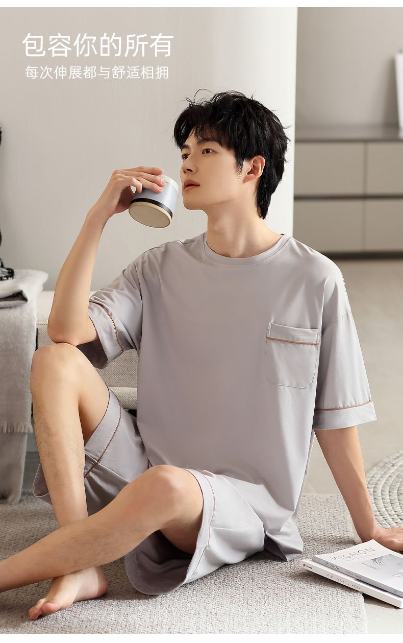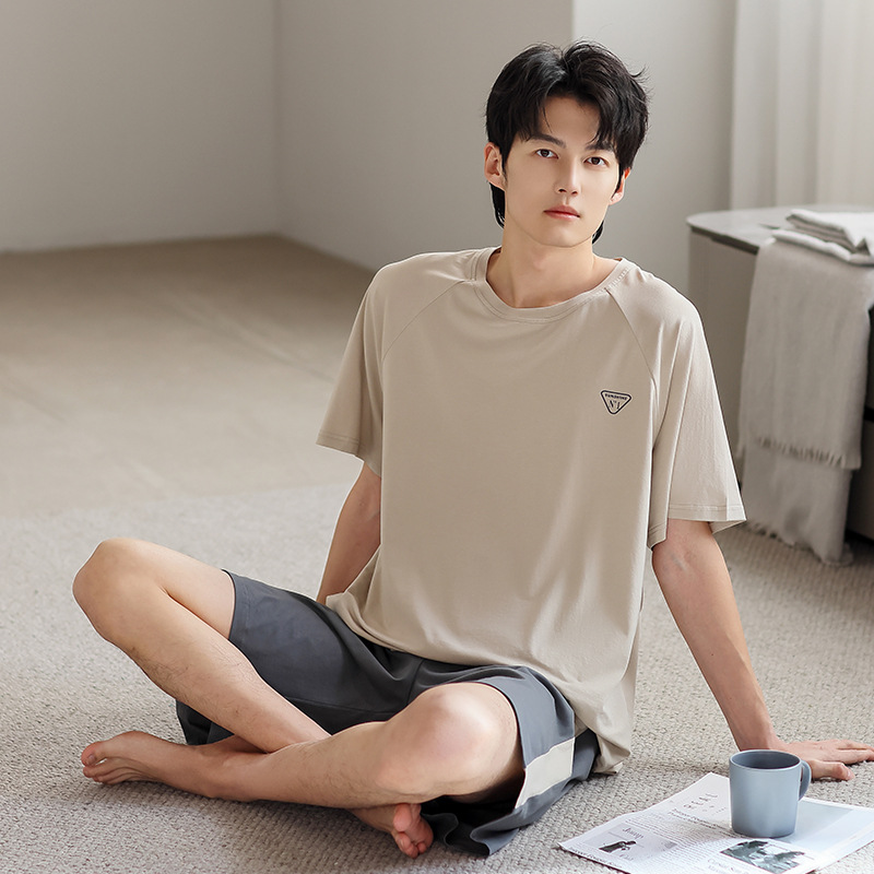 남자 잠옷 모달 여름 얇은 반팔 쿨 플러스 사이즈 홈 캐주얼 간단한 느슨한 홈 의류 세트