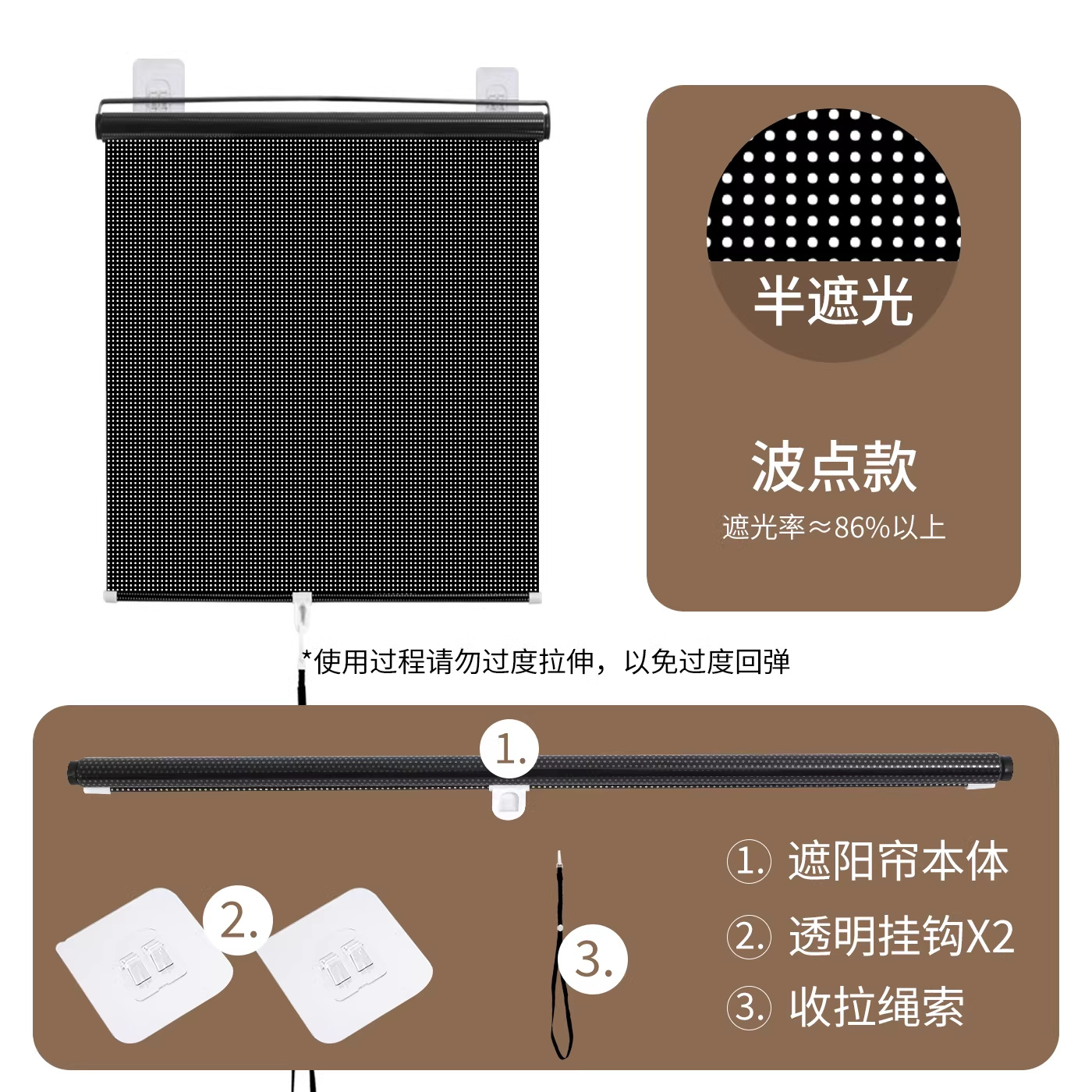• 일반형 - [블랙 도트] 햇빛 가리개 * 흡착판 + 무흔 고리 증정