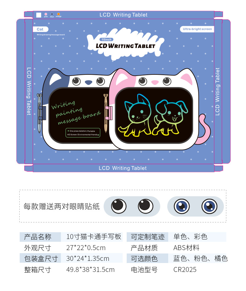10inch 고양이 만화 어린이 드로잉 보드 작은 칠판 낙서 그림 패드 자기 LCD 전자 쓰기 보드 학생 장난감