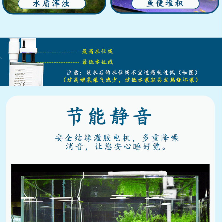 작은 물고기 탱크 필터 순환 물 펌프 산소 필터 통합 기계 3 대 1 초 조용한 산소 파 만들기 정화 펌프