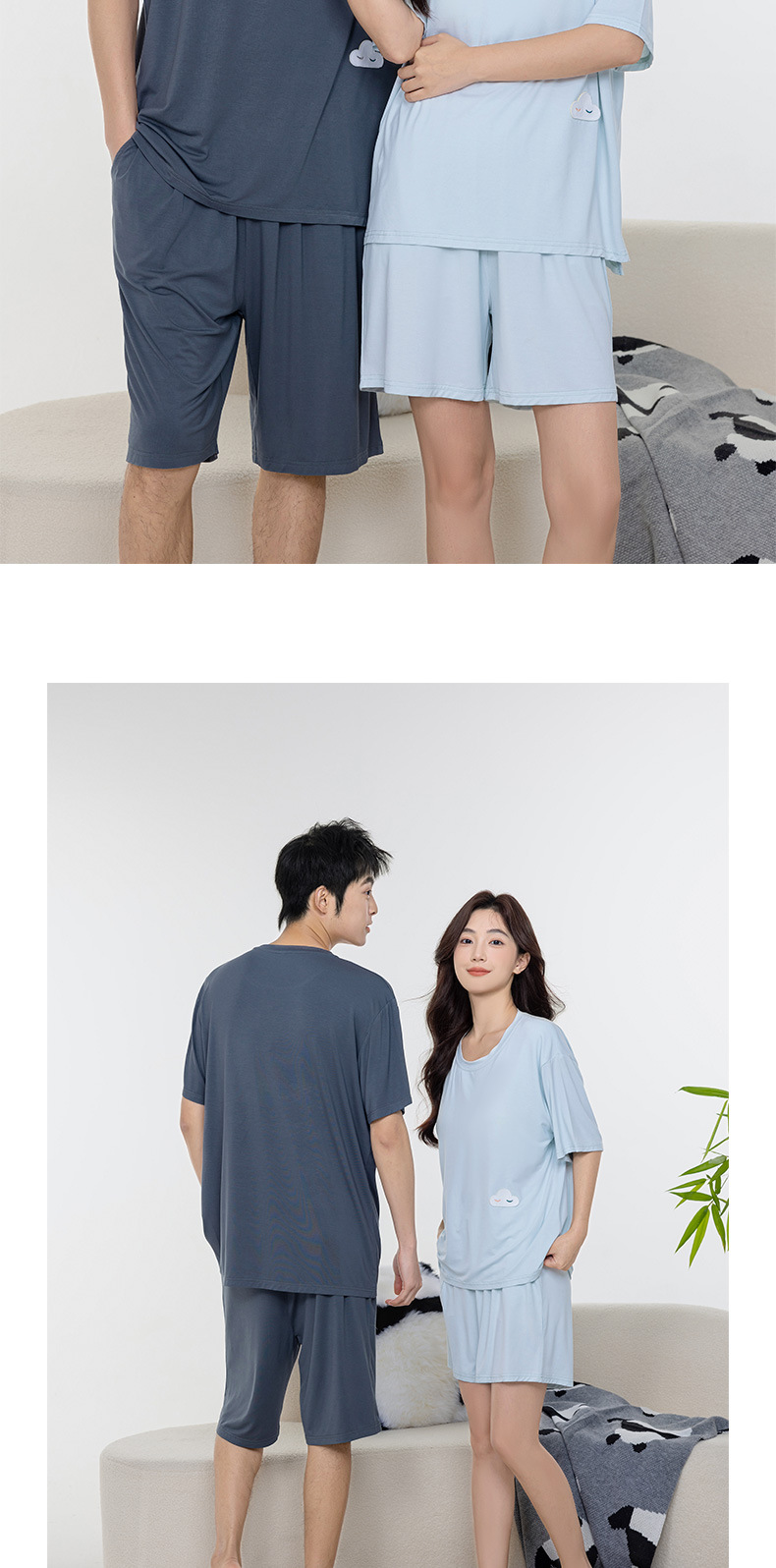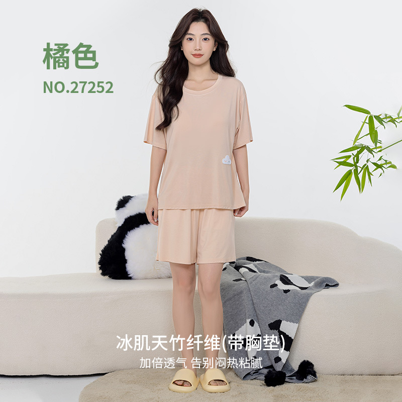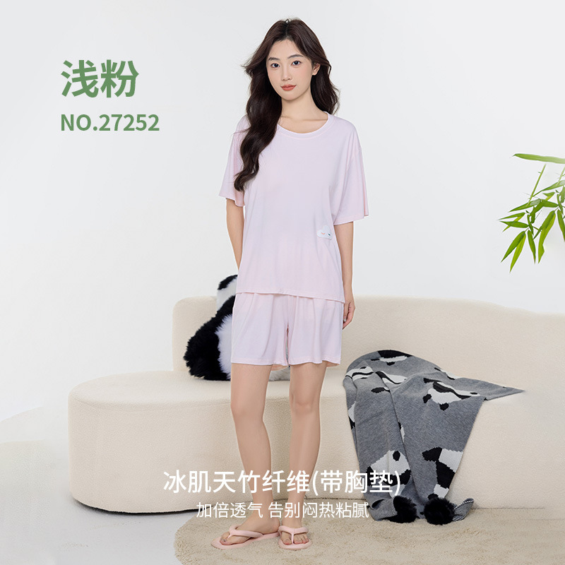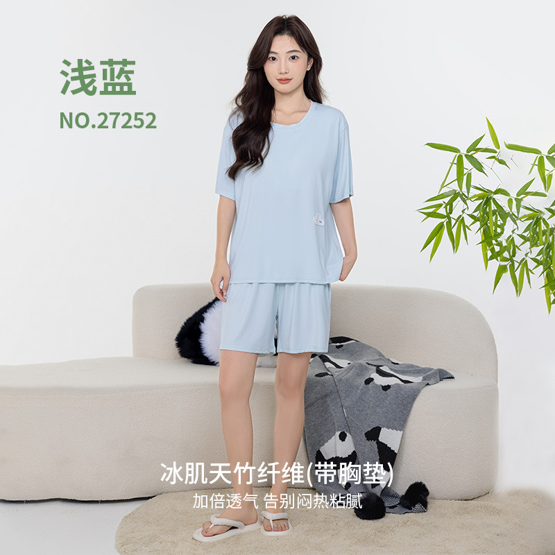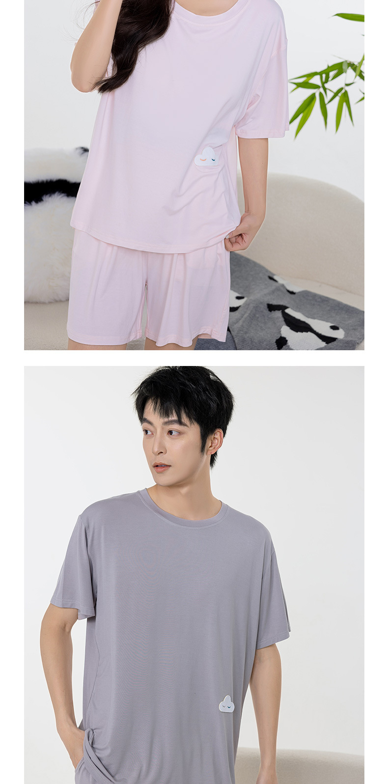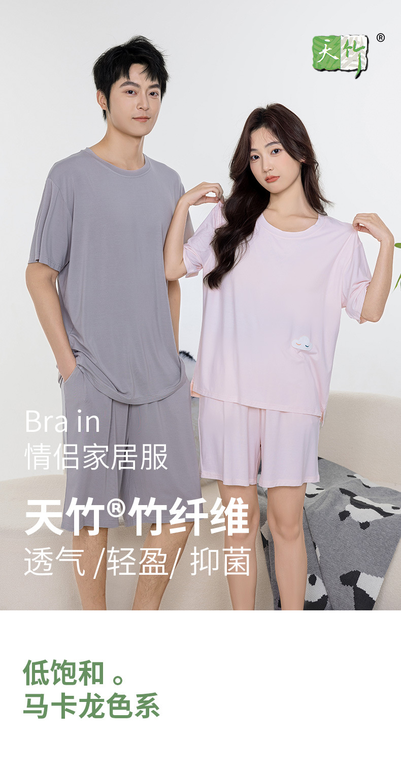 Tianzhu 섬유 풀오버 크루 넥 커플 파자마 여성 캐주얼 루즈 파자마, 가슴 패드 커플의 남성용 반팔 홈 옷스토어 가기