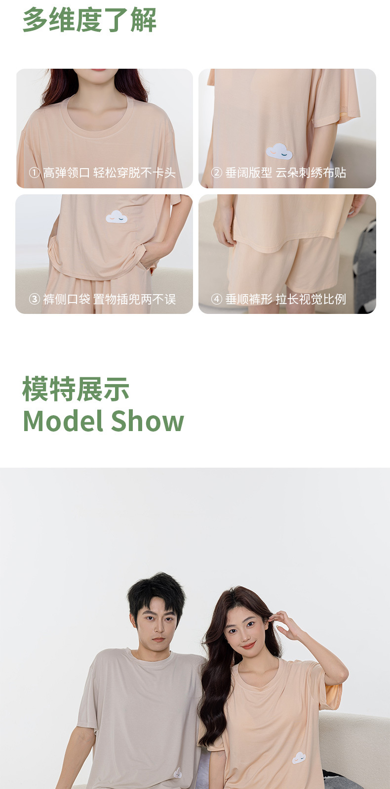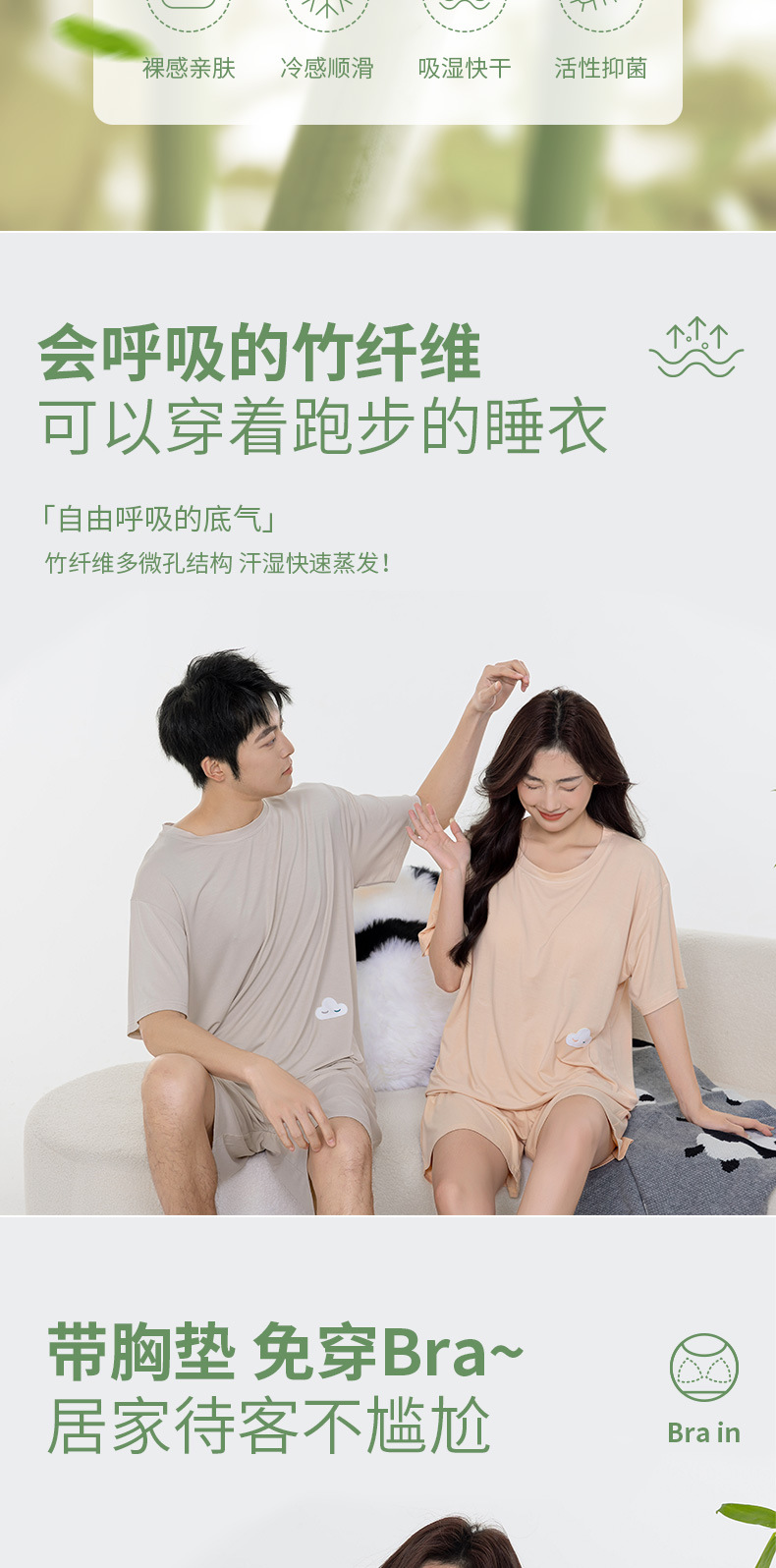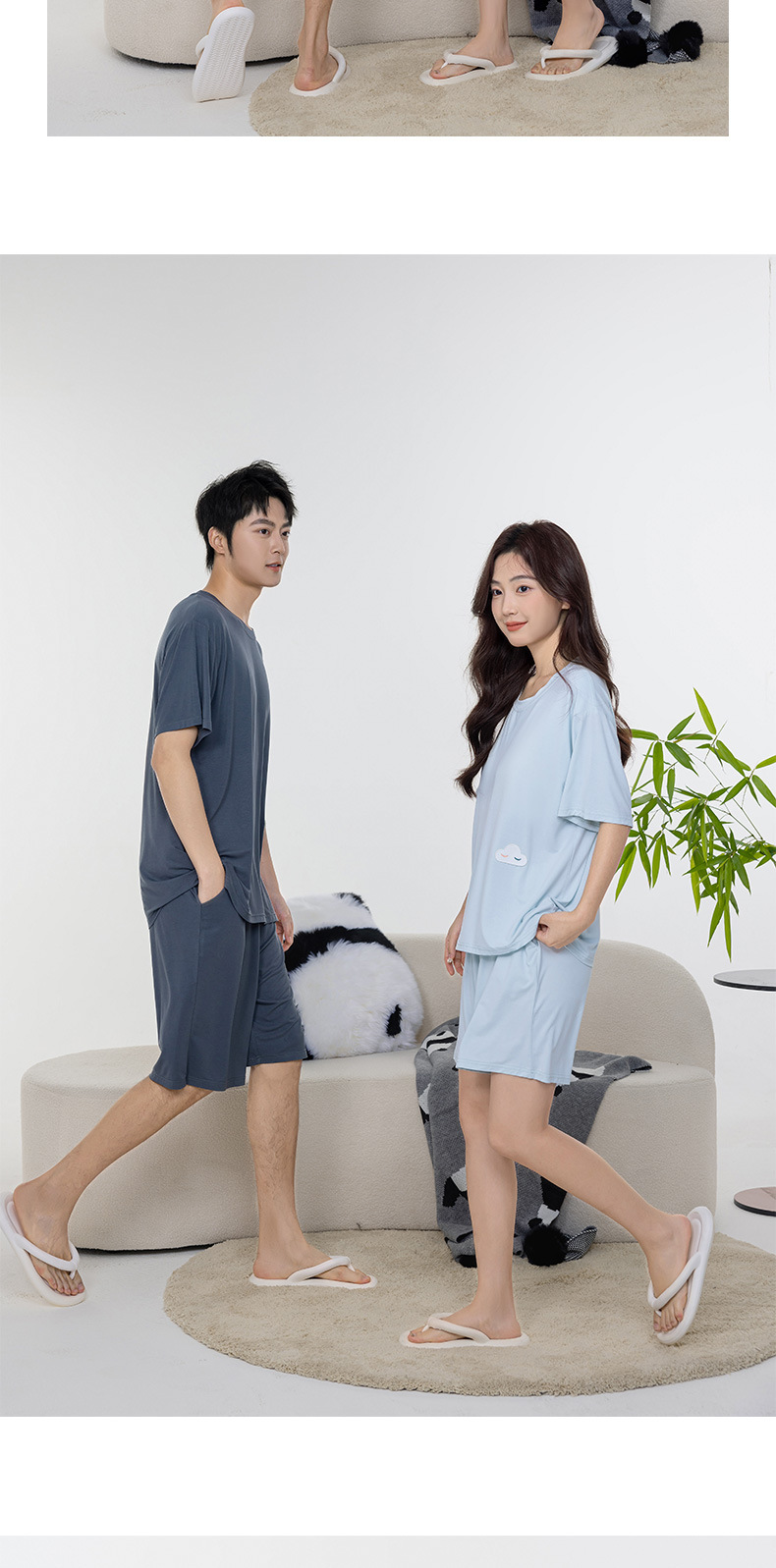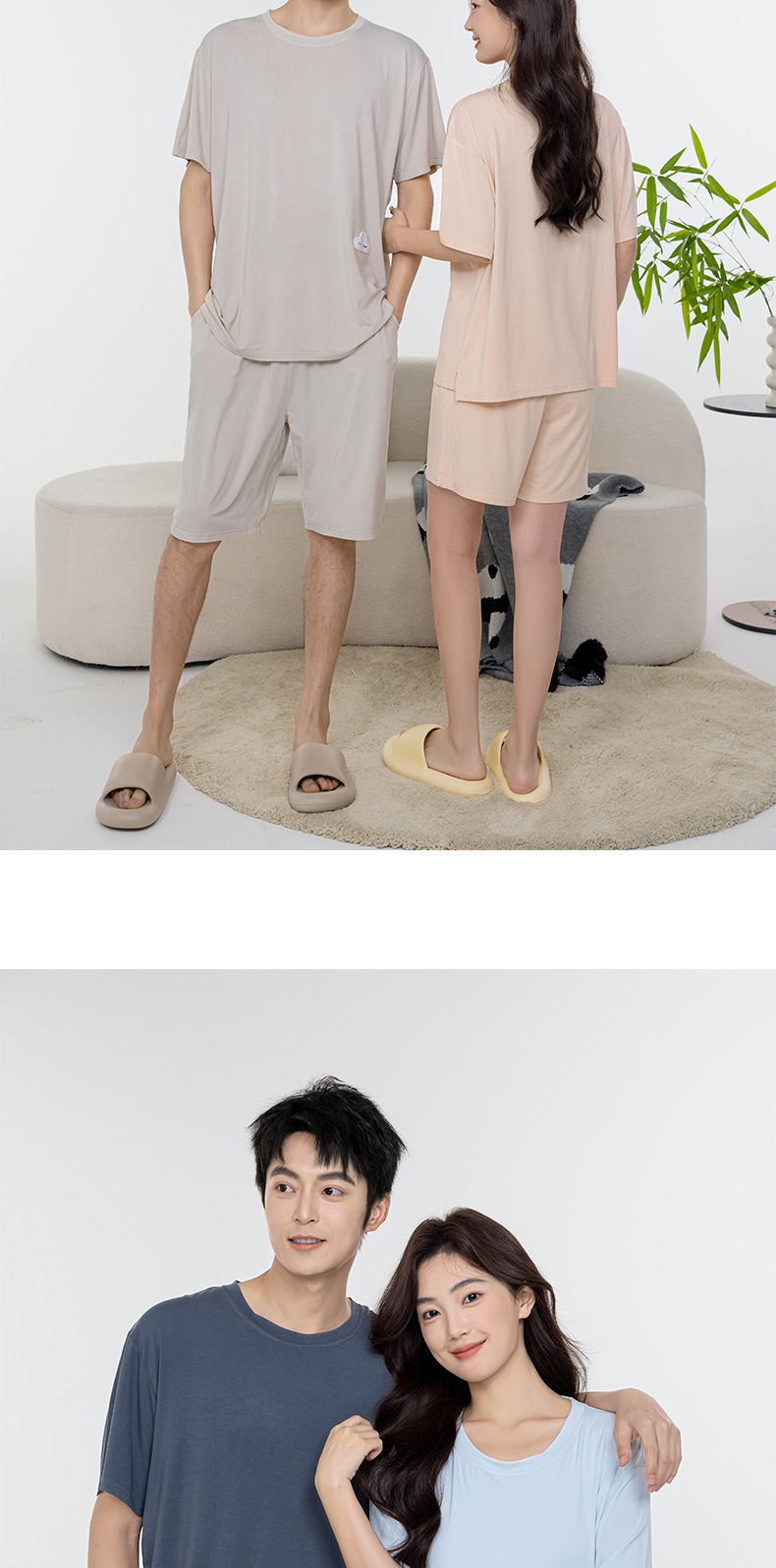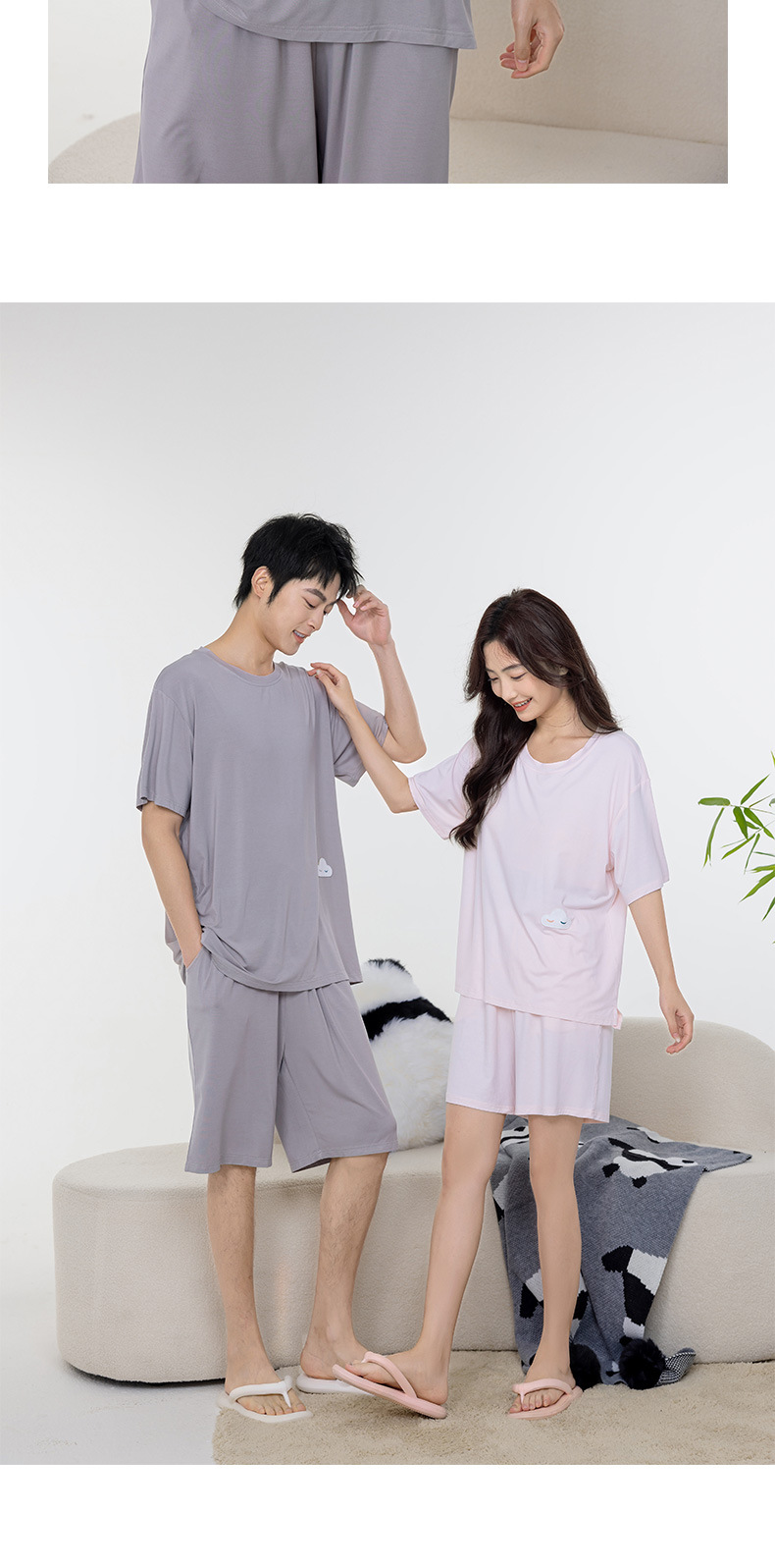 Tianzhu 섬유 풀오버 크루 넥 커플 파자마 여성 캐주얼 루즈 파자마, 가슴 패드 커플의 남성용 반팔 홈 옷스토어 가기