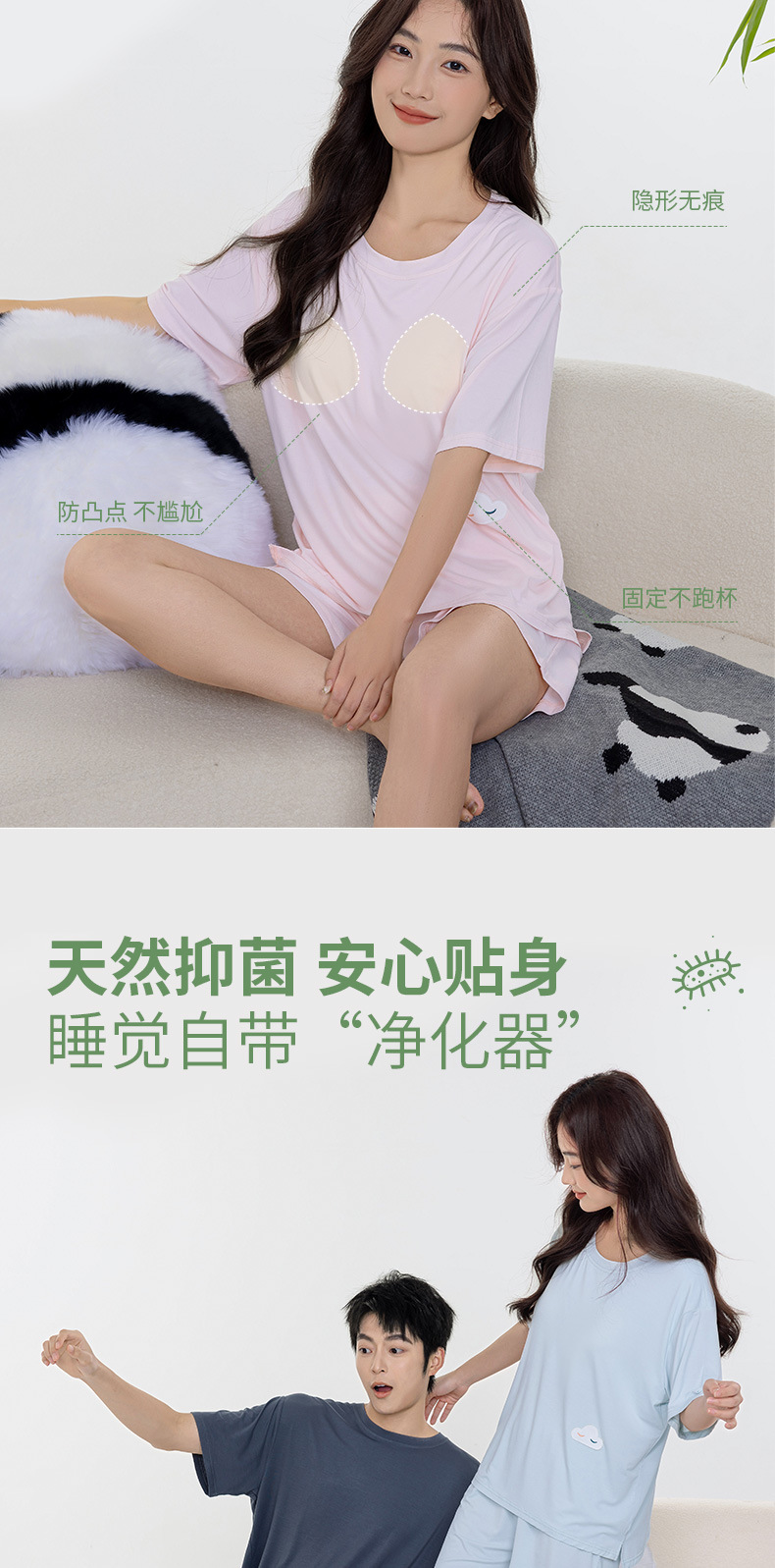 Tianzhu 섬유 풀오버 크루 넥 커플 파자마 여성 캐주얼 루즈 파자마, 가슴 패드 커플의 남성용 반팔 홈 옷