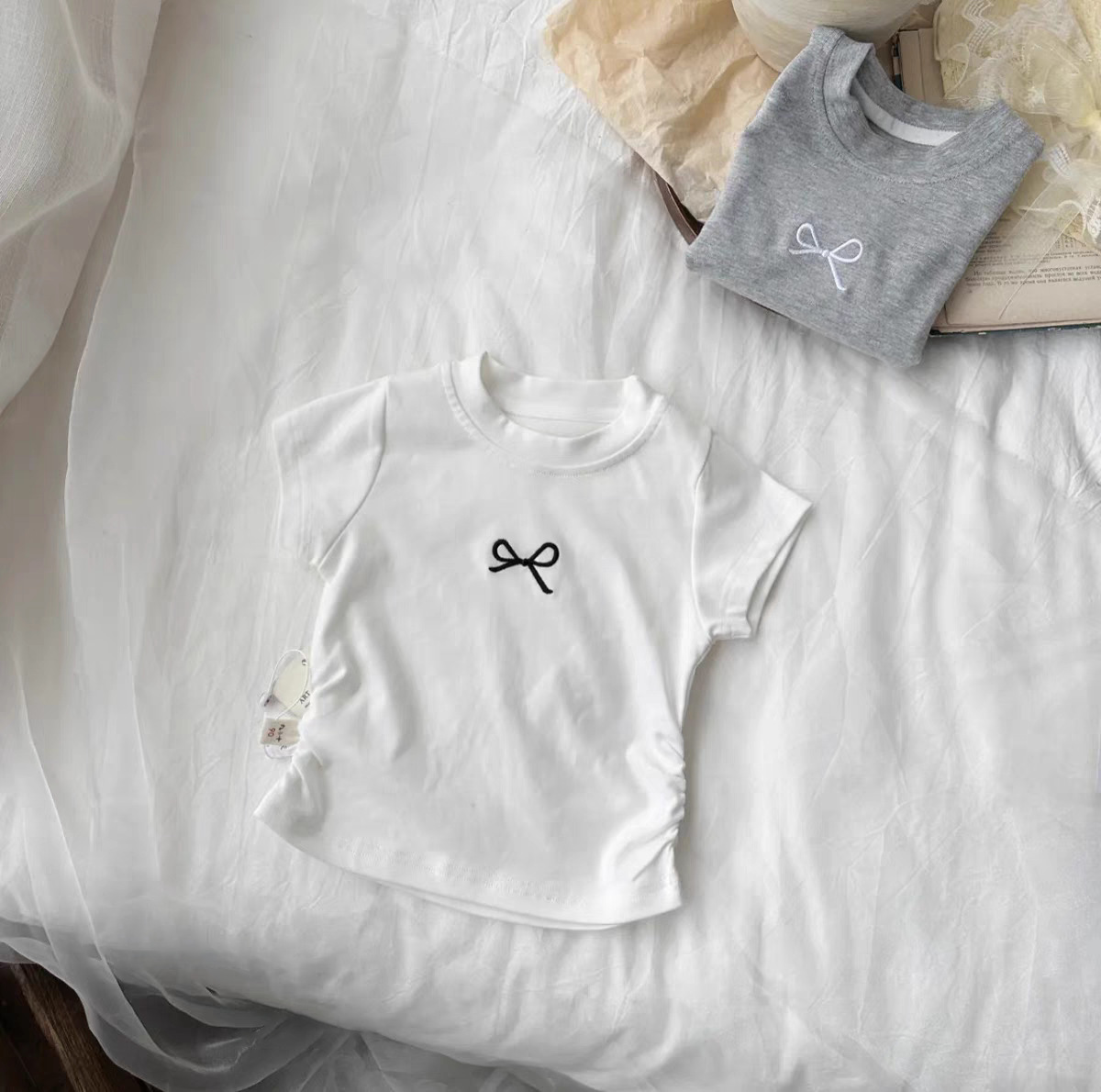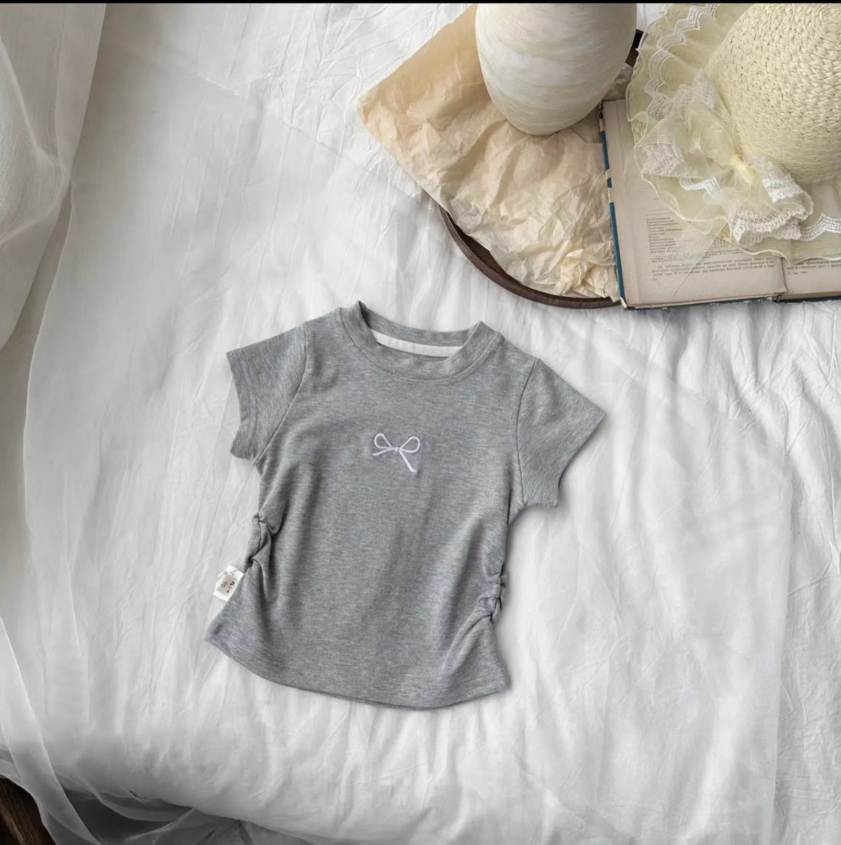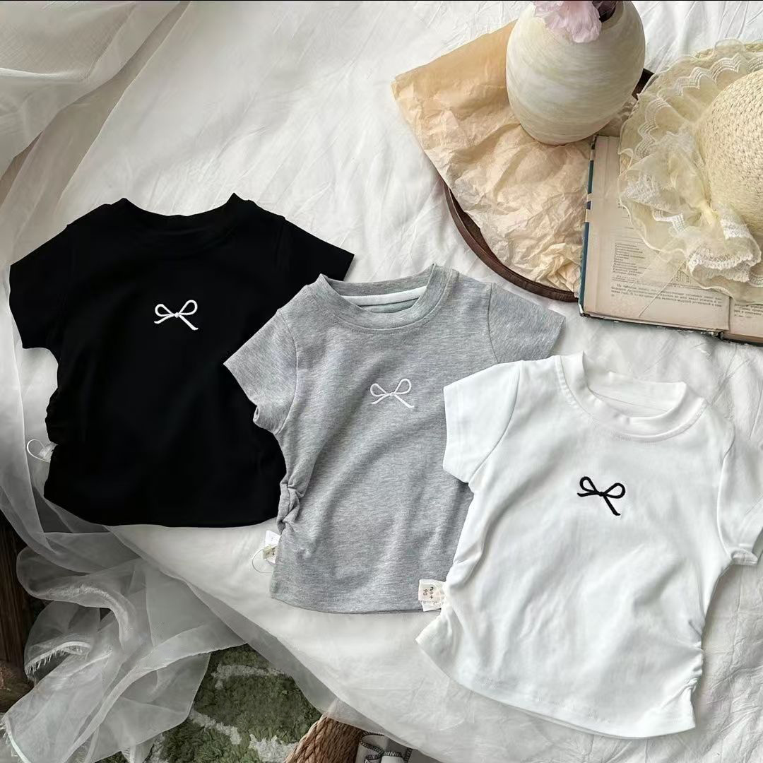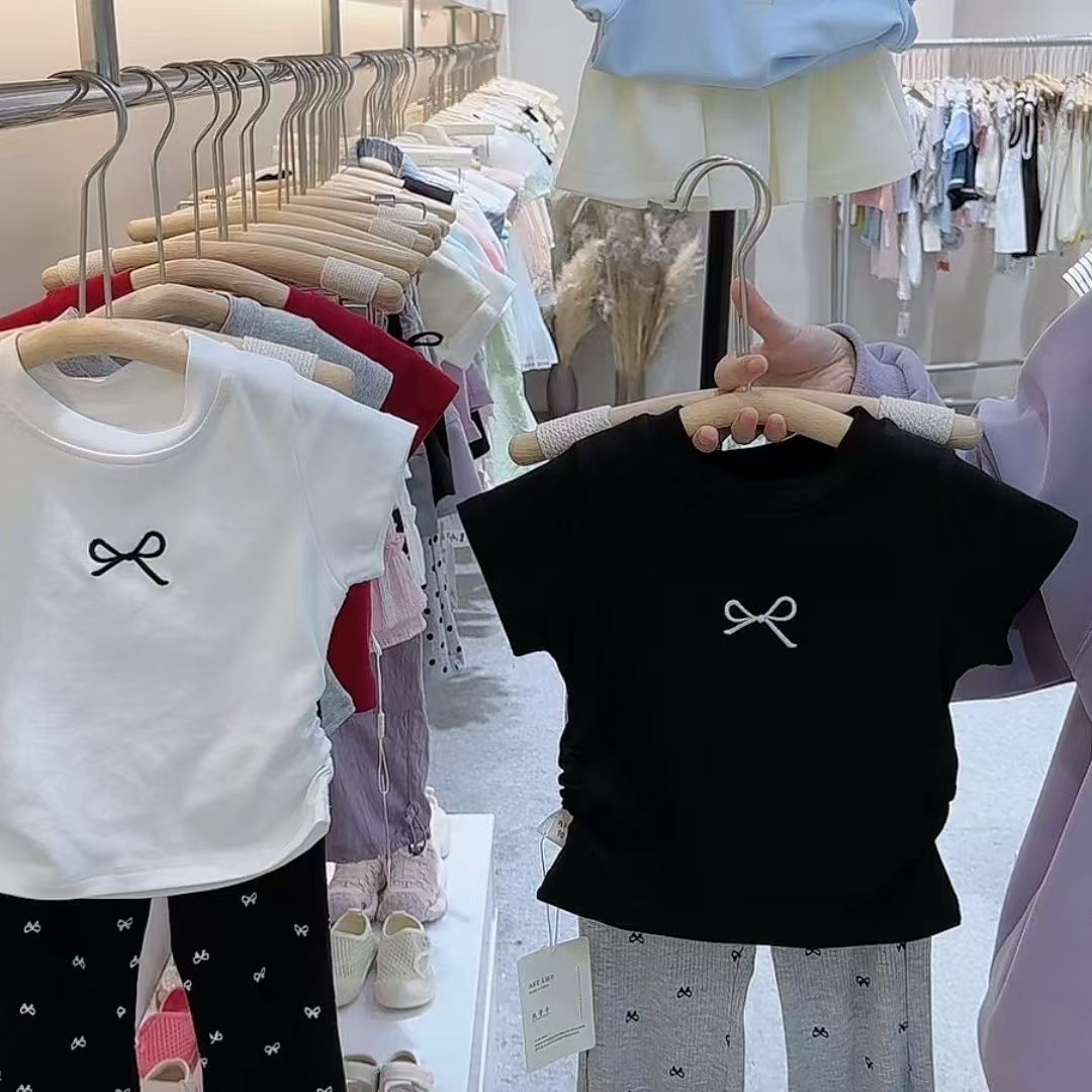소녀면 반팔 티셔츠 2025 여름 새 한국 스타일 어린이 아기 스타일 슬림핏 하이 허리 쇼트 탑스토어 가기