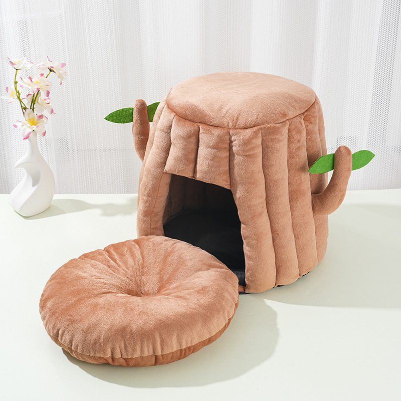 애완 동물 고양이의 둥지 가을과 겨울 두꺼운 따뜻한 그루터기 둥지 더미 영어 짧은 머리 반 폐쇄 이동식 및 세척 가능한 기모 개 둥지스토어 가기
