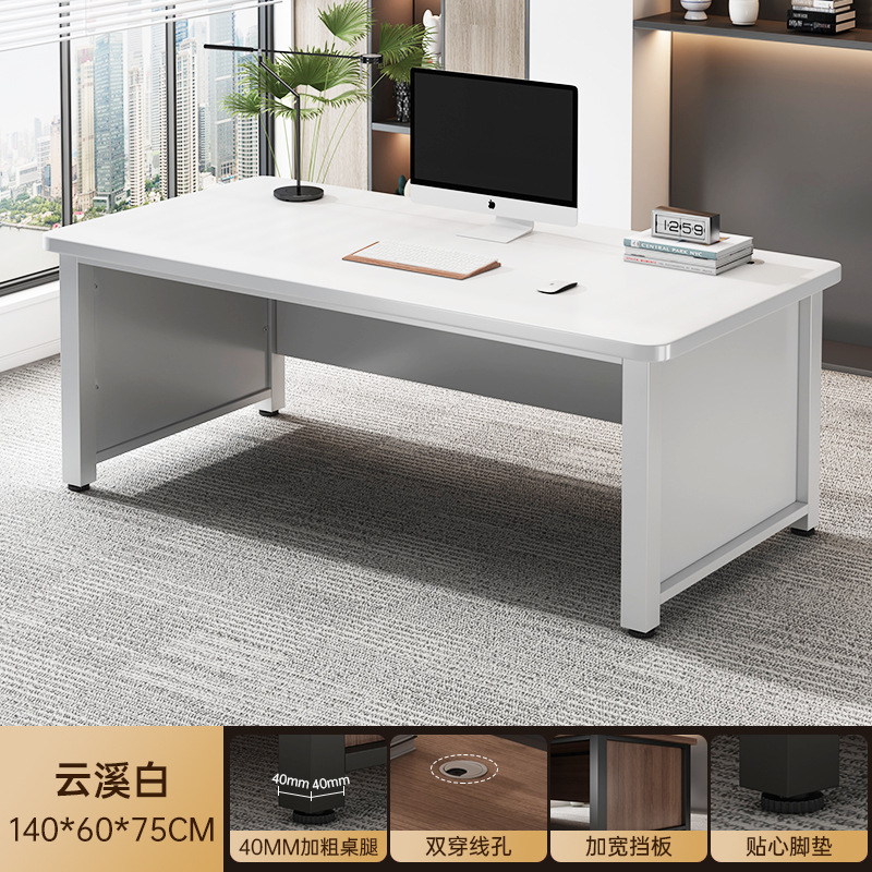 • 【4CM 두께의 튼튼한 다리, 단독 테이블】 운희 화이트 테이블 140*60*75cm
