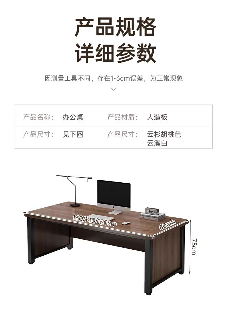 • 【4CM 두께의 튼튼한 다리, 단독 테이블】 가문비나무 월넛 색상 테이블 160*60*75cm