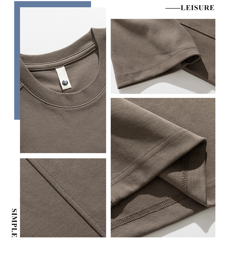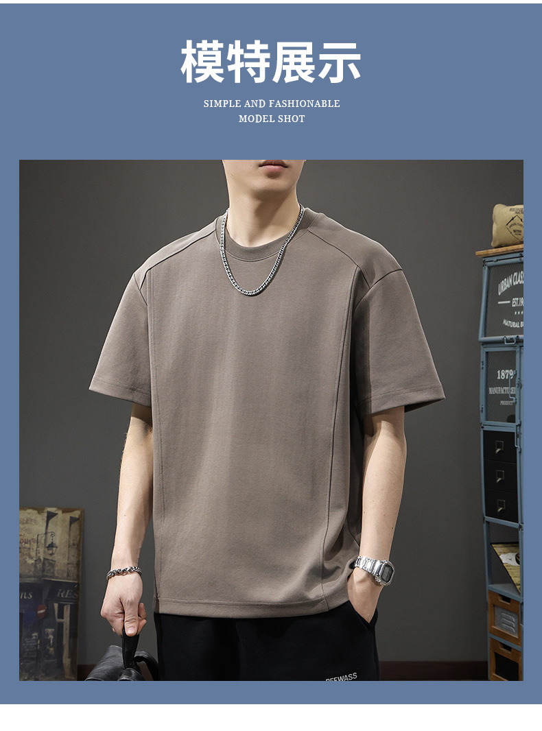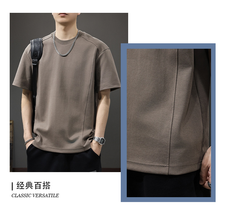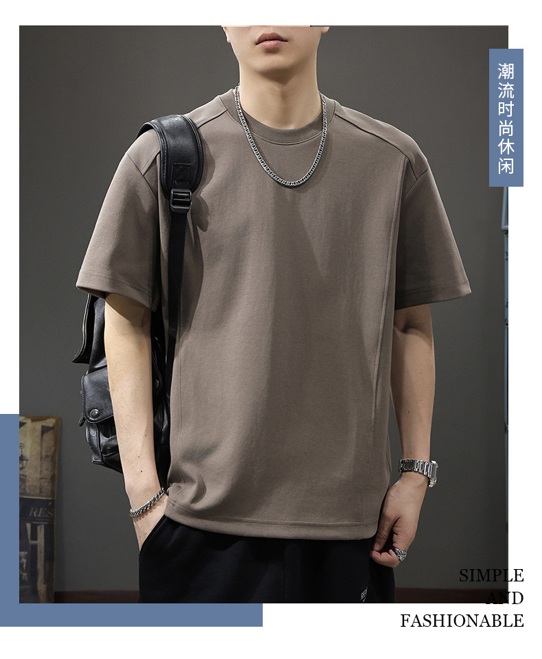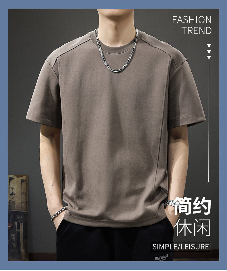 225G 헤비 레트로 반소매 티셔츠 남자 2025 년 여름 새로운 불규칙한 라인 느슨한 라운드 넥 반소매 티셔츠