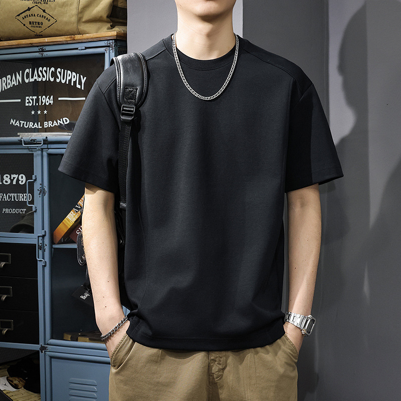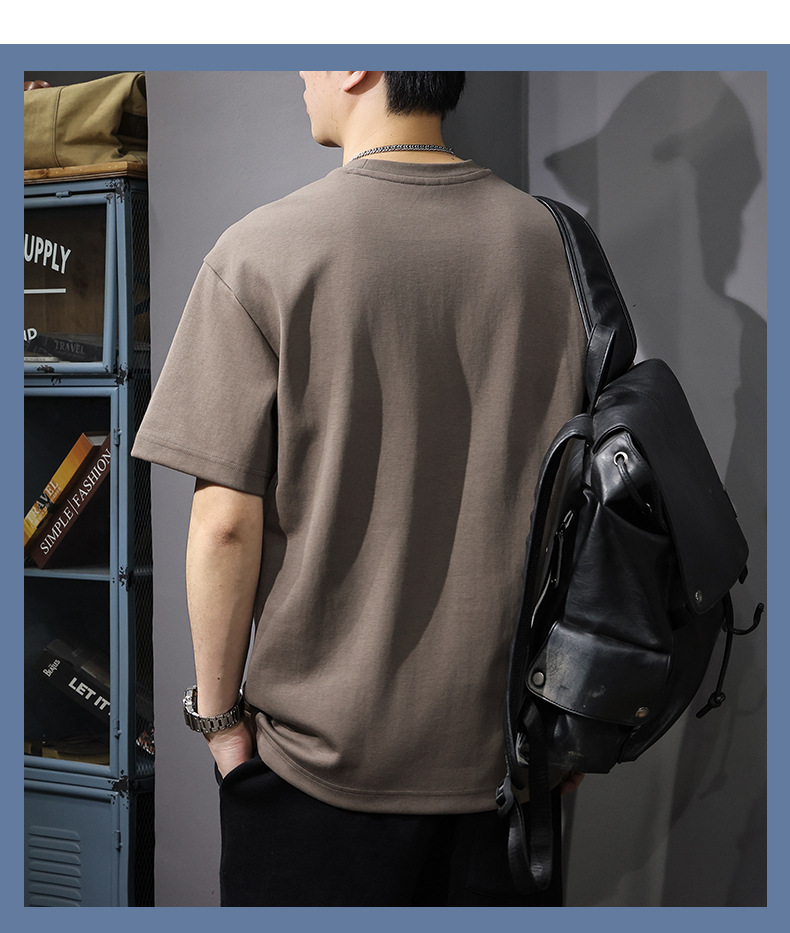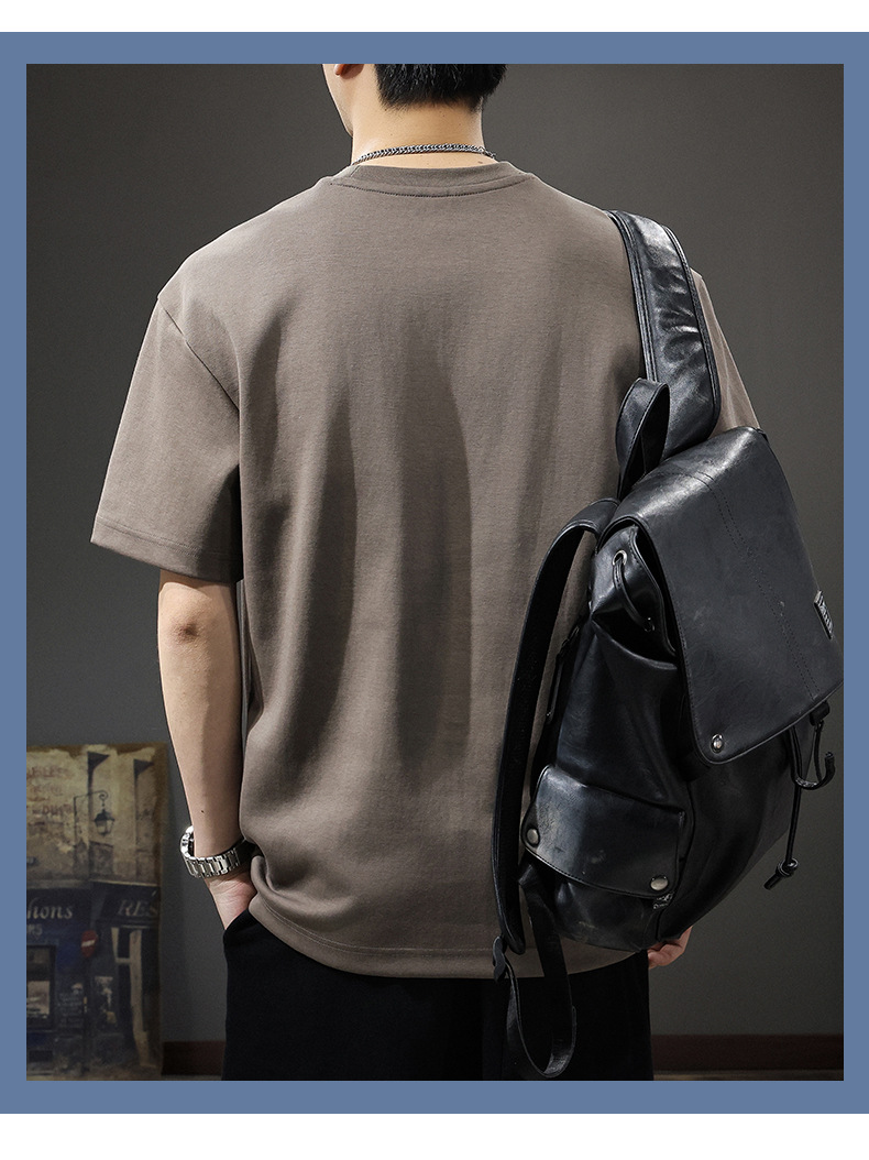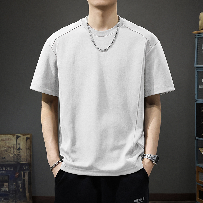 225G 헤비 레트로 반소매 티셔츠 남자 2025 년 여름 새로운 불규칙한 라인 느슨한 라운드 넥 반소매 티셔츠스토어 가기