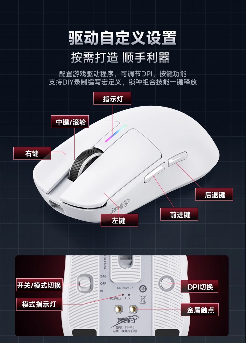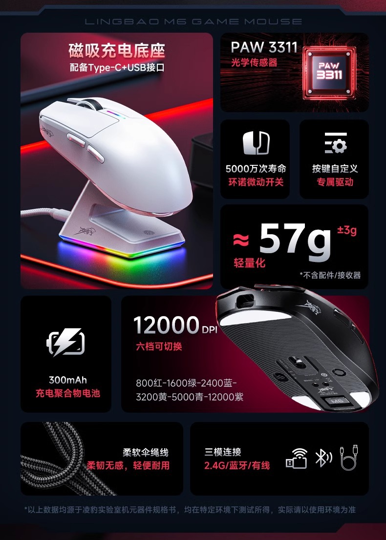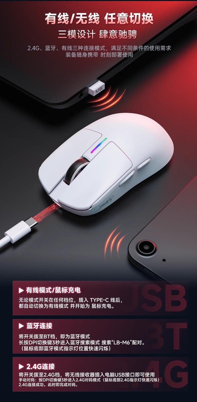 Lingbao 무선 블루투스 마우스 2.4G 3 모드 E-스포츠 게임 오피스 범용 경량 마우스 충전 RGB 라이트스토어 가기