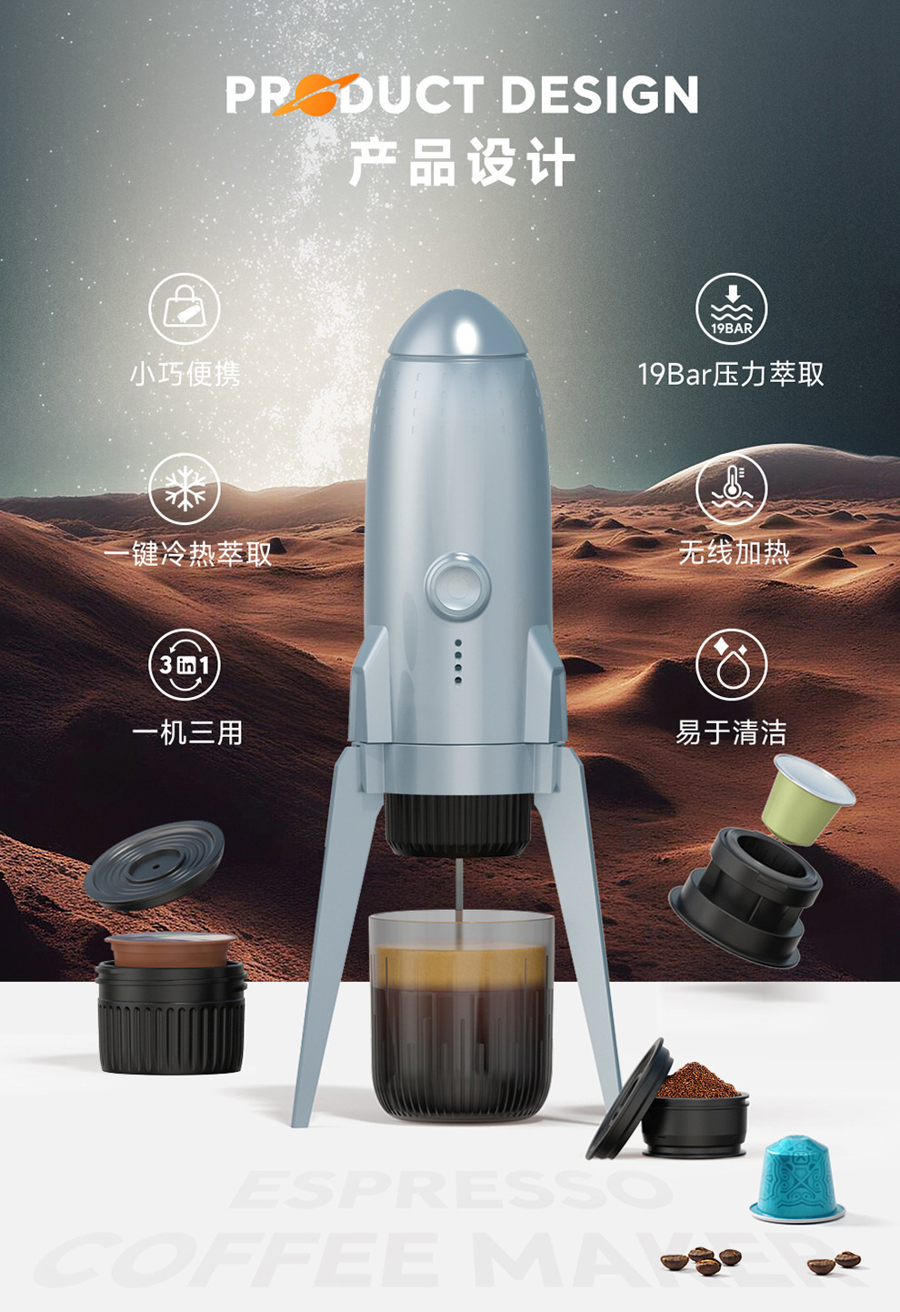 국경 간 미국 규정 110v 드립 커피 기계 야외 휴대용 난방 가능한 커피 기계 로켓 커피 컵
