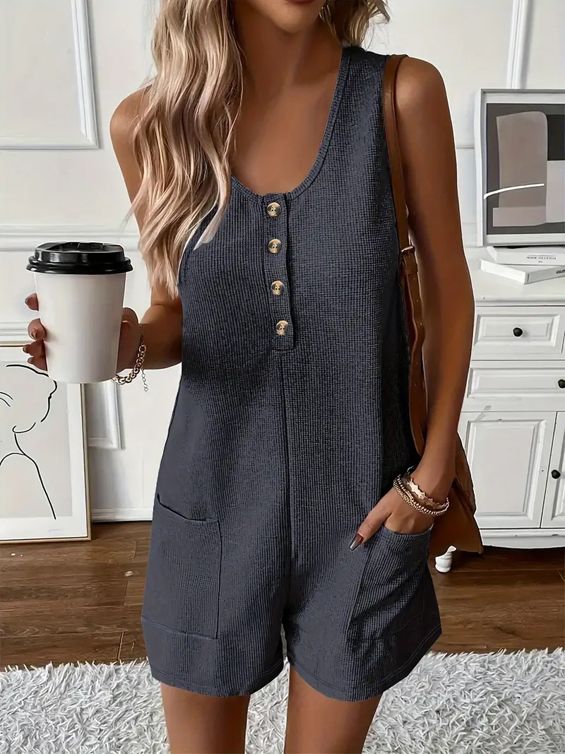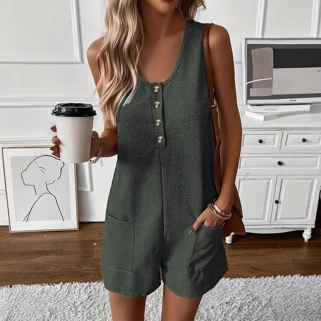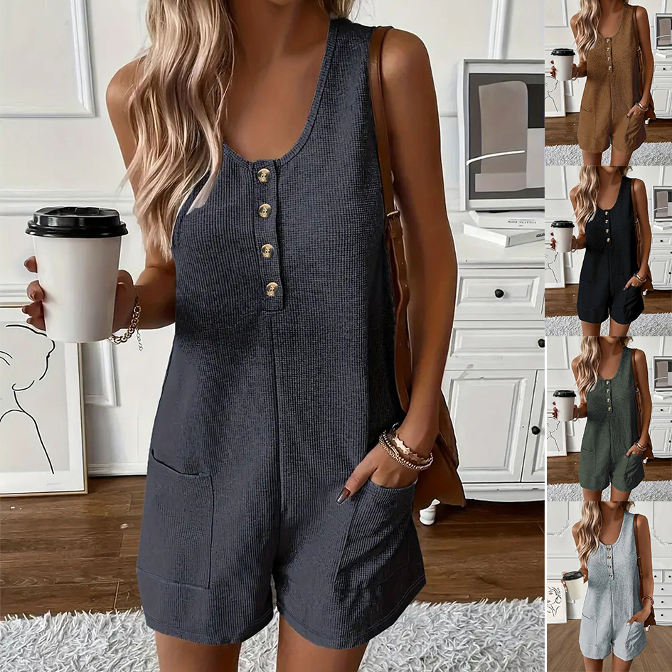 2025 년 여름 새로운 국경 유럽 및 미국 여성 의류 아마존 핫 캐주얼 버튼 포켓 조끼 점프 수트 여성스토어 가기