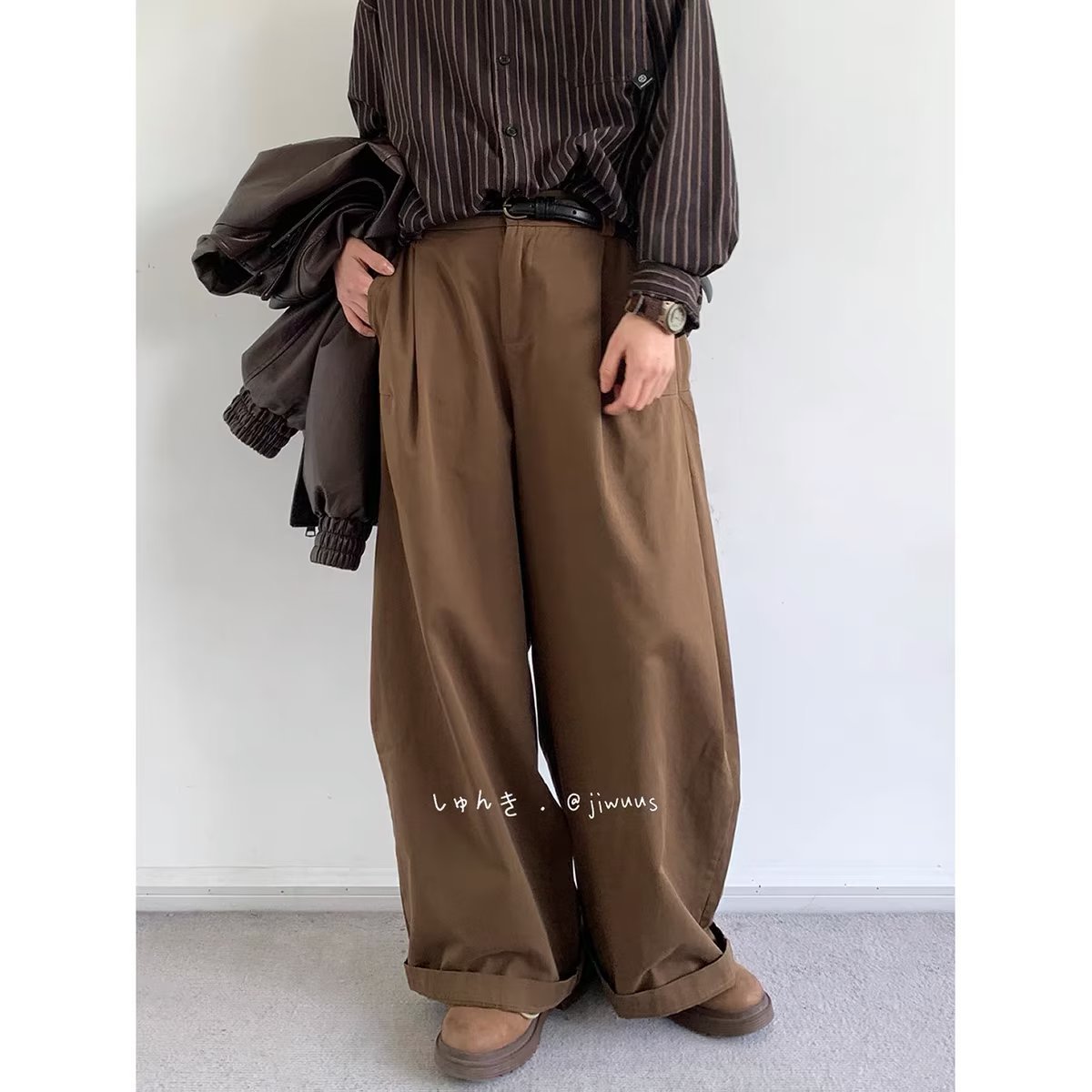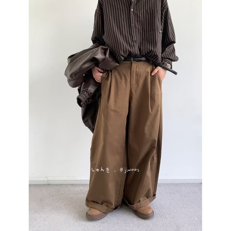 2024 봄과 가을의 새로운 일본 복고풍 작업복 바지 소년 올매치 기본 캐주얼 느슨한 와이드 레그 롱 바지스토어 가기