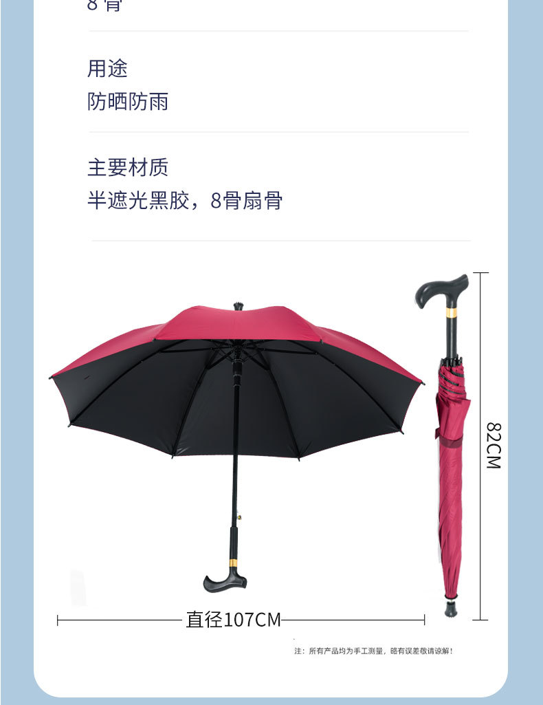 긴 손잡이가 있는 자외선 차단 지팡이, 다기능 노인용 지팡이, 방풍 양산, 등산용 양산, 자외선 차단 우산