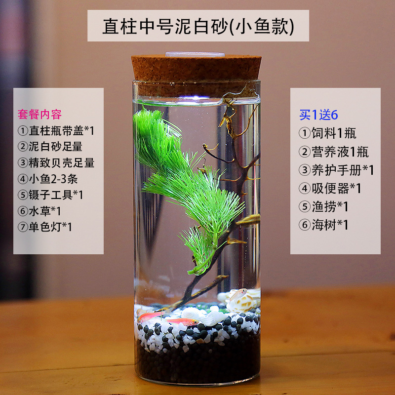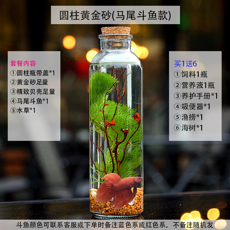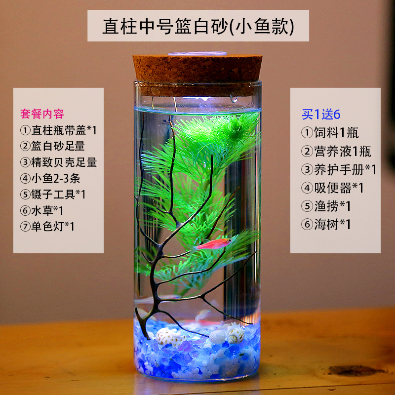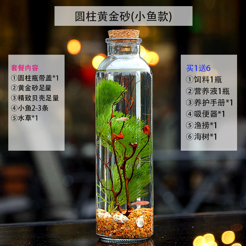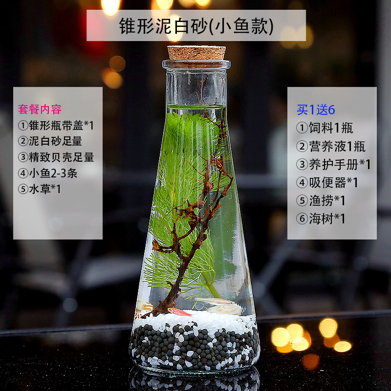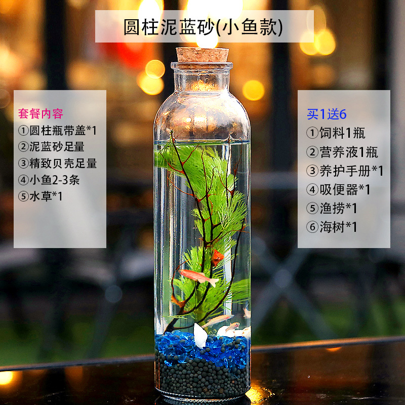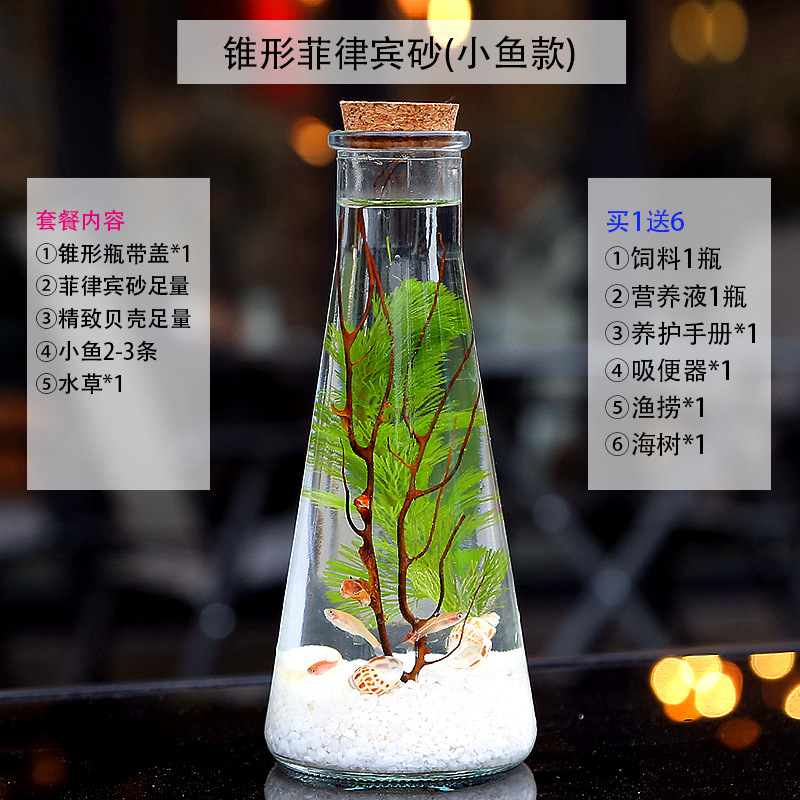 마이크로 물고기 탱크 작은 물 변화 없음 관리 홈 오피스 데스크탑 마이크로 풍경 관상용 병 물고기스토어 가기