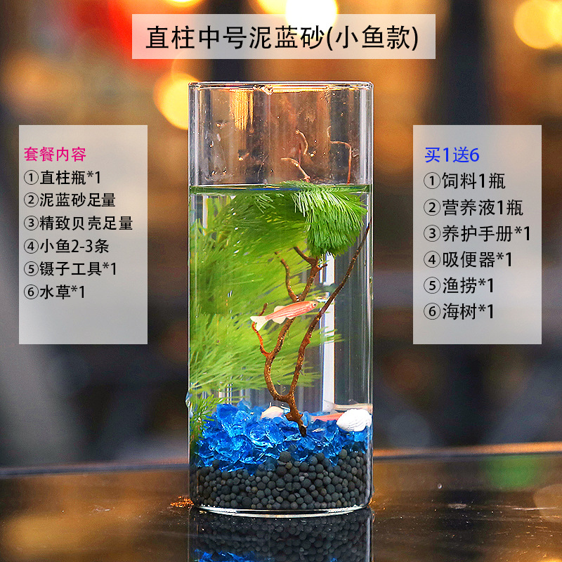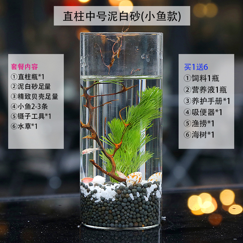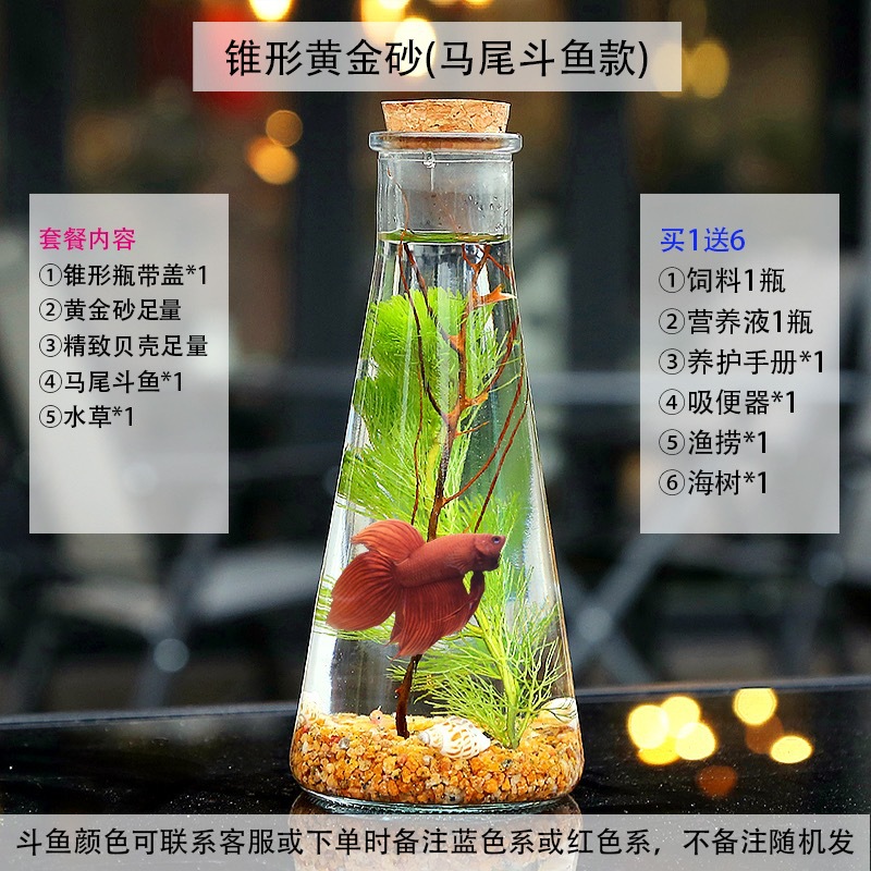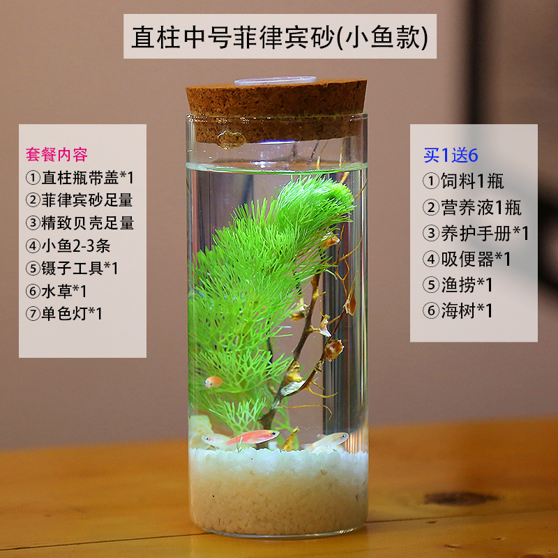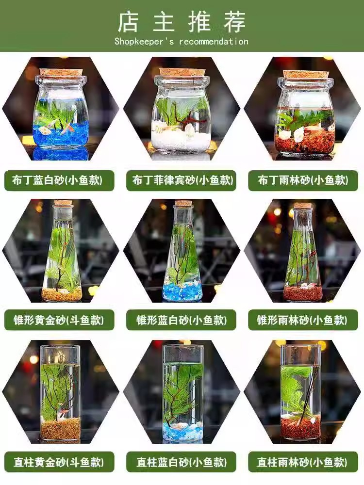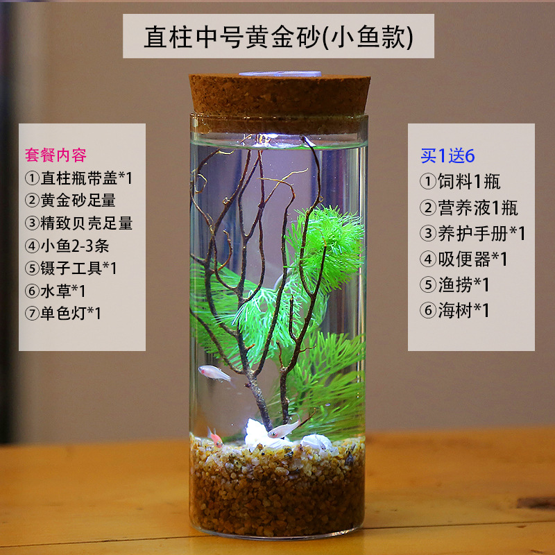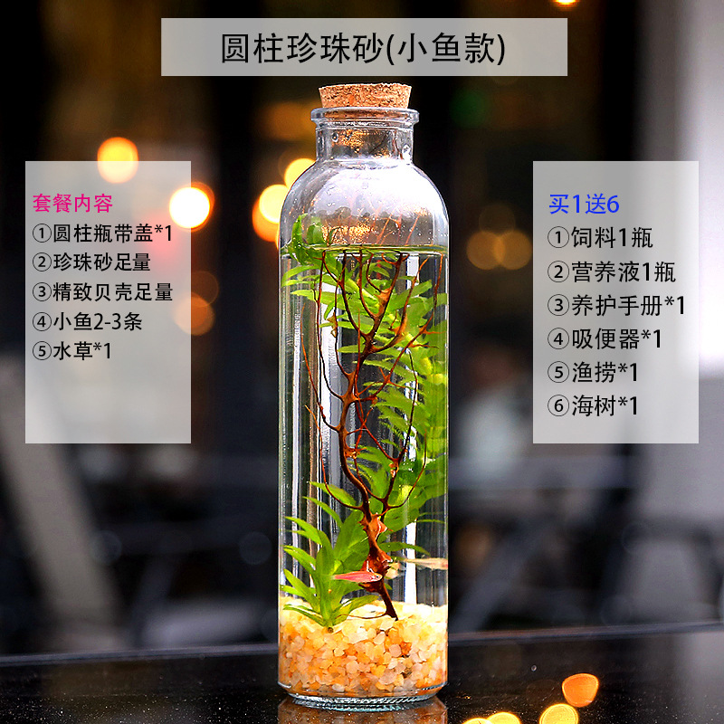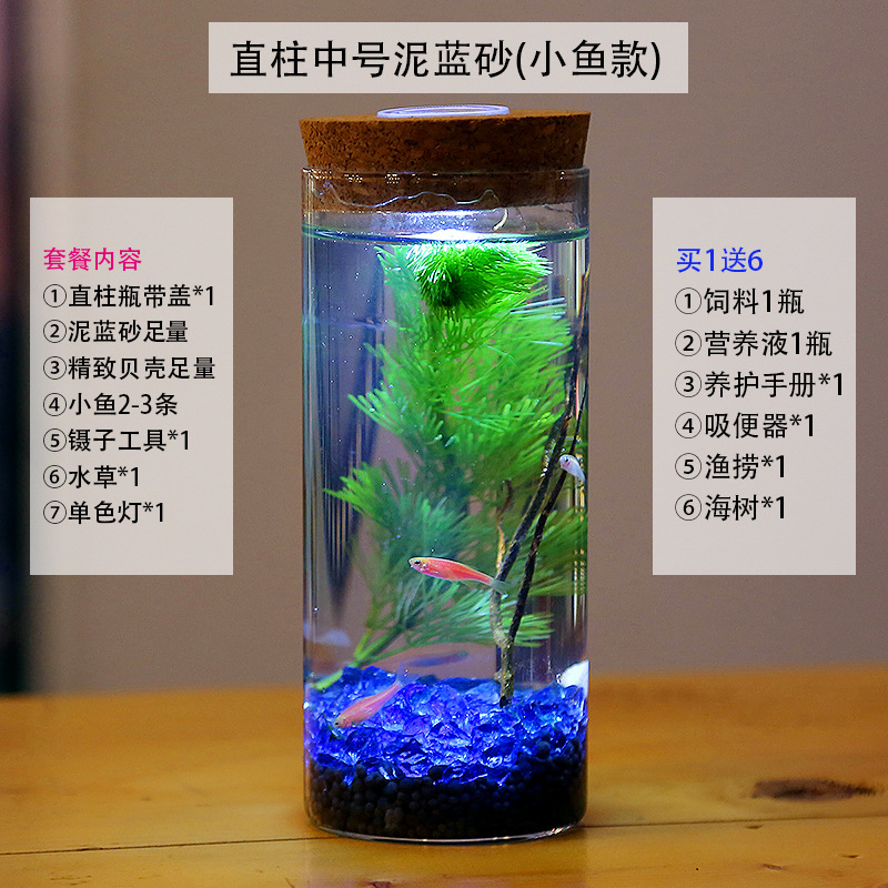 마이크로 물고기 탱크 작은 물 변화 없음 관리 홈 오피스 데스크탑 마이크로 풍경 관상용 병 물고기스토어 가기