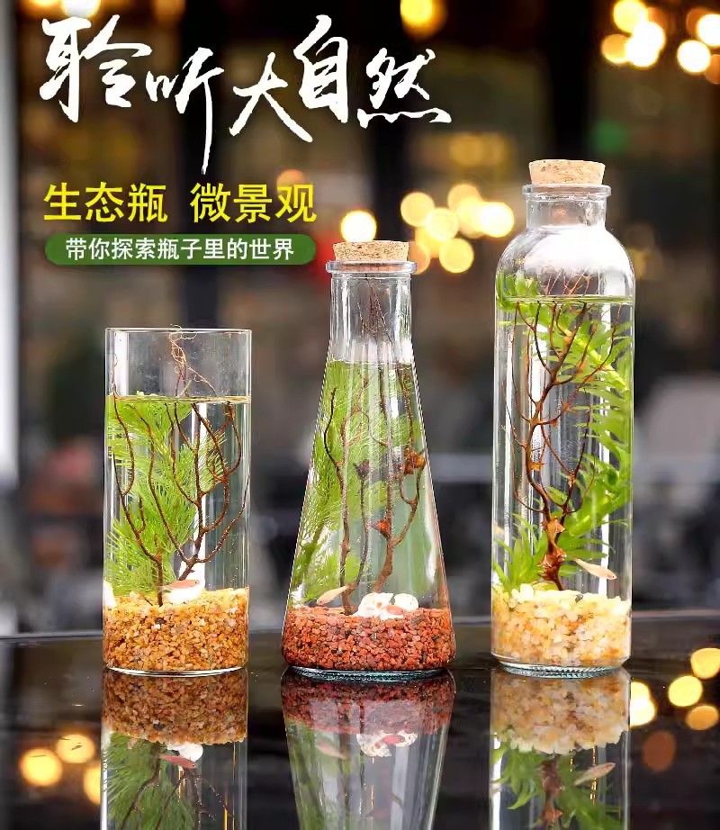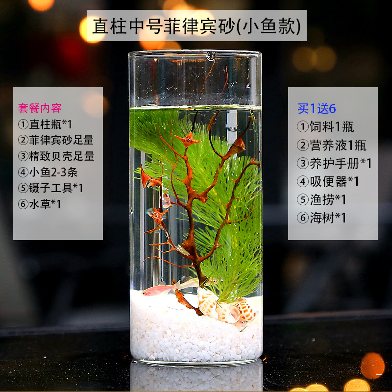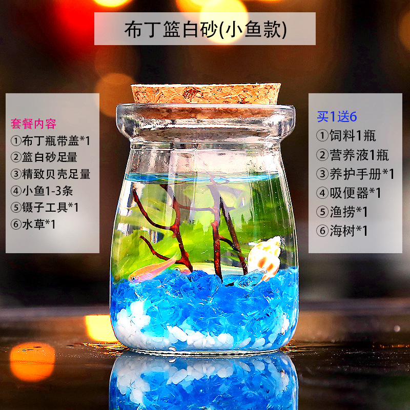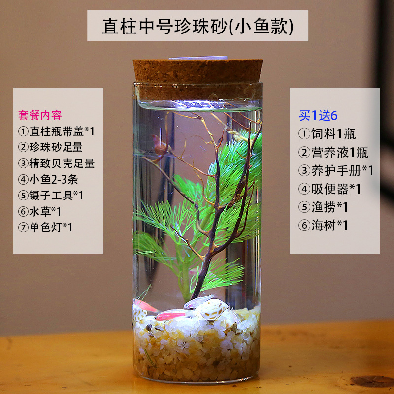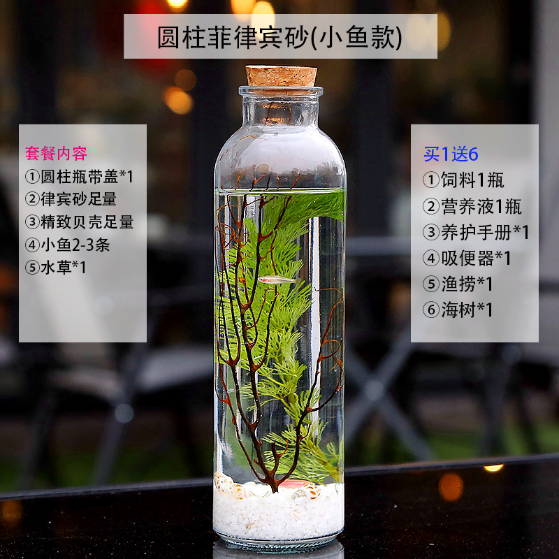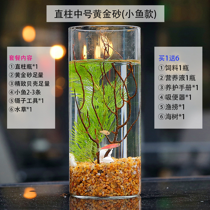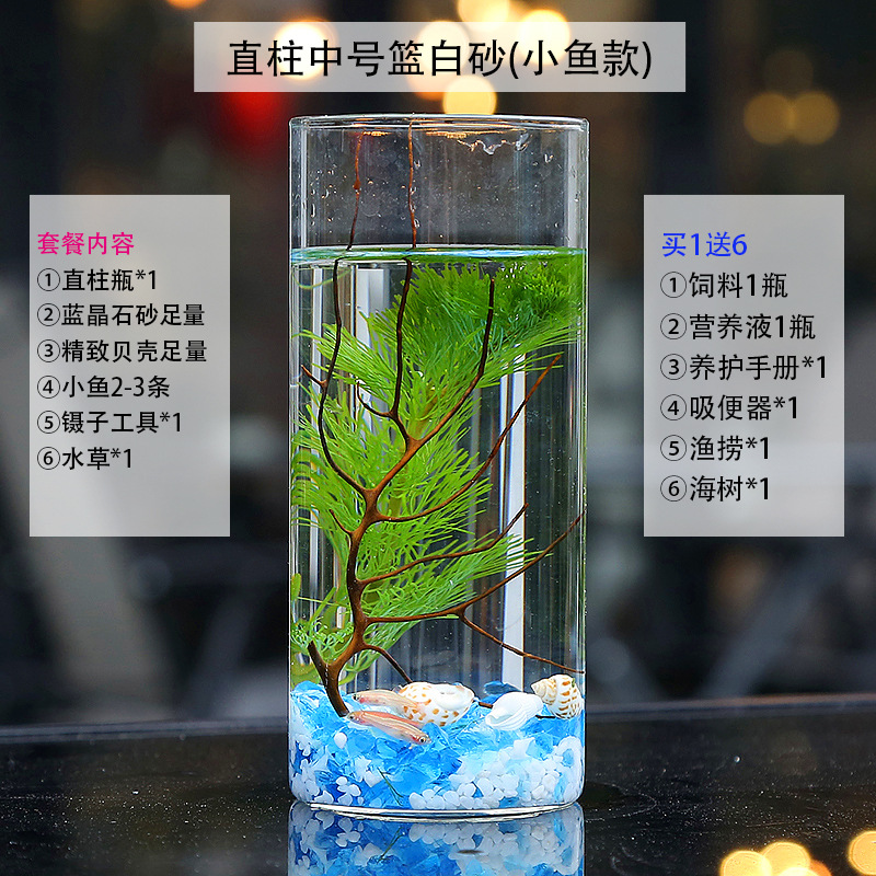 마이크로 물고기 탱크 작은 물 변화 없음 관리 홈 오피스 데스크탑 마이크로 풍경 관상용 병 물고기스토어 가기