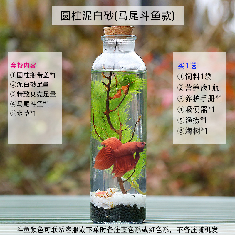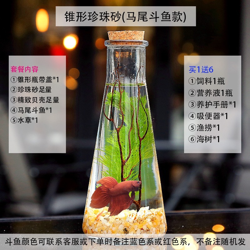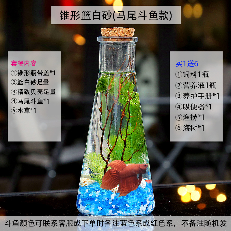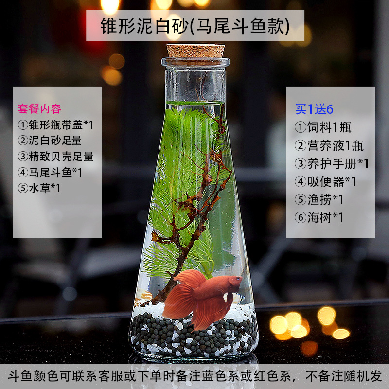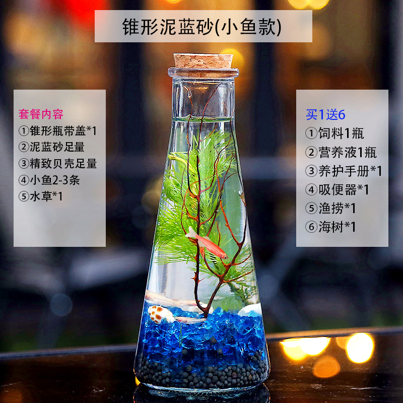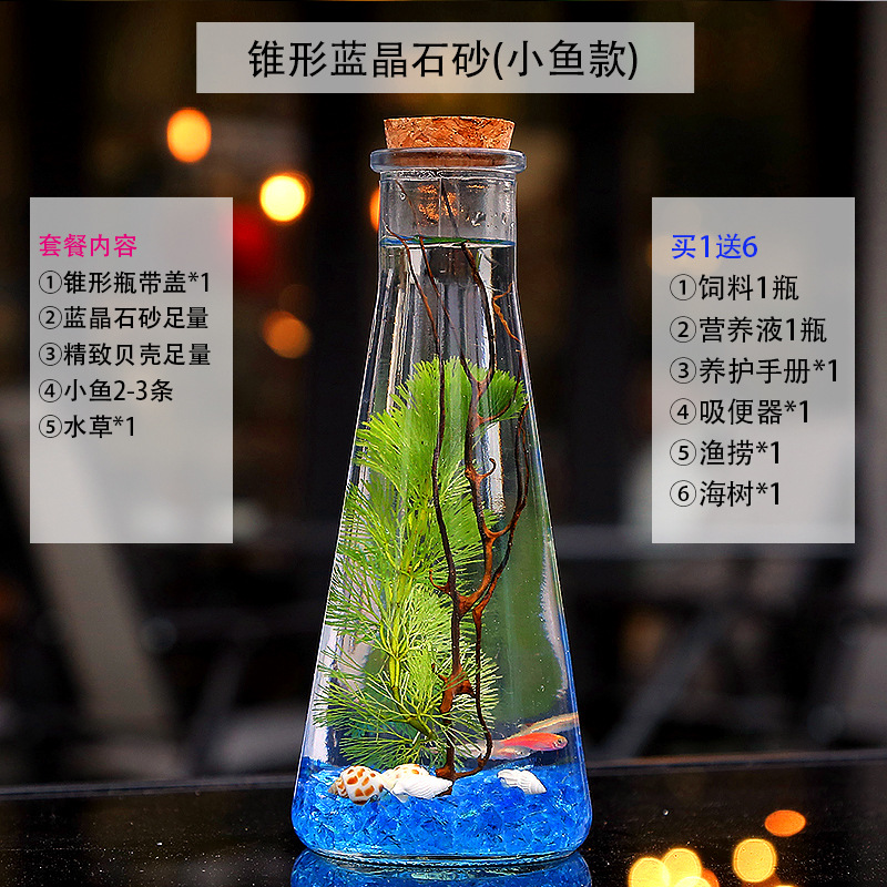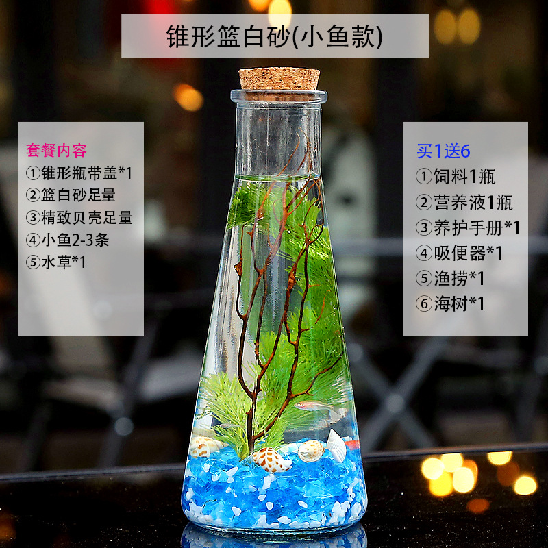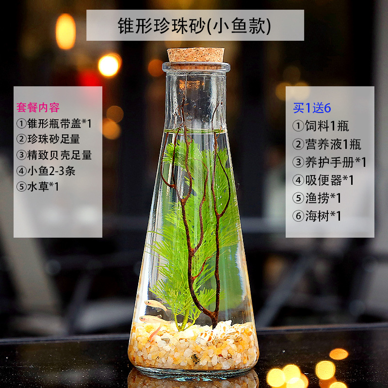 마이크로 물고기 탱크 작은 물 변화 없음 관리 홈 오피스 데스크탑 마이크로 풍경 관상용 병 물고기