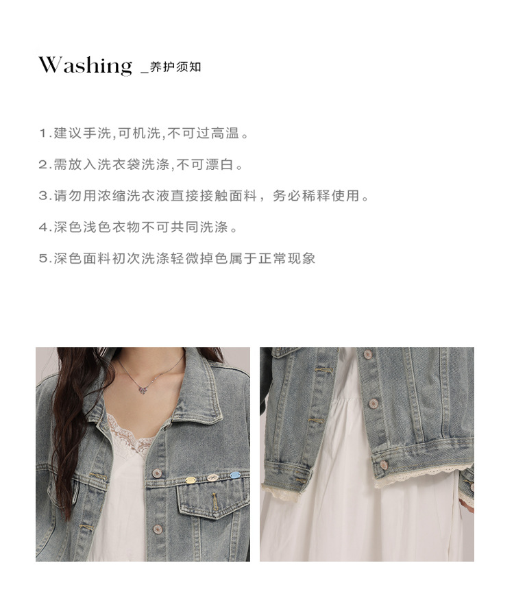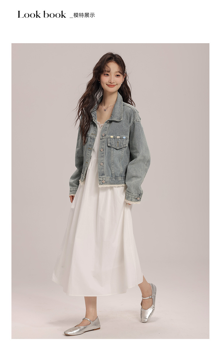 연마 된 바느질 레이스 데님 재킷 여성 봄과 여름 2025 새로운 느슨한 캐주얼 한국 스타일 다채로운 버클 재킷 탑스토어 가기
