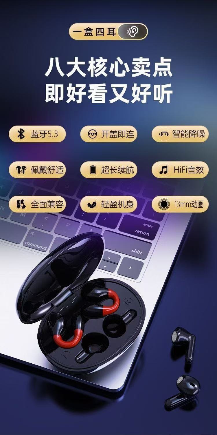 국경 간 개인 모델 커플의 블루투스 헤드셋 고통없는 클립 온 이어 스포츠 긴 내구, 블루투스 헤드폰 더블 쌍 상자