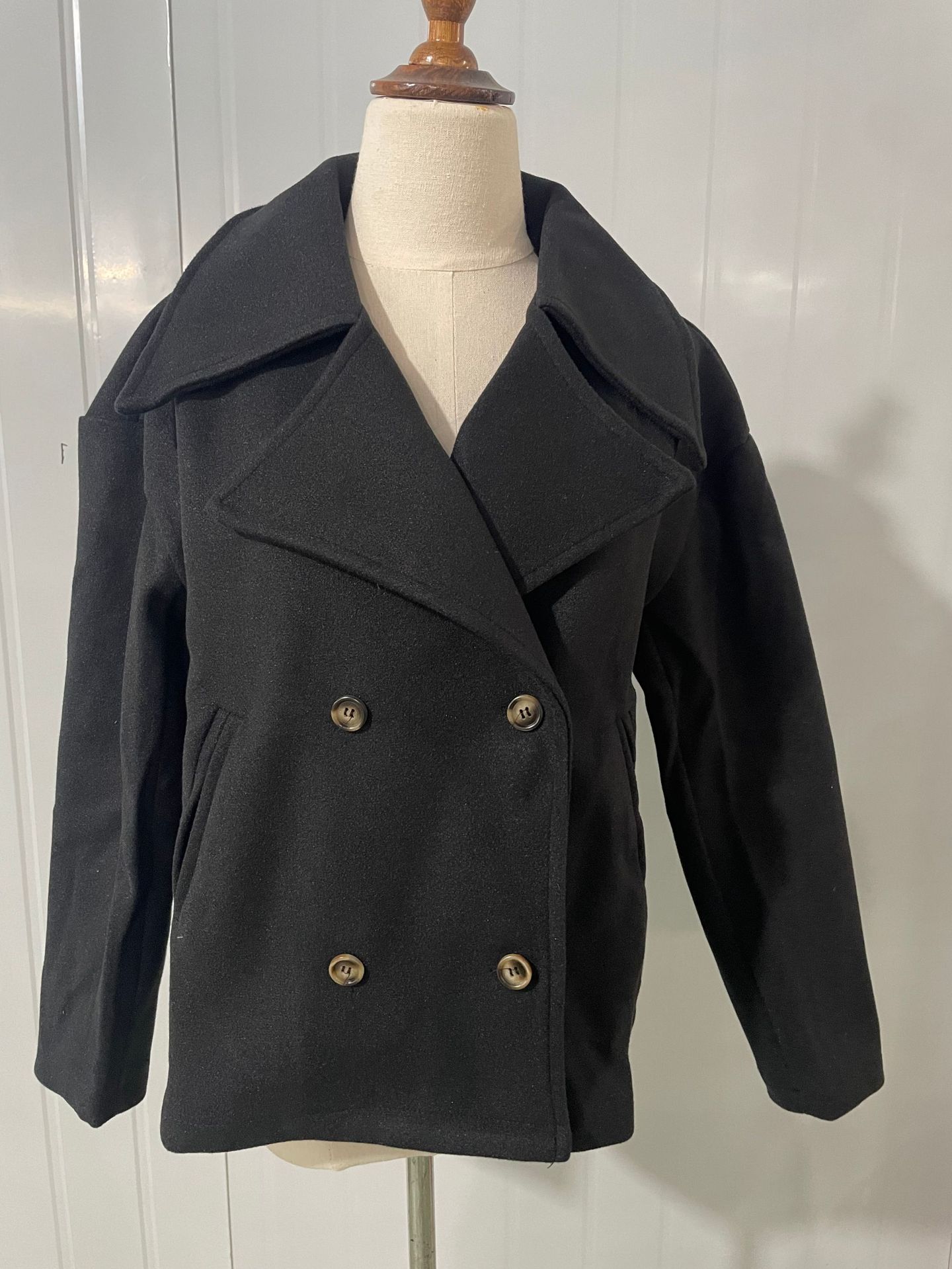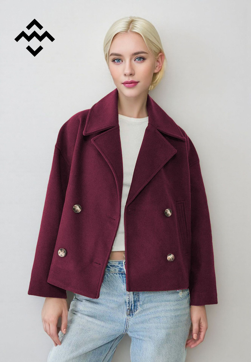 2025 가을 새로운 유럽과 미국 스타일의 여성 패션 기질 통근 칼라 더블 브레스트 짧은 모직 코트