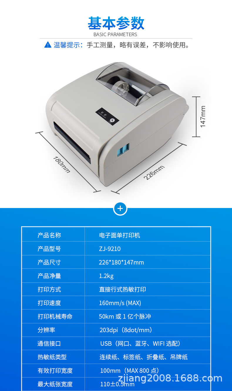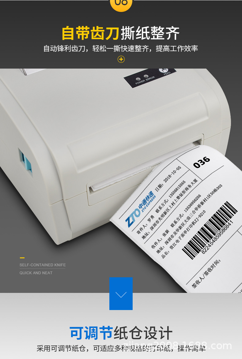 ZJ-9210 전자 상거래 전자 얼굴 시트 라벨 프린터 전용 유바오 열 프린터 바코드 특급스토어 가기