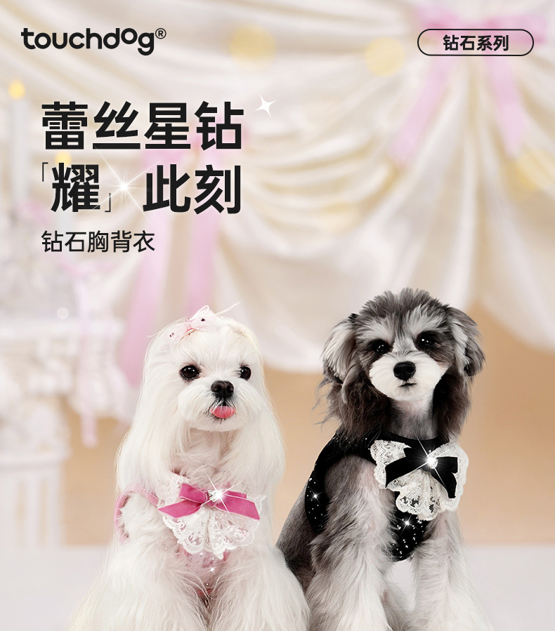 터치독 다이아몬드 강아지 하네스 목줄 소형견 강아지 포메라니안 조끼형 안전벨트